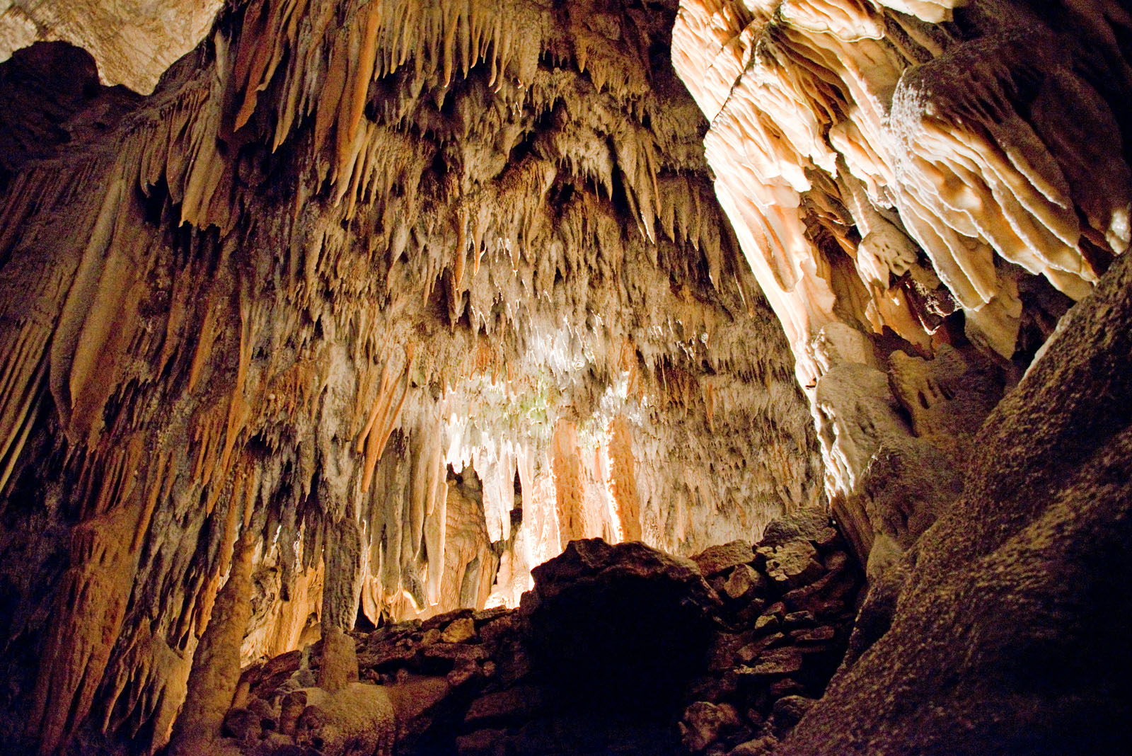 トロッコを降りて大きな洞窟の中の大きな山(ヴェリカ・ゴラ)に登る。