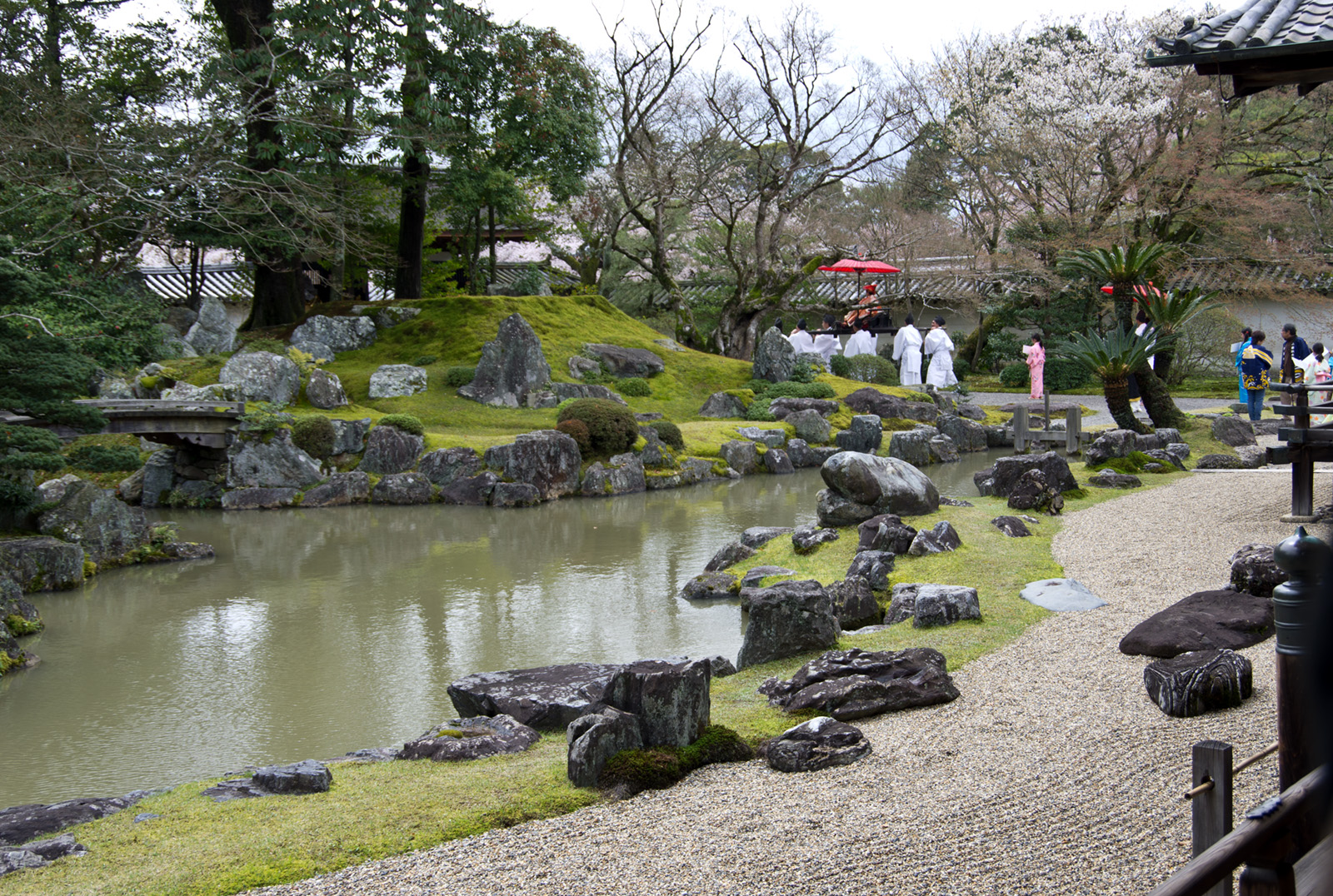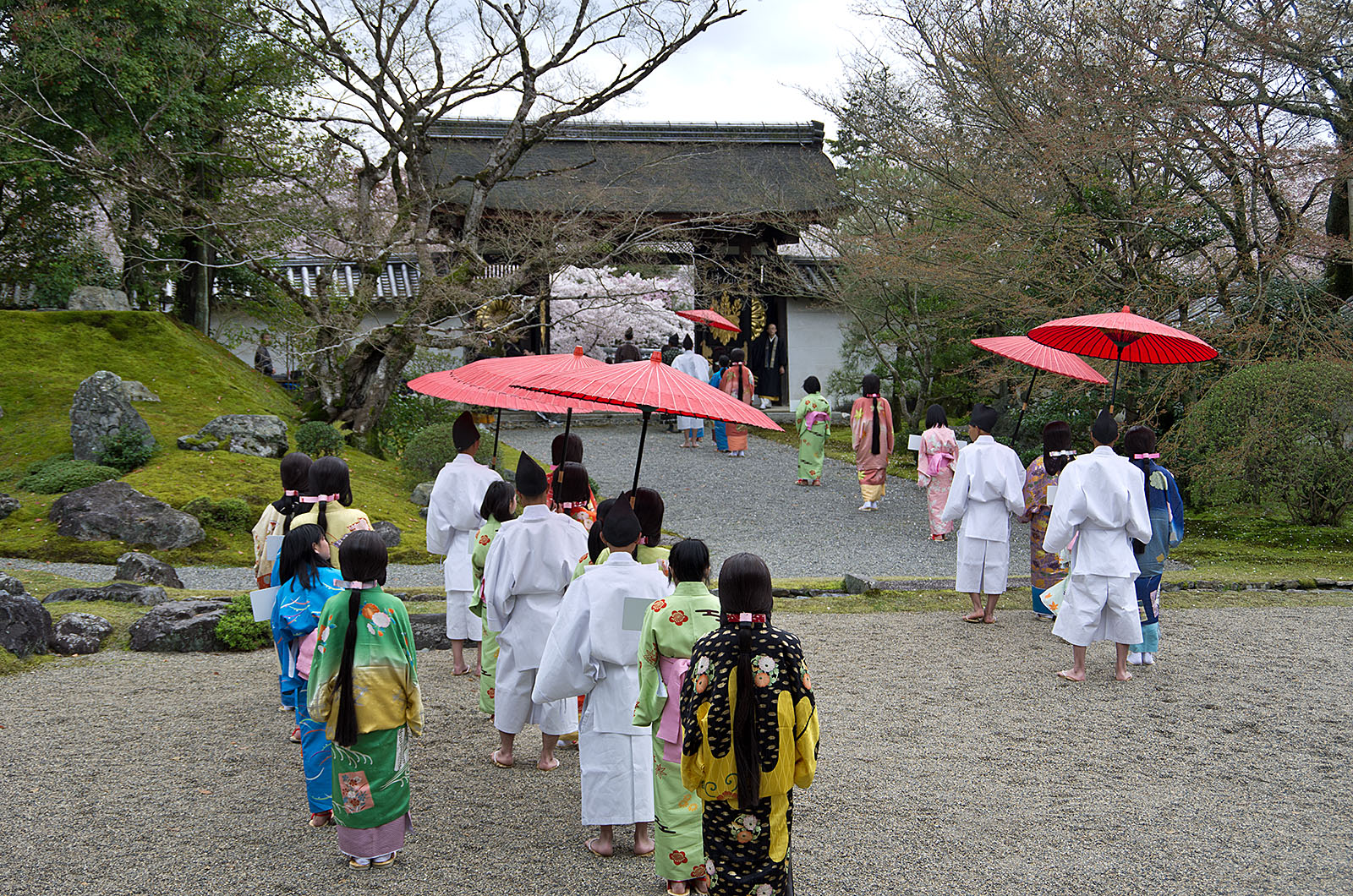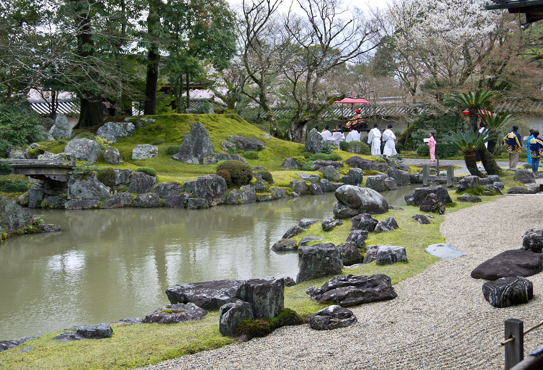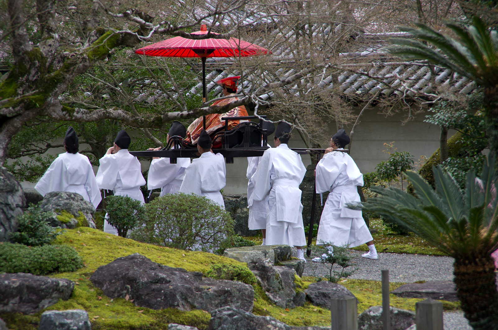 ![]() 三宝院を出発するお花見行列の最後尾 |