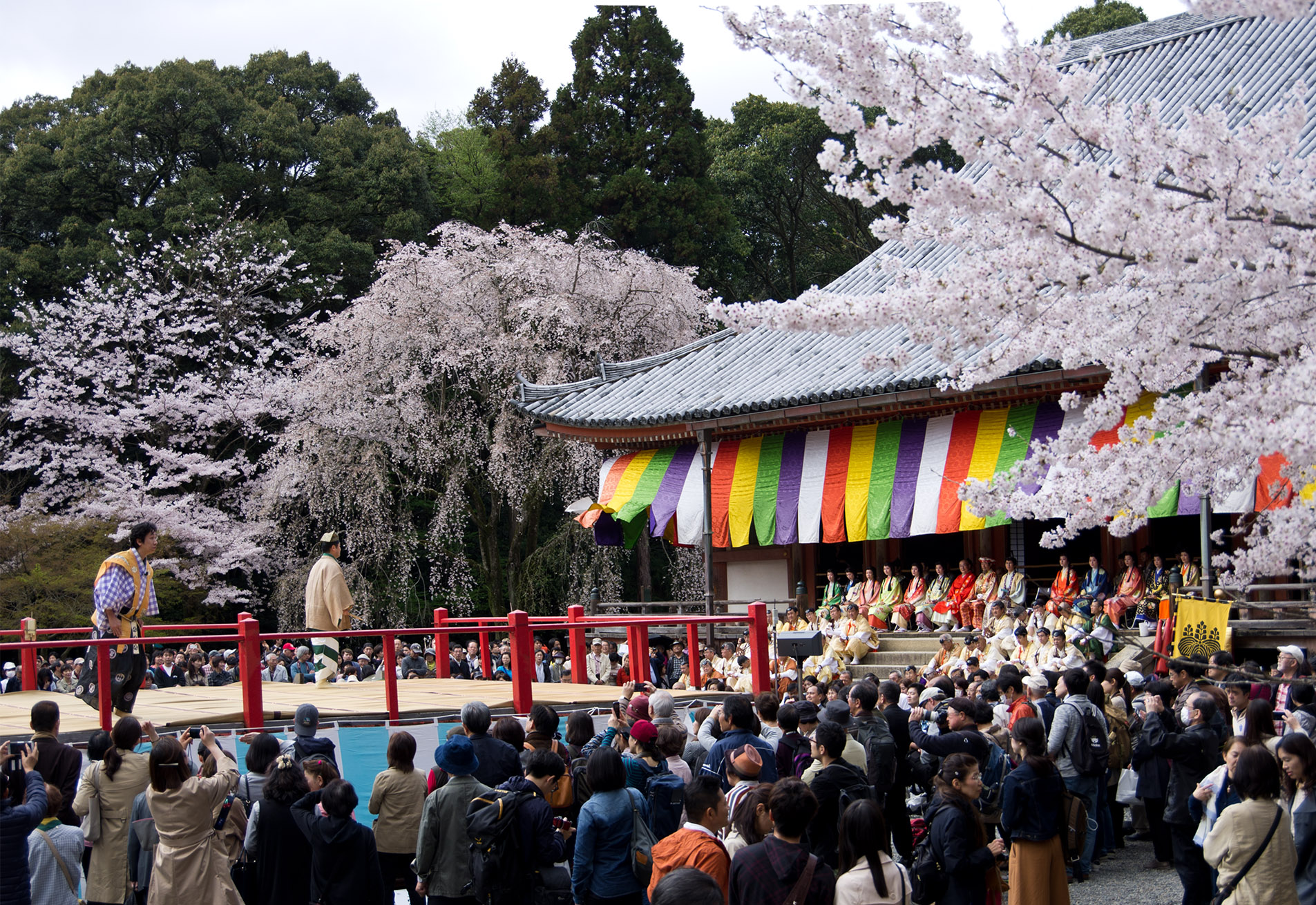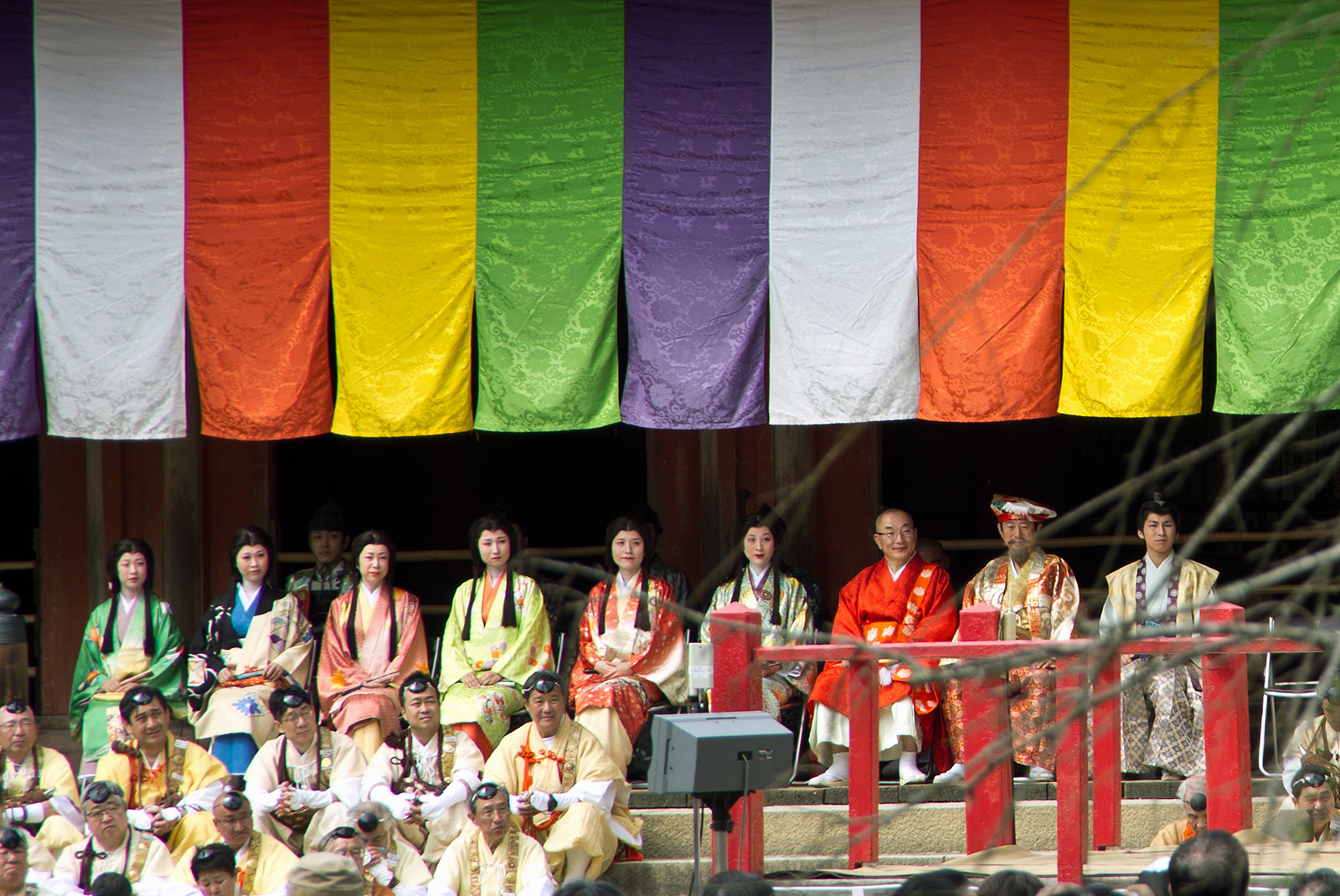 ![]() 金堂で狂言鑑賞する太閤様ご一行 |