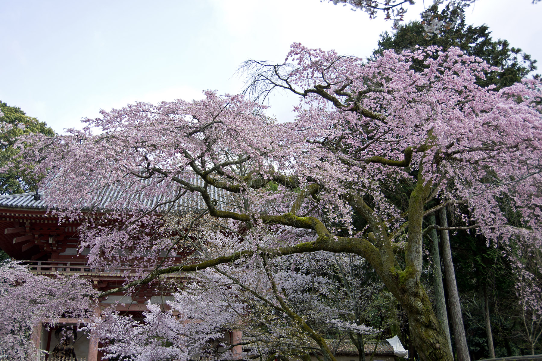 ![]() 霊宝館のしだれ桜 散った花びらの方が多かったです。 |