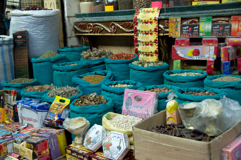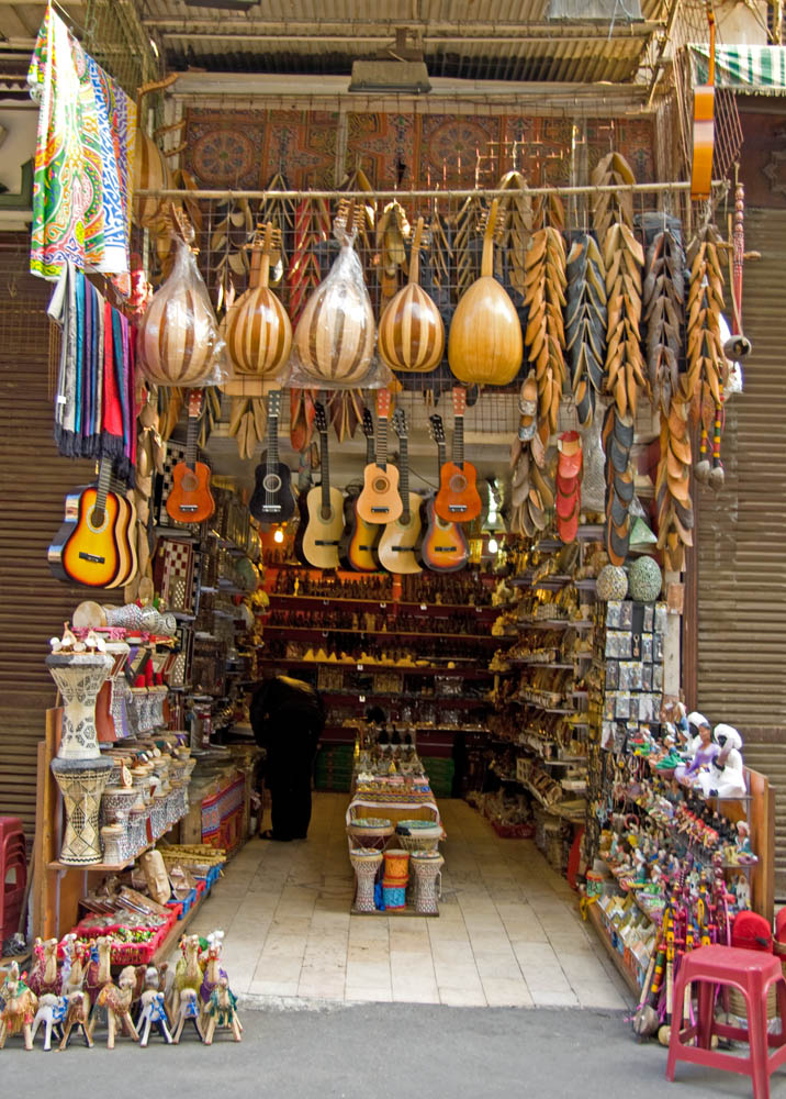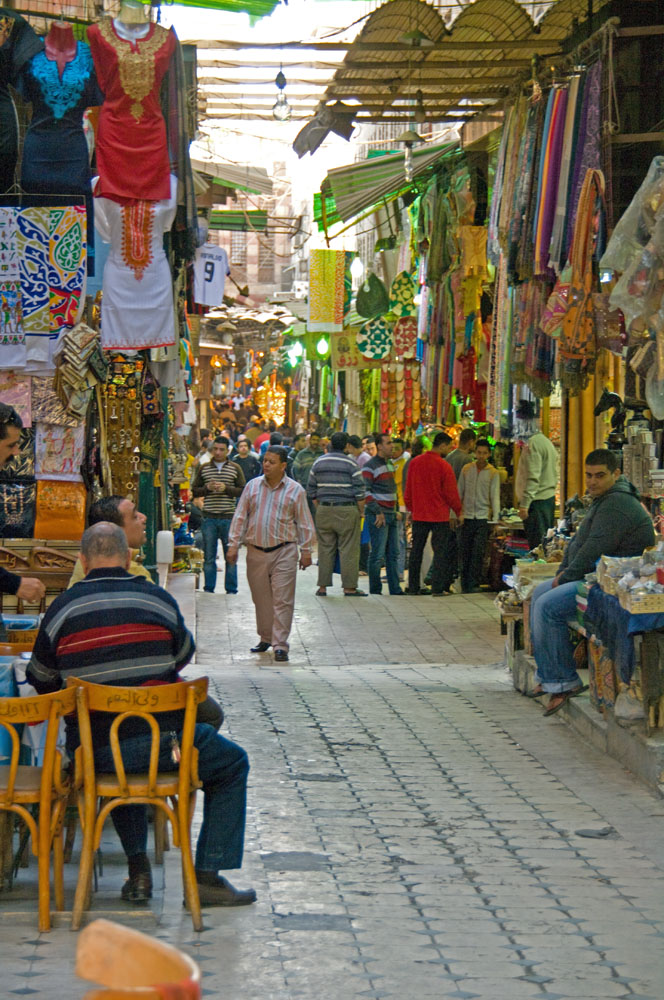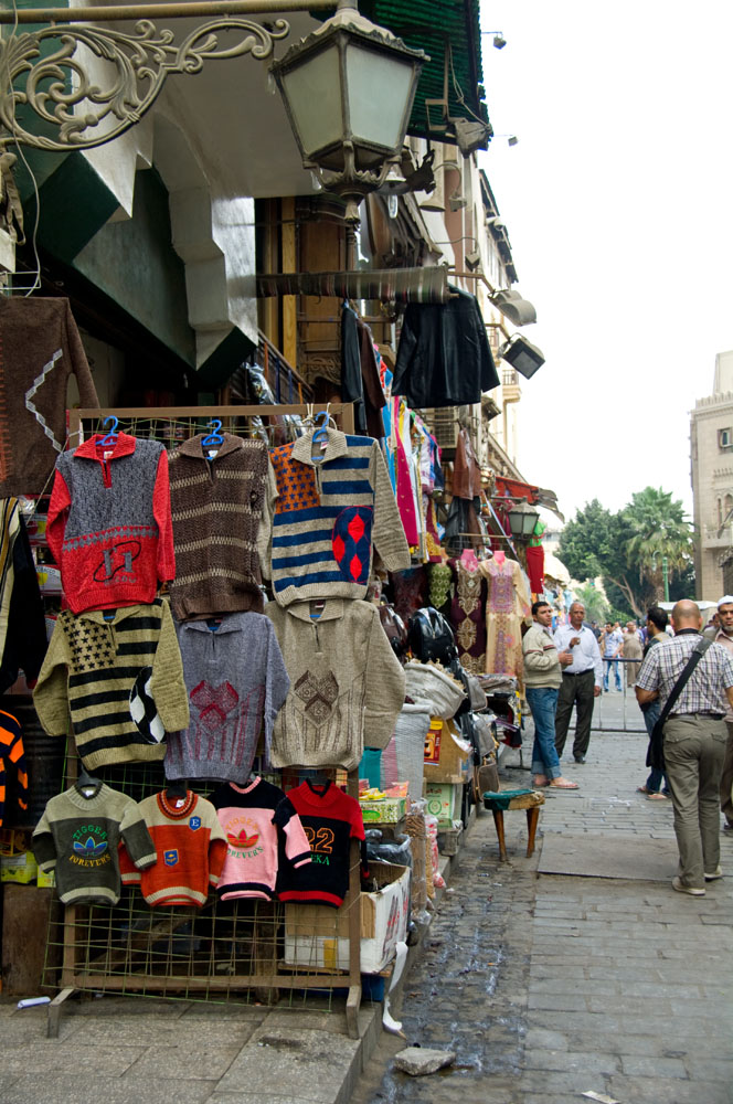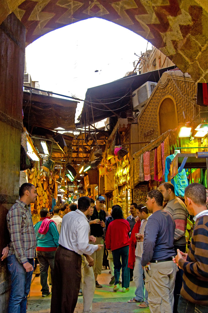 | カイロ中心部のアル・アズハル通り界隈の商店密集エリア.1382年に建てられた隊商宿を起源にする歴史あるバザール.食料品・日用雑貨からアンティークや工芸品,エジプト土産までが揃う. |