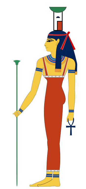 ![]() アンケト(Anuket) 増水をもたらす、飾り立てたもの 頭上に羽毛で飾った帽子。 クヌムの娘もしくはサティスの妹 |