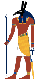 | セトはオシリスとや戦い、殺してバラバラにして川に捨てた。アヌビスは、セトに殺されたオシリス神の遺体を包帯に包んで形をととのえエジプト最初のミイラにしたという神話。セベクは河に流されたオシリス神の体のパーツを拾い集めるのを手伝った。 |