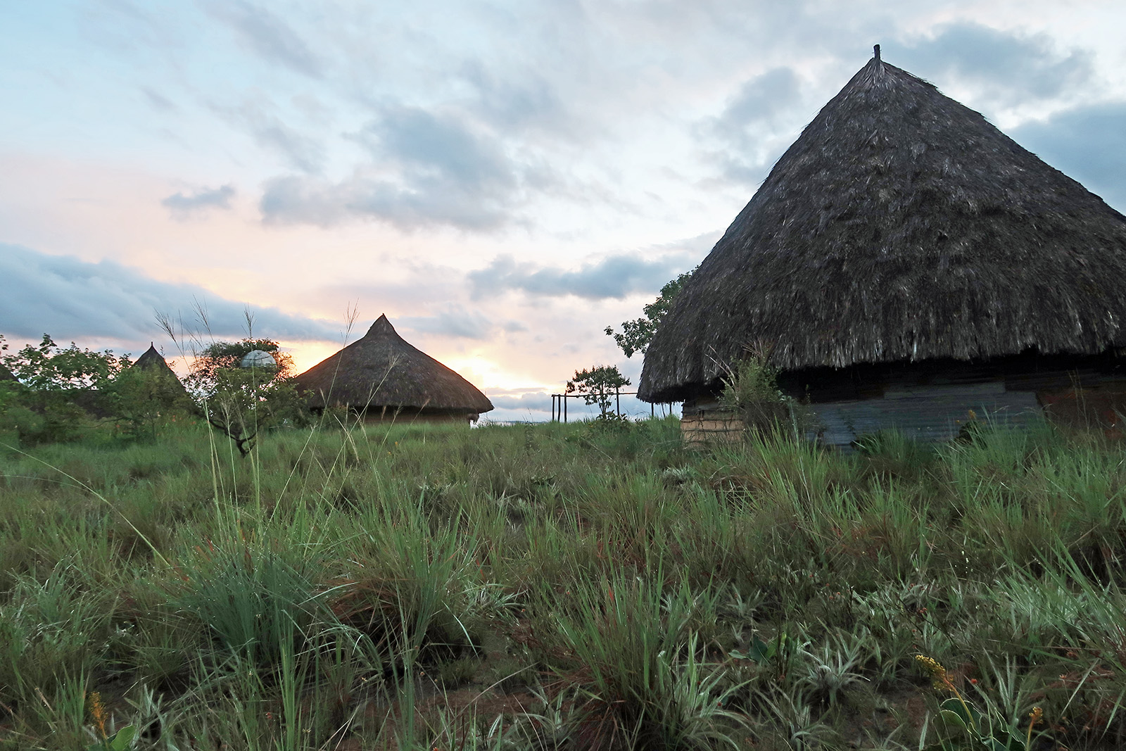 川の左側のキャンプ場(予定ではここでハンモックで1泊だった。) ヘリで来る人もいる、ボートで4時間が、ヘリなら20分だそうです。