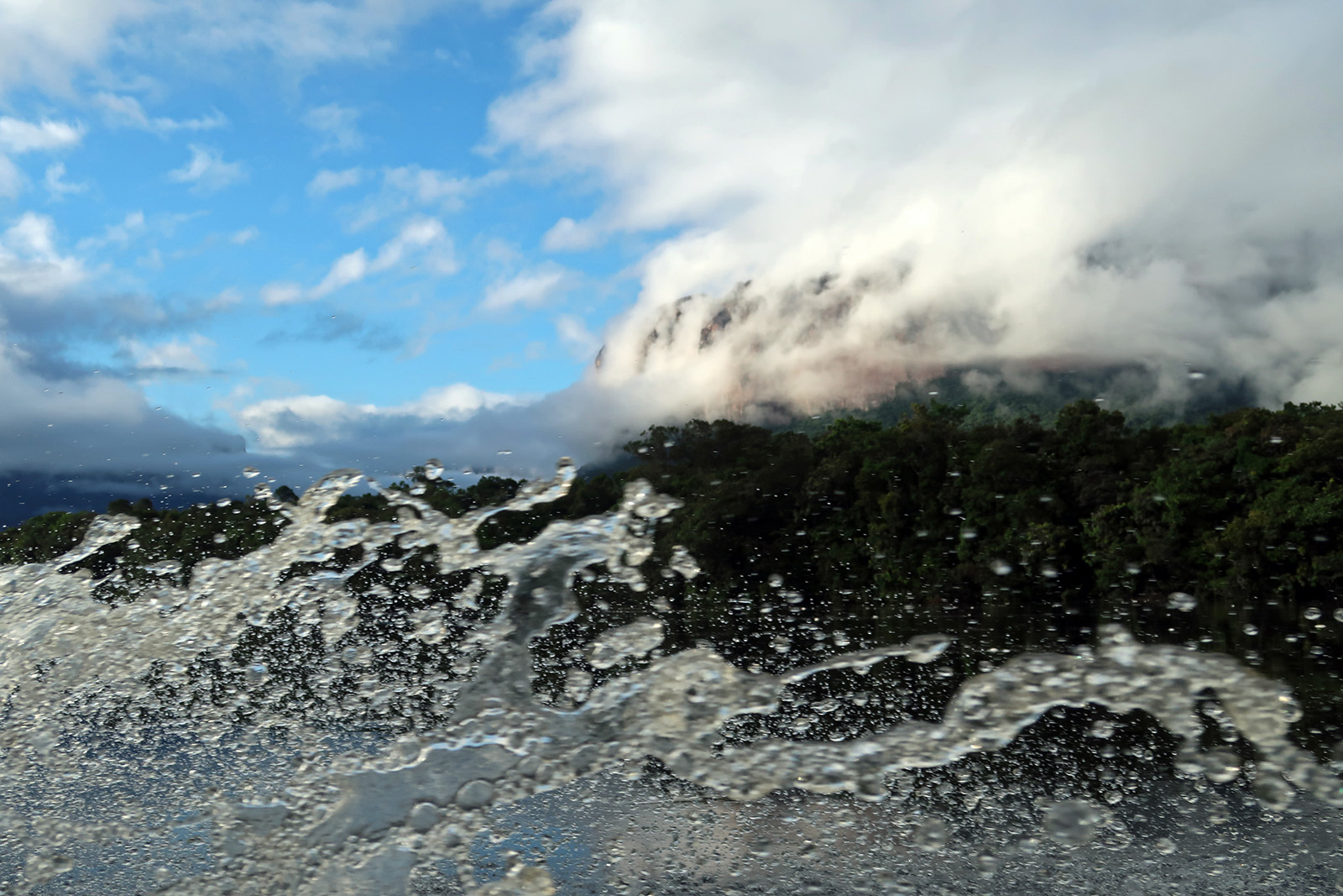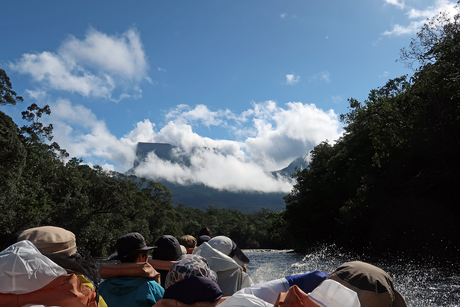 ボートは川を猛スピードで走る。常に水しぶきがかかり、ジャングルとテプイの景色が目まぐるしく変わる。