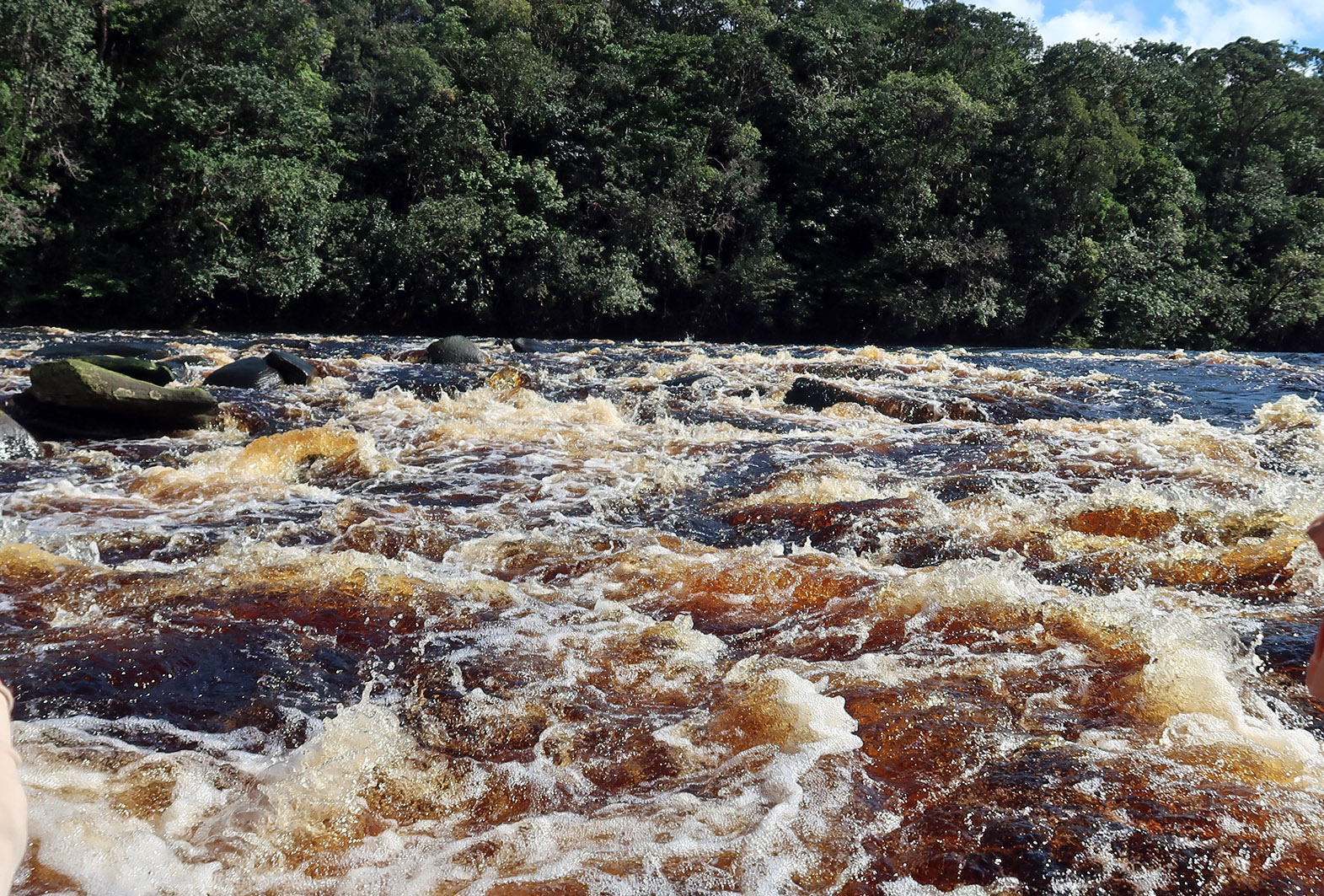 浅瀬になると、タンニンによる茶色の水が波立ち、泡が起こる。