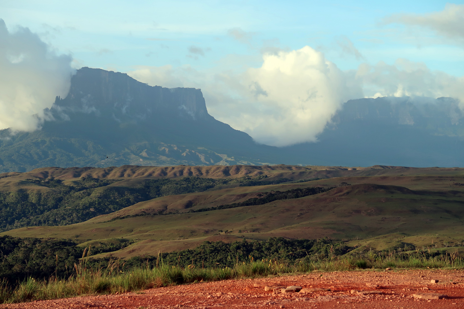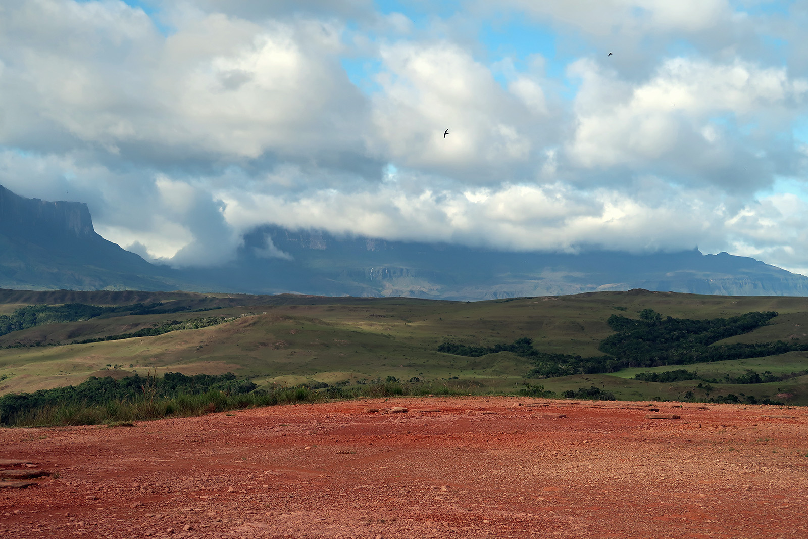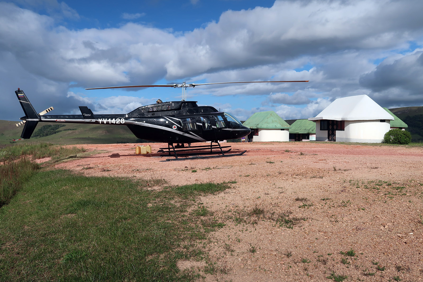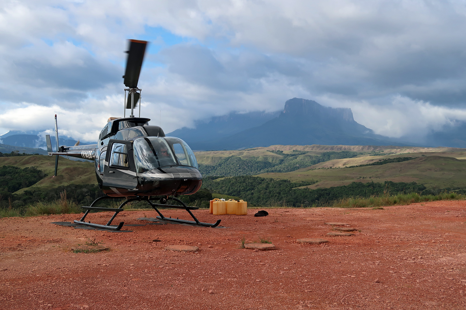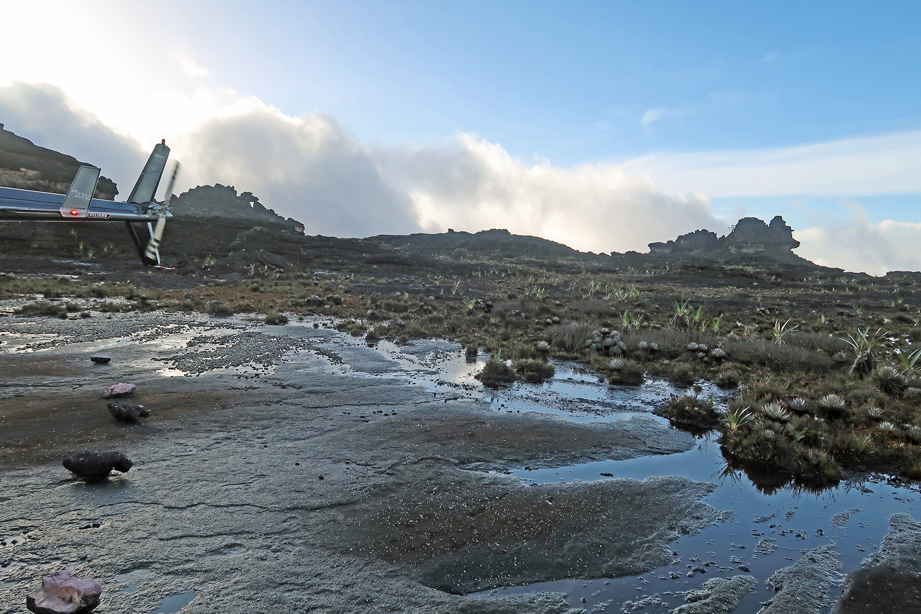 ロライマ山の山頂は雲の覆われている。これではヘリは着陸できない。