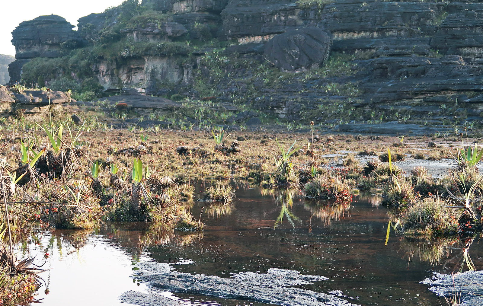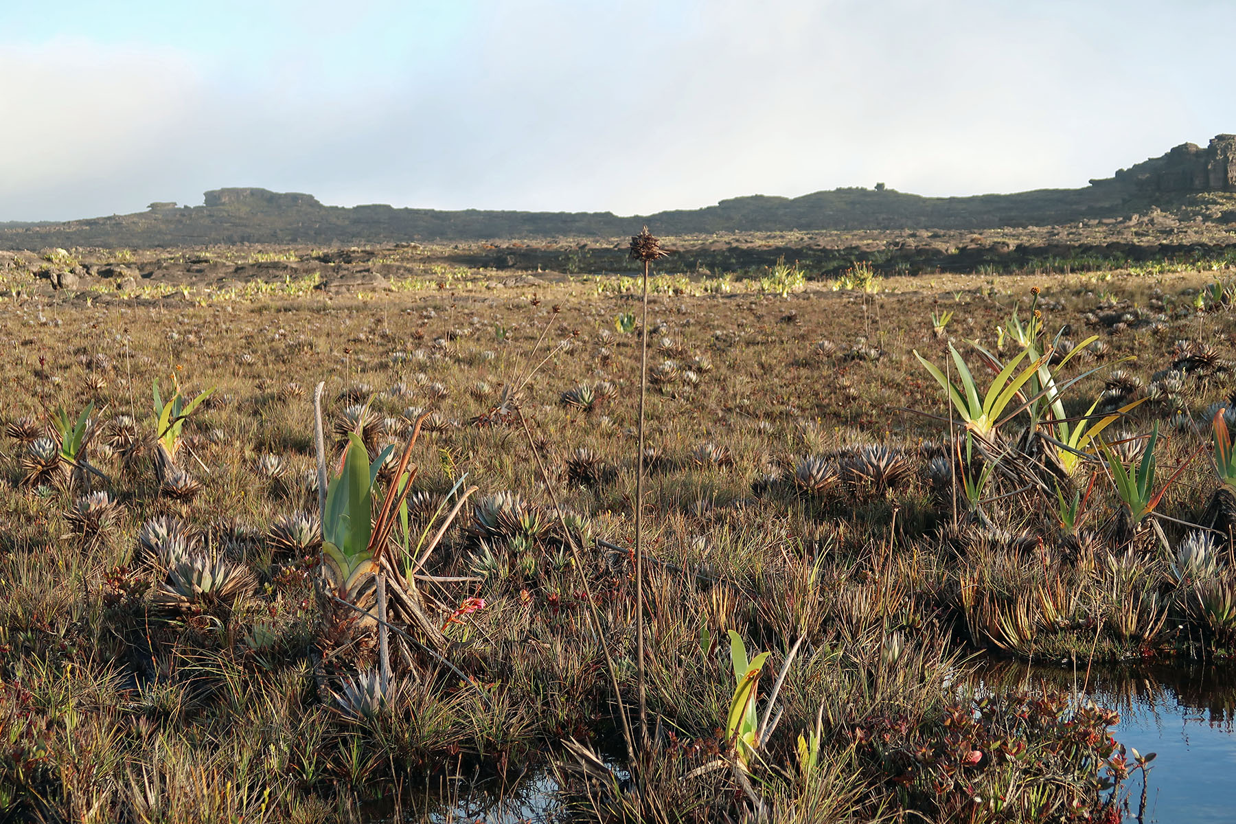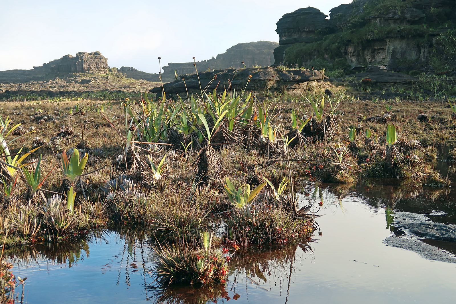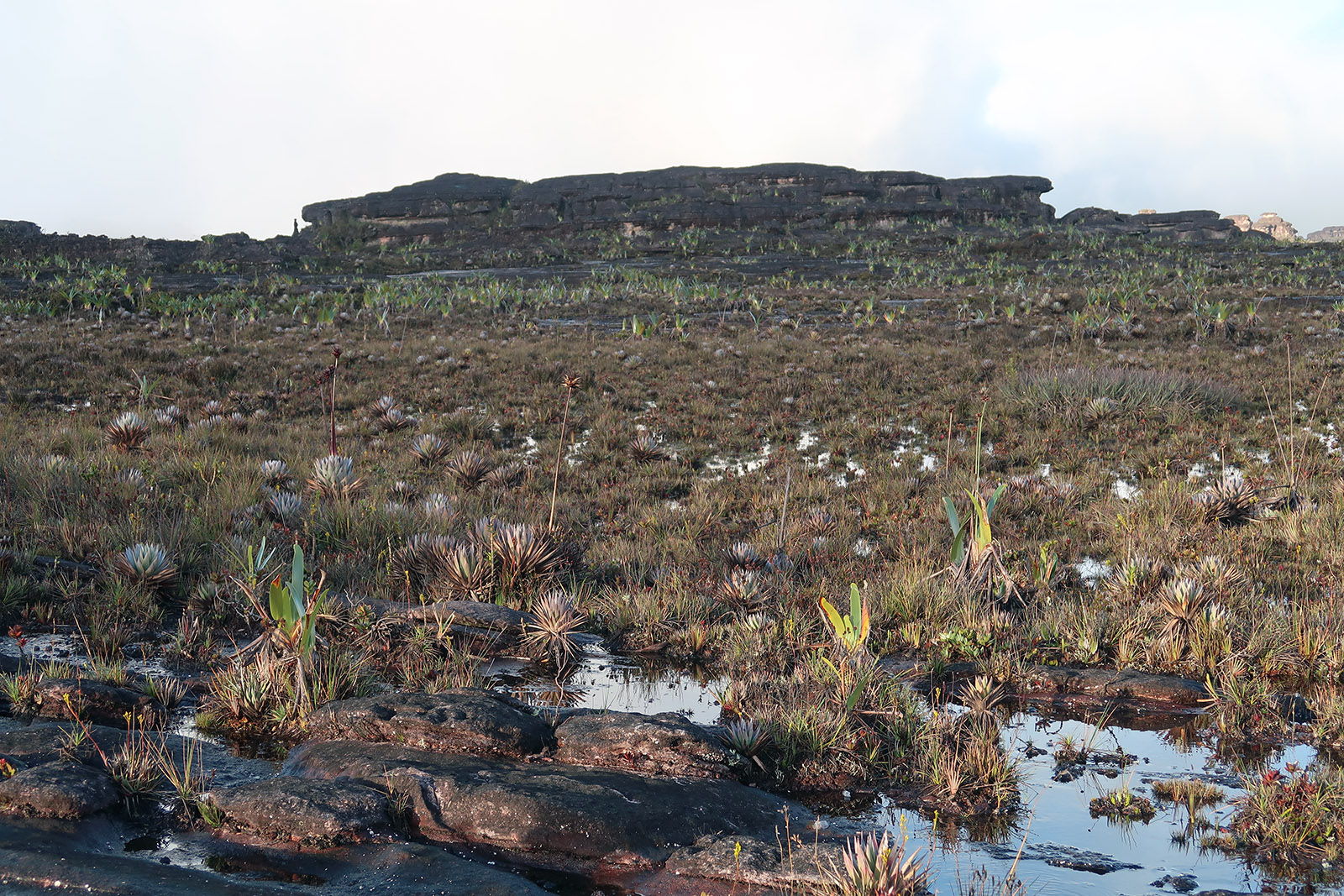 頂上の台地の様子 太古の地球を残す奇妙な形の岩と独特の植物