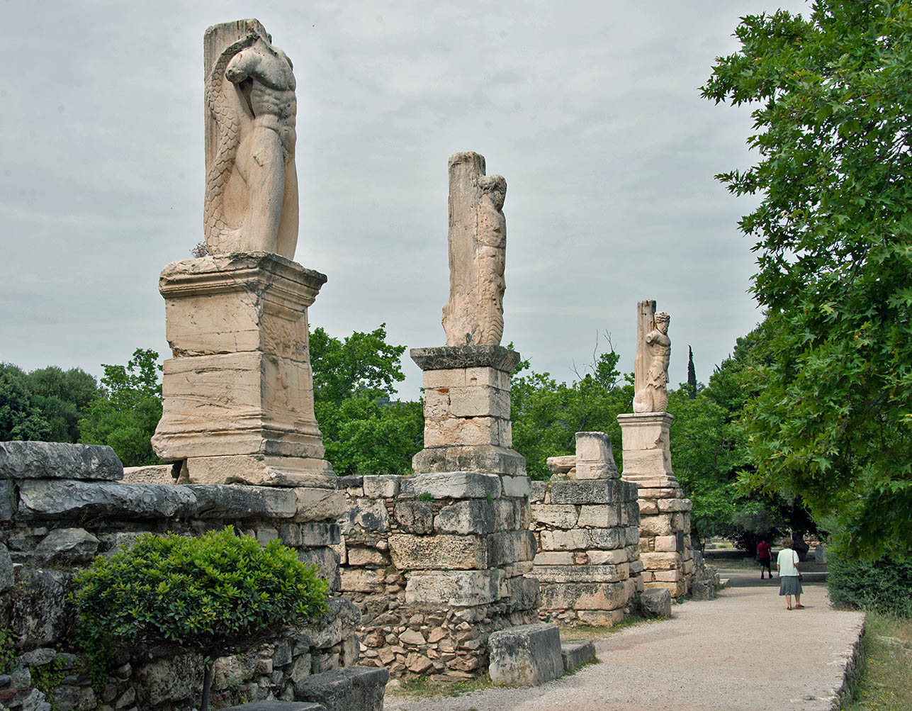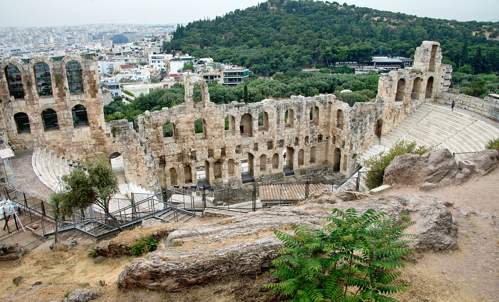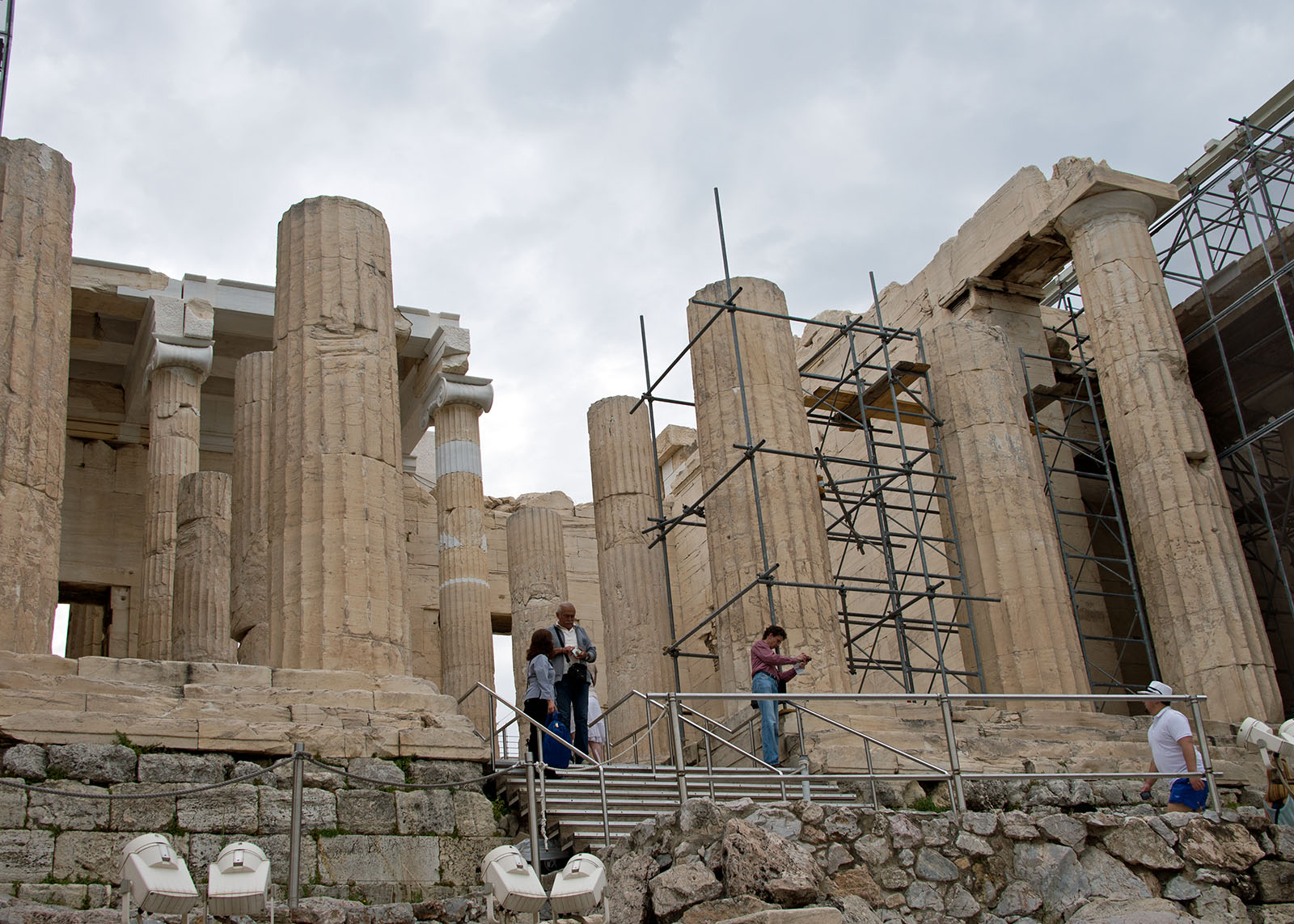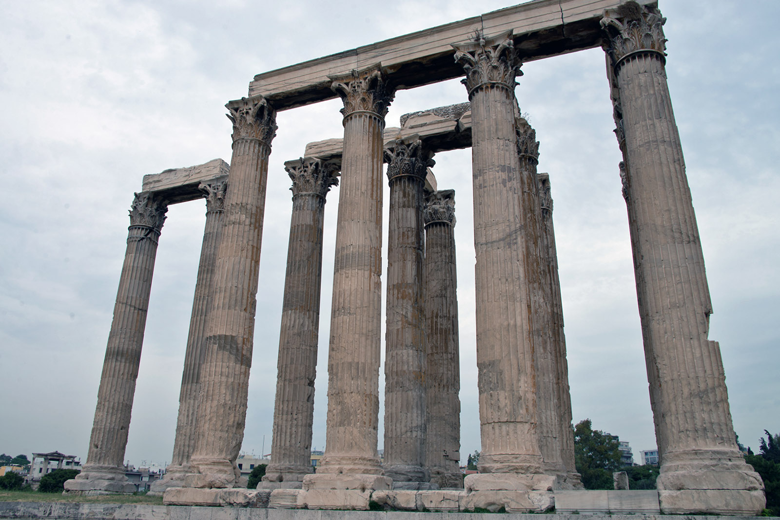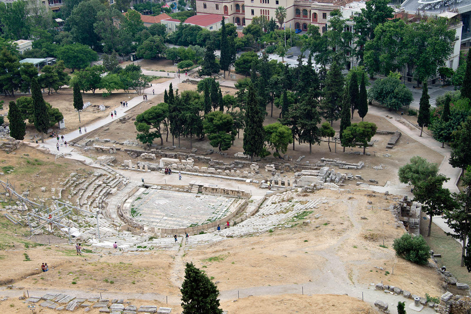 古代ギリシャの各ポリスには守護神が存在しておりアテナはアテネの守護神であった。 神話によると、智恵や戦略で戦いを指導する処女(パルテノン)女神アテナは、 海・水の守護神であるポセイドンと、アテネの支配権をめぐって争った。 それは、2人の神がアテネに贈り物をし、どちらが優れているかをアテネの人が決めるというもの。 まず、ポセイドンが三叉の矛で地面をたたき、泉を作ったが、塩水しか出なかった。 一方、アテナはオリーブの木を贈り、人々はこれを喜び、アテナがアテネの守護神となった。 BC5世紀当時、ペルシアとの戦で勝利を得、ギリシャの中心となっていたアテネは、 その守護神への感謝を表明するため、高さ12mにも及ぶ黄金と象牙のアテナ像を彫刻家 フィディアスに作成させた。それを設置するために、アクロポリスに既存の神殿を改造・拡大させ、 計46本の柱を有する、幅約31m、奥行き約70mの巨大なパルテノン神殿が建てられた。 現在はアテナ像はなく、破損した神殿の復元工事が続いているが、その存在感は当時のままである。 |