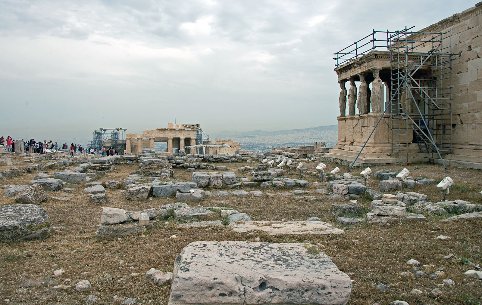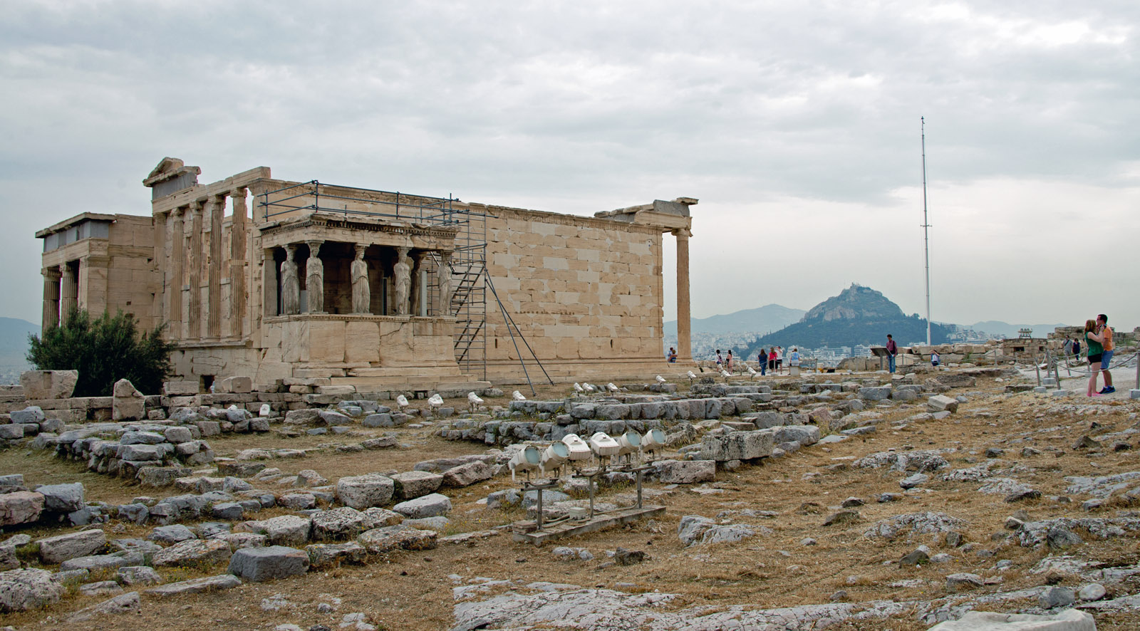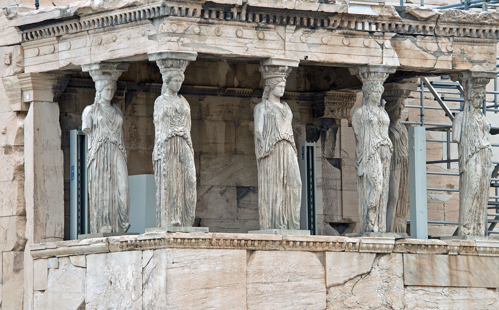 神殿内には神聖な蛇が生息しアテネの安全を守っていると信じられていた。この蛇への信仰は現代のギリシャにも残っている。 エレクティオンでもっとも有名なのは屋根を支える、カリアティード(=少女の姿がかたどられた6本の柱)である。 現在この地にある柱は複製で、オリジナルはアクロポリス博物館と大英博物館に所蔵されている。 |
