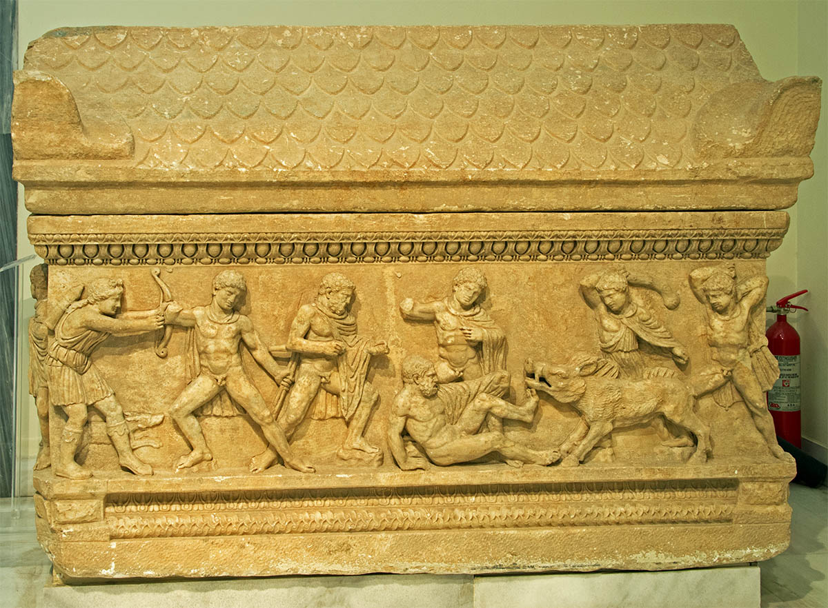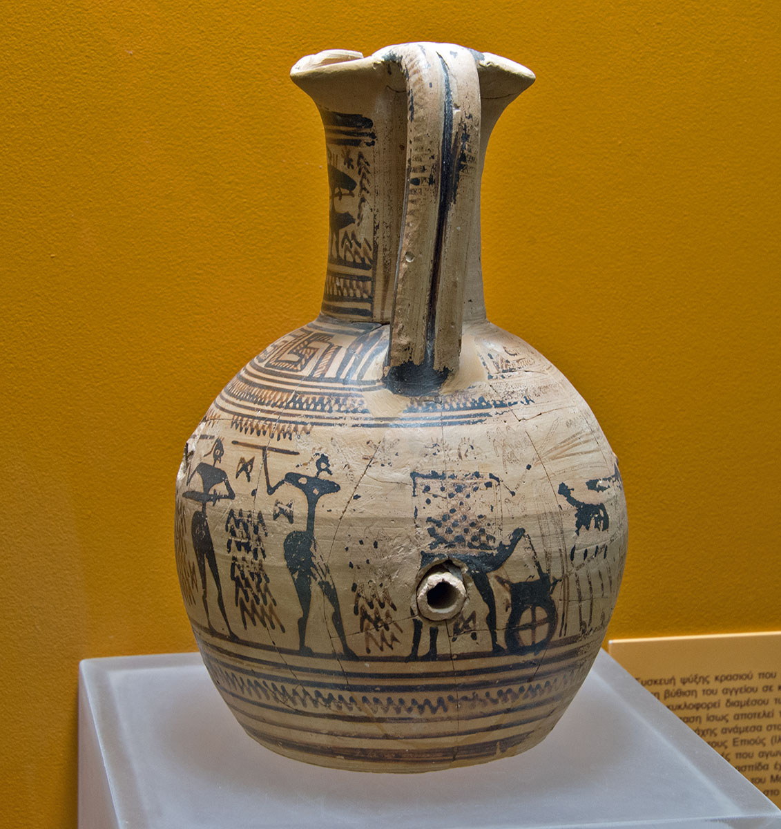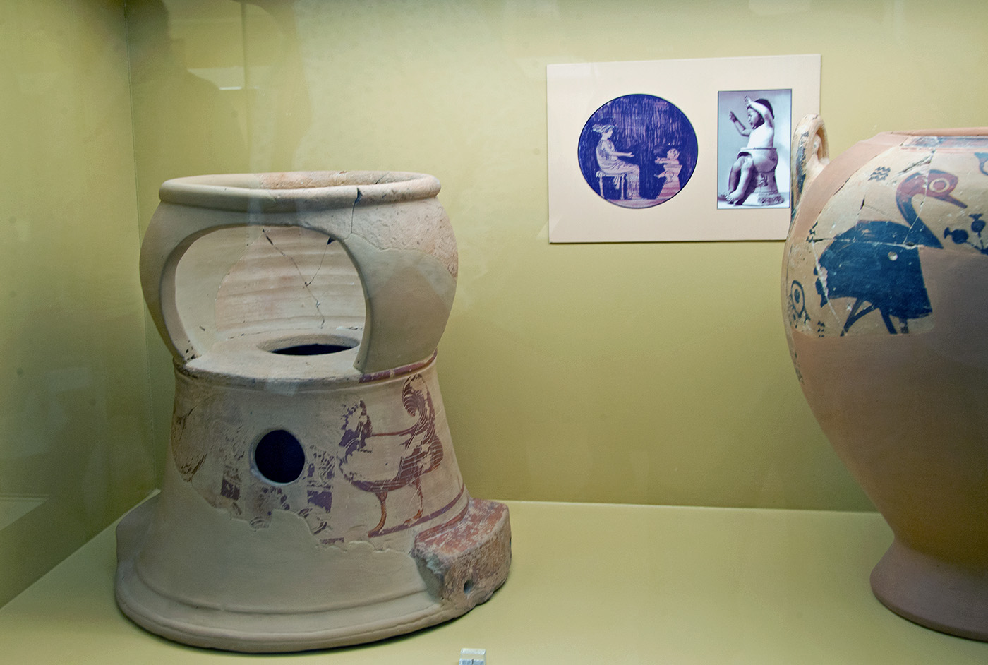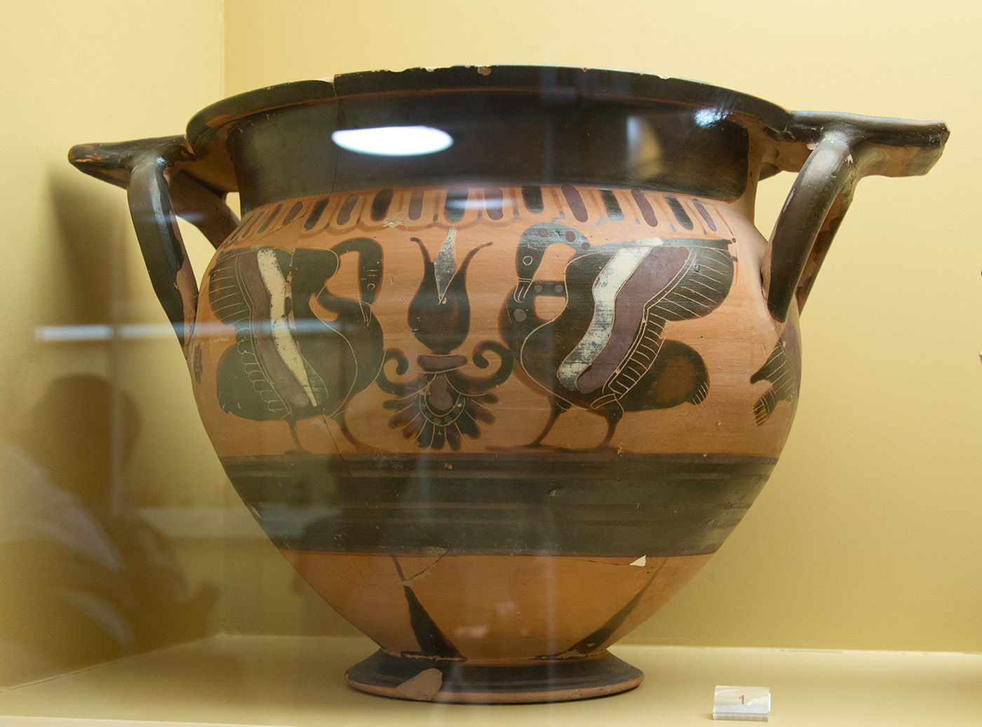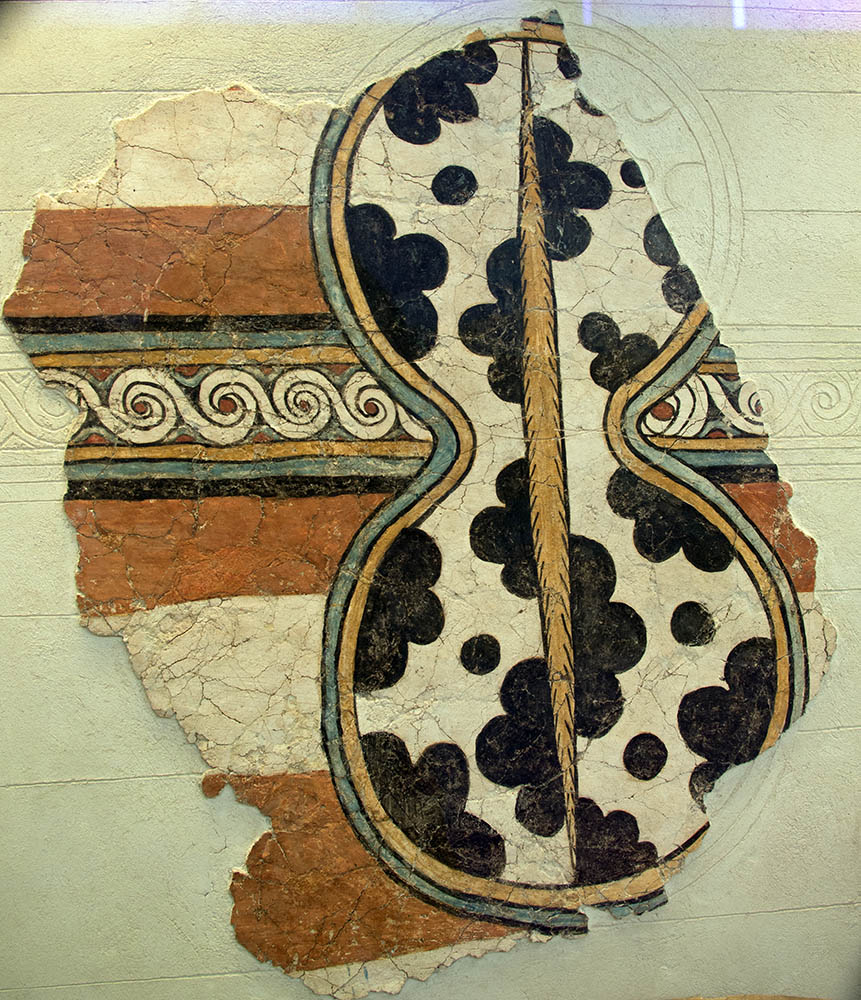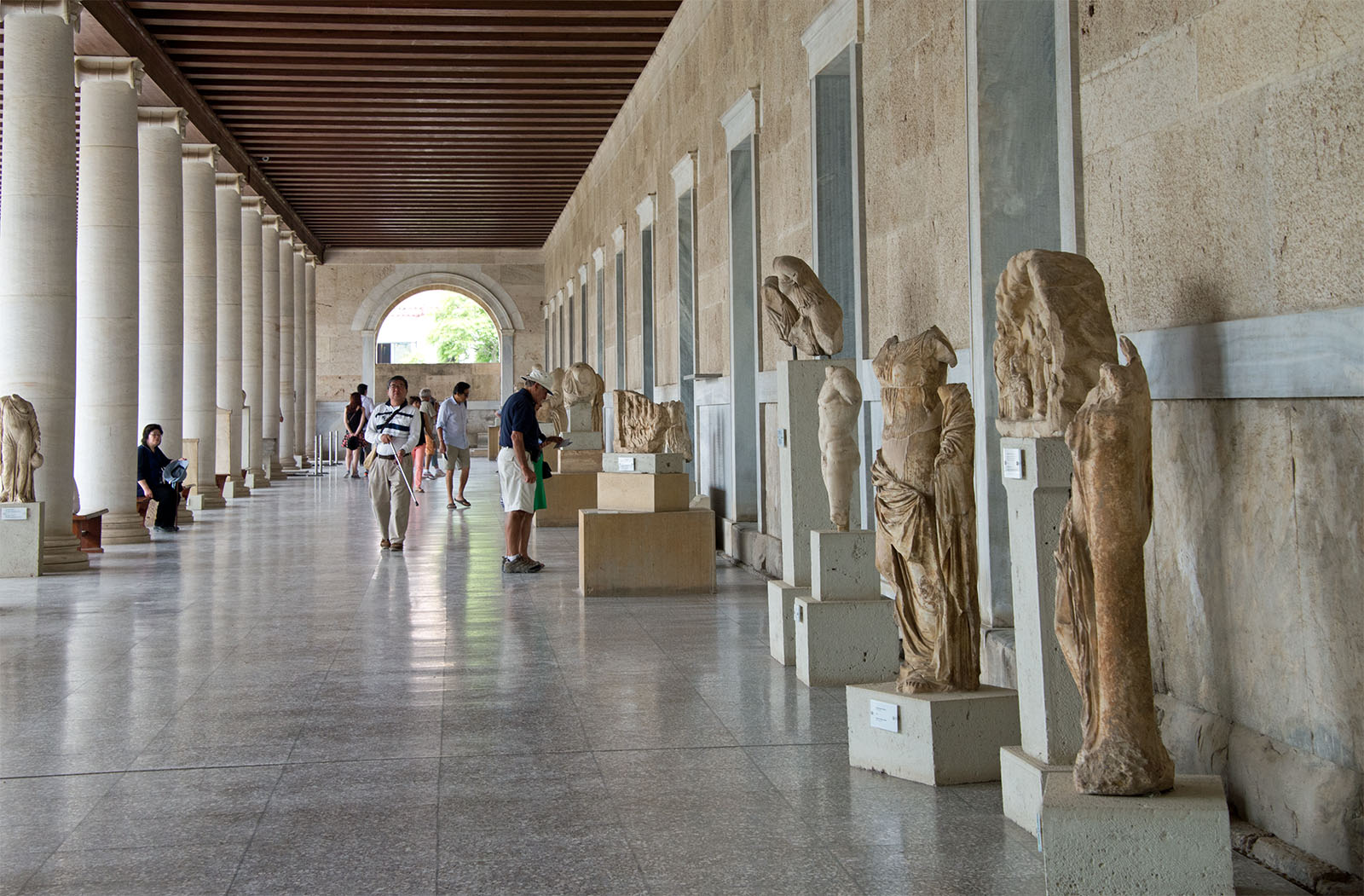 ミケーネ遺跡から出土した 「アガメムノンの黄金の仮面」、海底からみつかった「馬上の少年像」、 デロス島の「アフロディーテと牧神パンとエロスの像」「ポセイドンの青銅像」などが見られる。 1975年以降,サントリニ島出土の壁画群が特別展示されおり、見ものである。 |