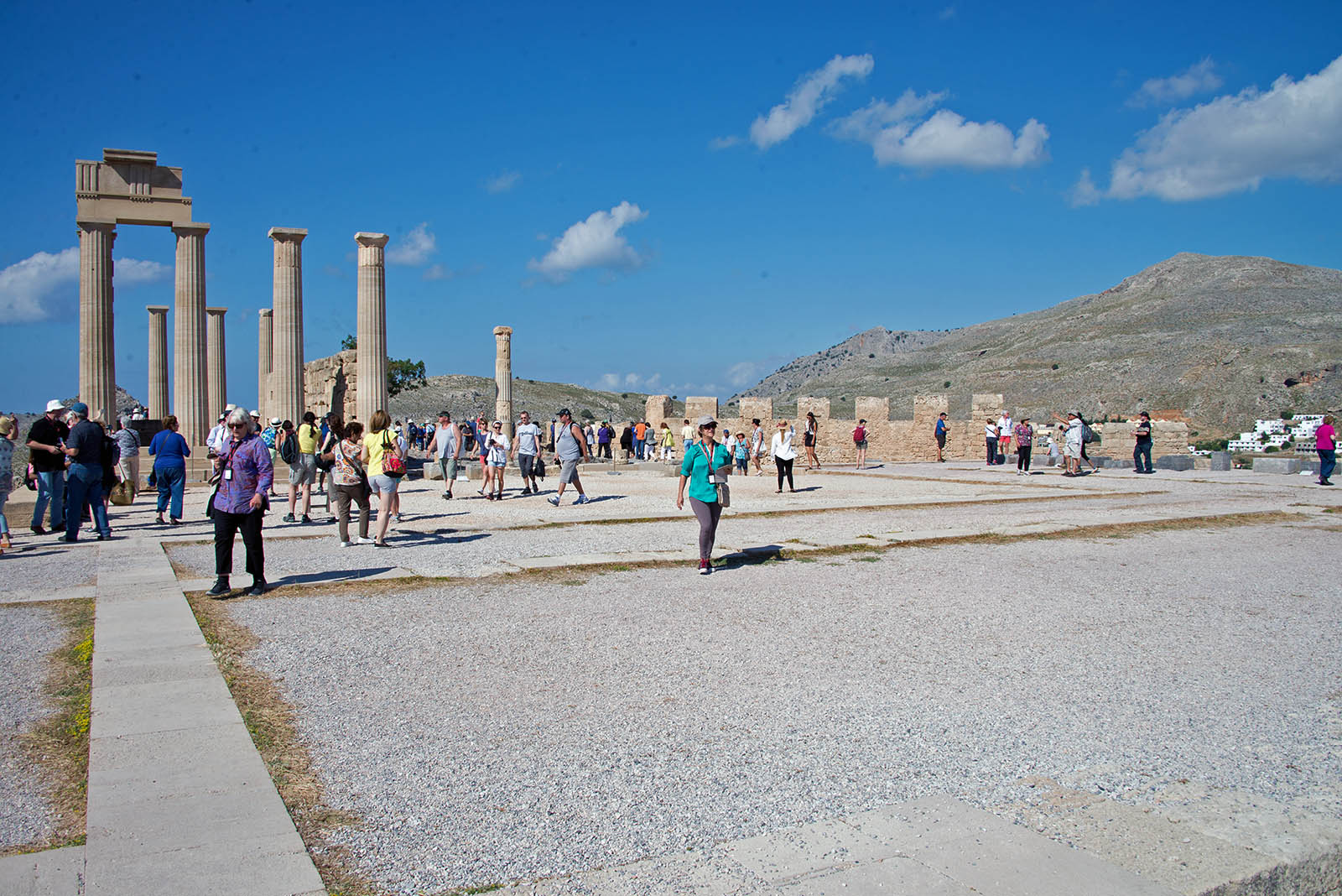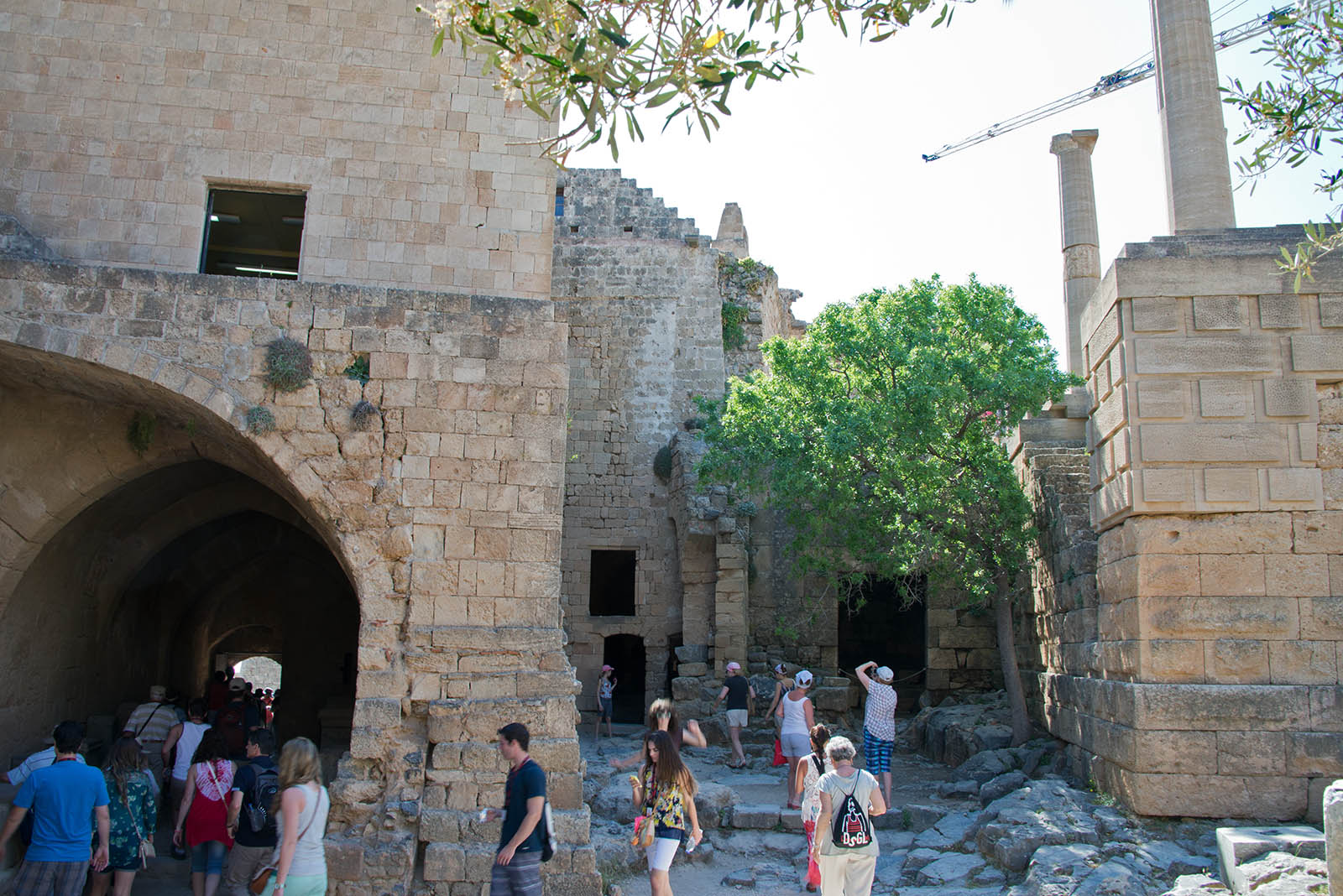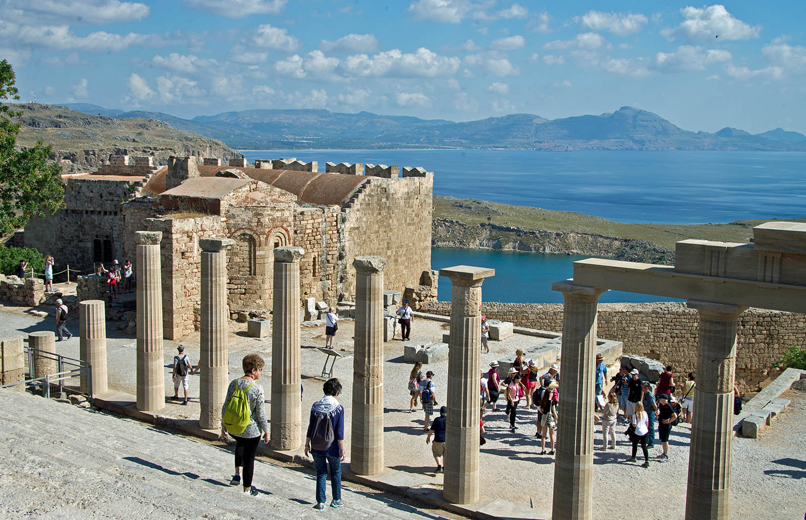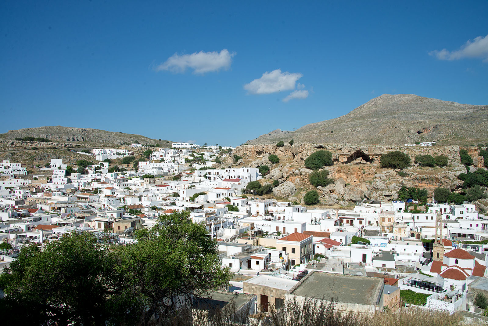 現代の街より海岸沿いの小高い丘にアクロポリスがあり、古典期には巨大なアテーナ・リンディアの神殿が建設され、 BC300年ごろに最終的な形に達した。ヘレニズム期とローマ帝国時代にはさらに神殿などが増築されて発展した。 中世初期には建物は廃墟となり、14世紀にはその上に聖ヨハネ騎士団が要塞を建設しオスマン帝国と対峙し、 さらにオスマン帝国が要塞として使った。このように地の利を得た要塞として、古代ギリシア、ローマ帝国、 東ローマ帝国、聖ヨハネ騎士団、オスマン帝国というように数奇な利用の歴史を持つために、 発掘とその考古学的解釈が難しくなっている。 |