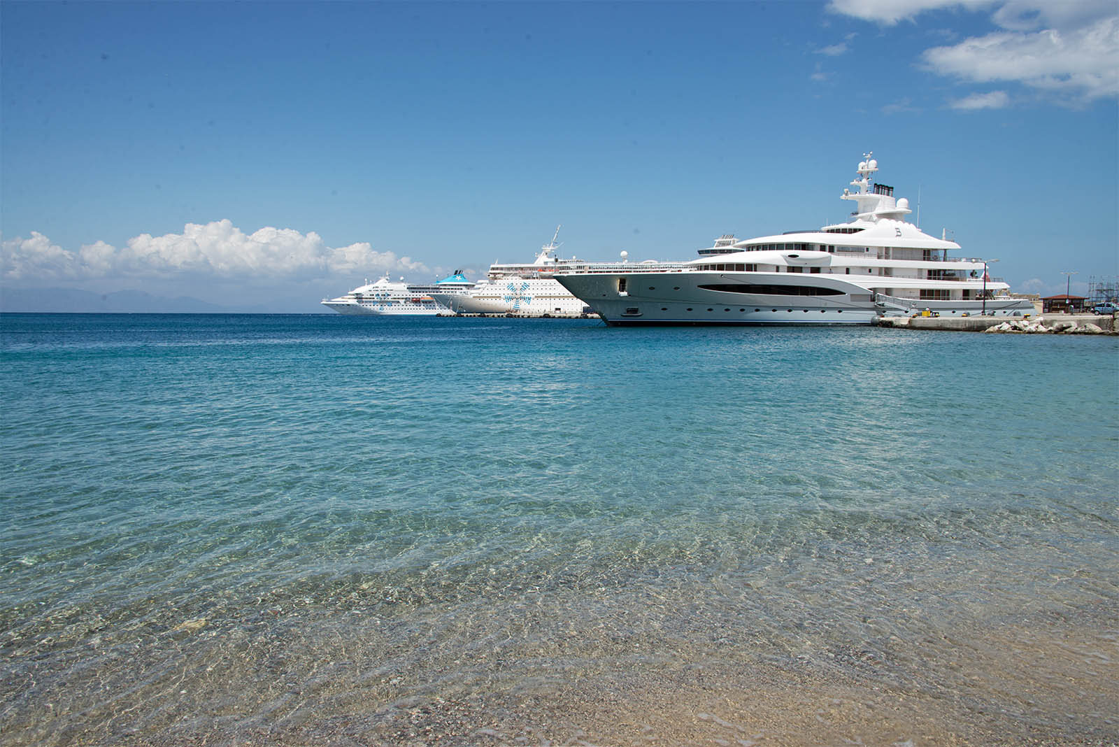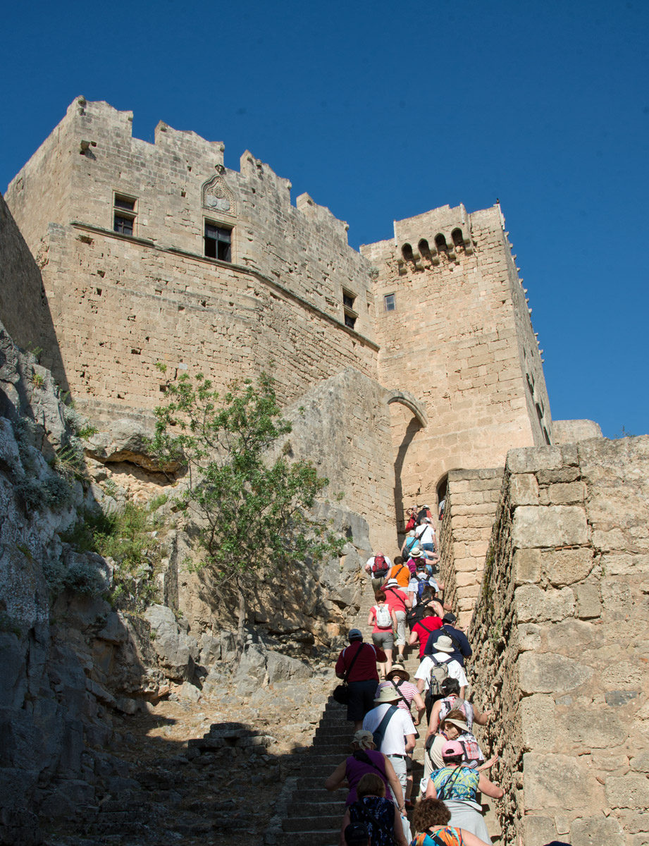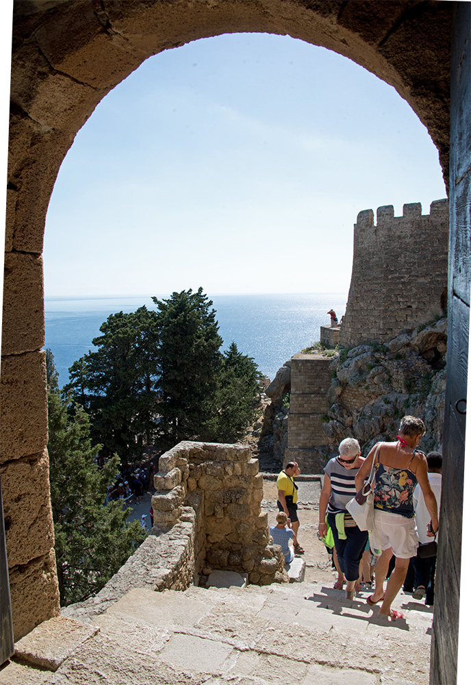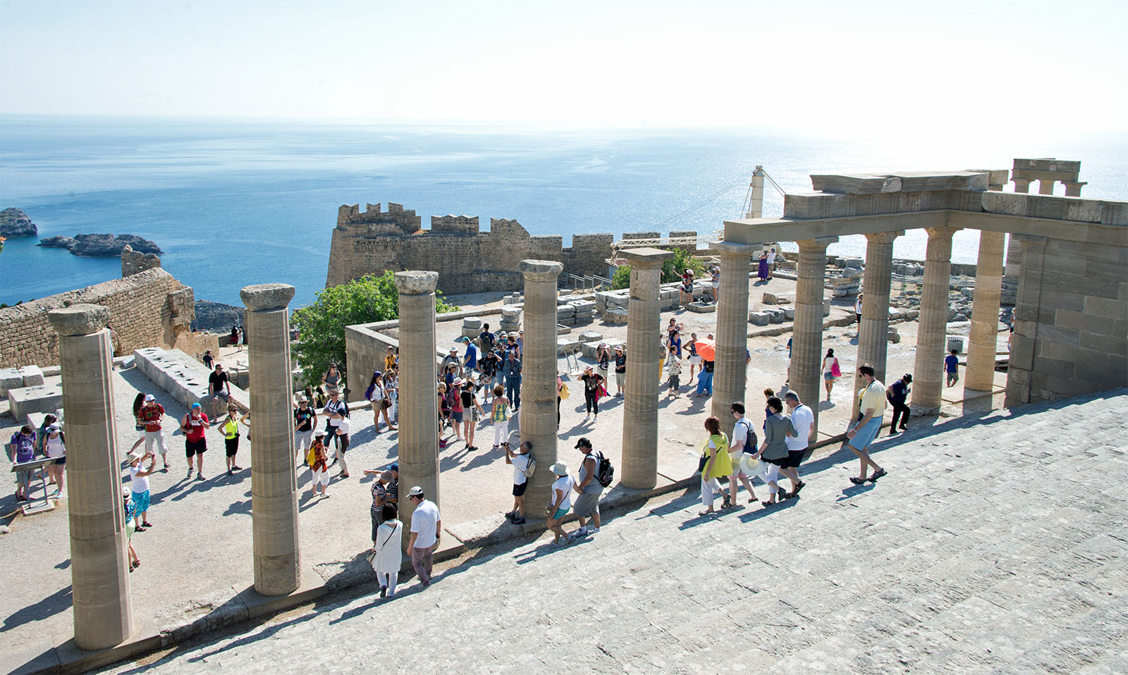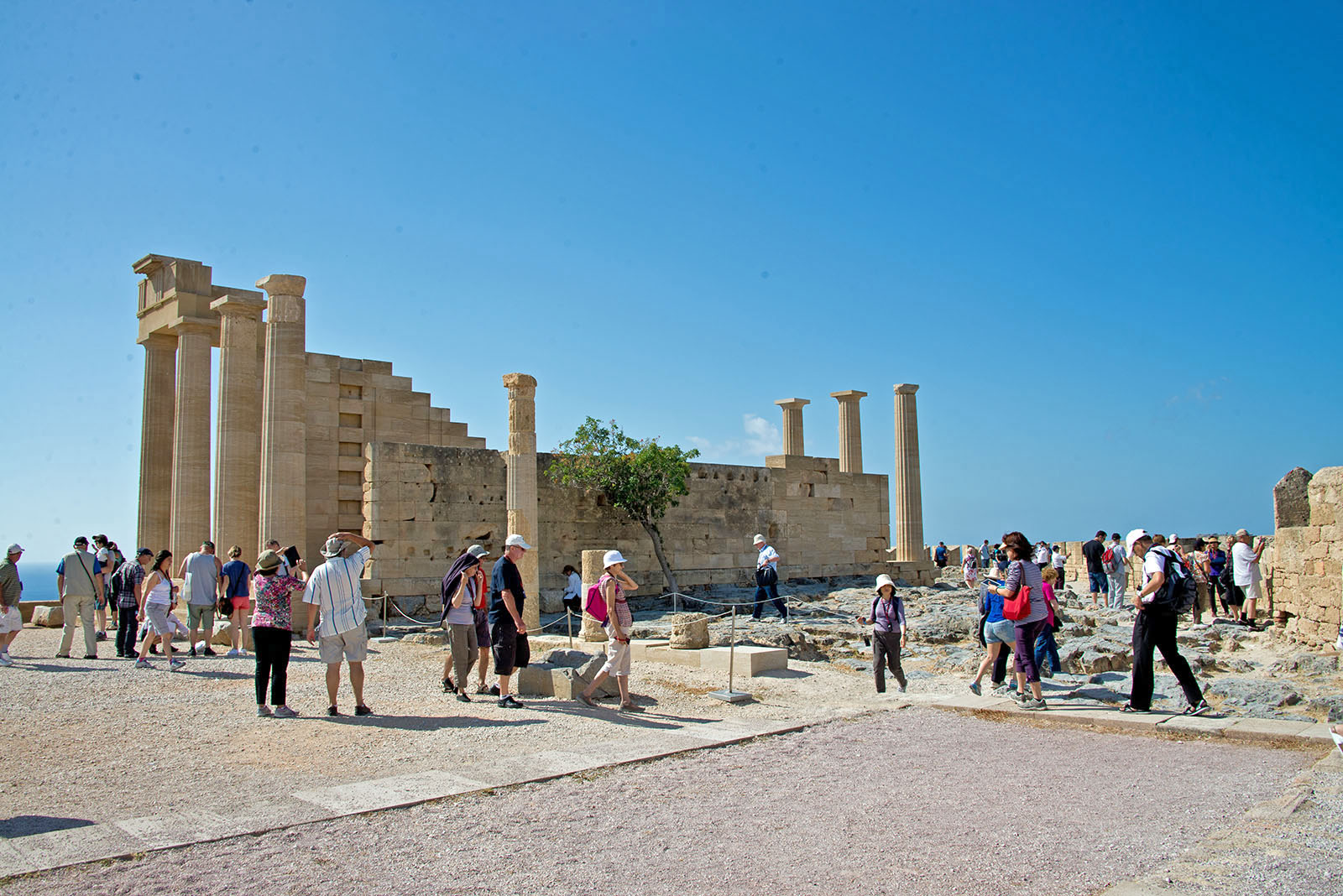 現代の街より海岸沿いの小高い丘にアクロポリスがあり、古典期には巨大なアテーナ・リンディアの神殿が建設され、 BC300年ごろに最終的な形に達した。ヘレニズム期とローマ帝国時代にはさらに神殿などが増築されて発展した。 中世初期には建物は廃墟となり、14世紀にはその上に聖ヨハネ騎士団が要塞を建設しオスマン帝国と対峙し、 さらにオスマン帝国が要塞として使った。このように地の利を得た要塞として、古代ギリシア、ローマ帝国、 東ローマ帝国、聖ヨハネ騎士団、オスマン帝国というように数奇な利用の歴史を持つために、 発掘とその考古学的解釈が難しくなっている。 |