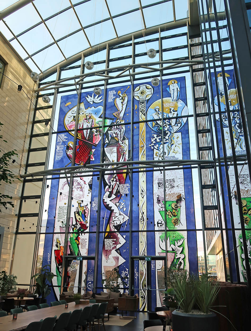 2011年にオープンした文化複合施設。1万枚もの窓ガラスを幾何学模様に組み合わせた