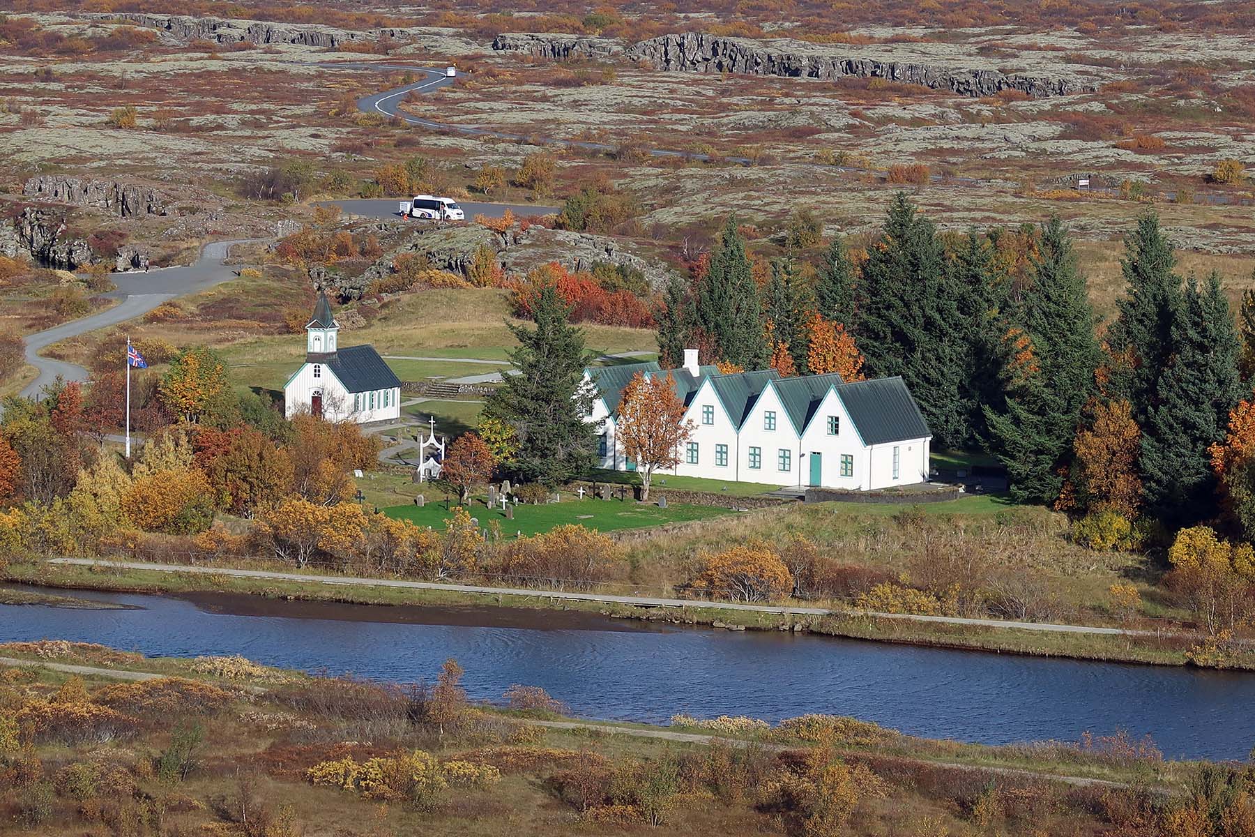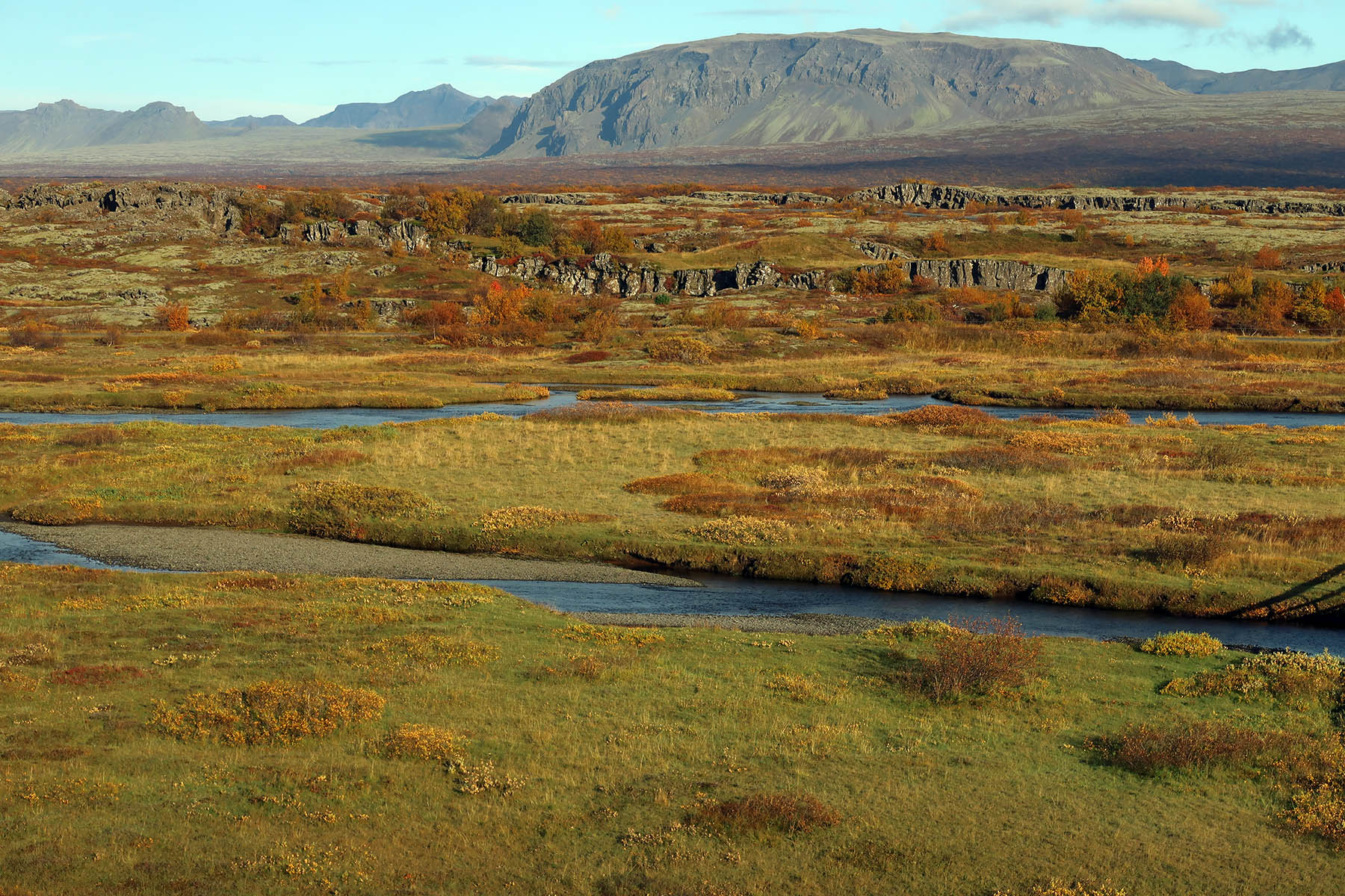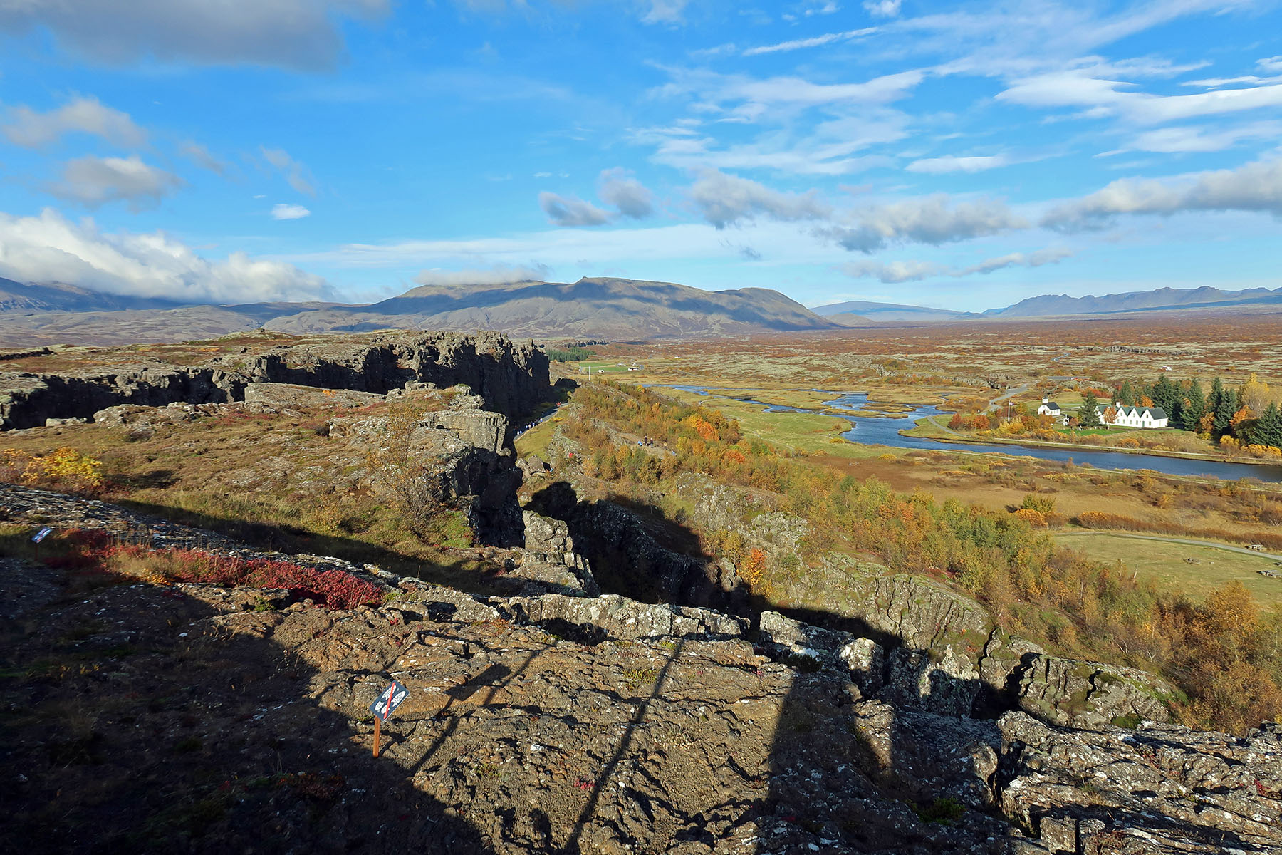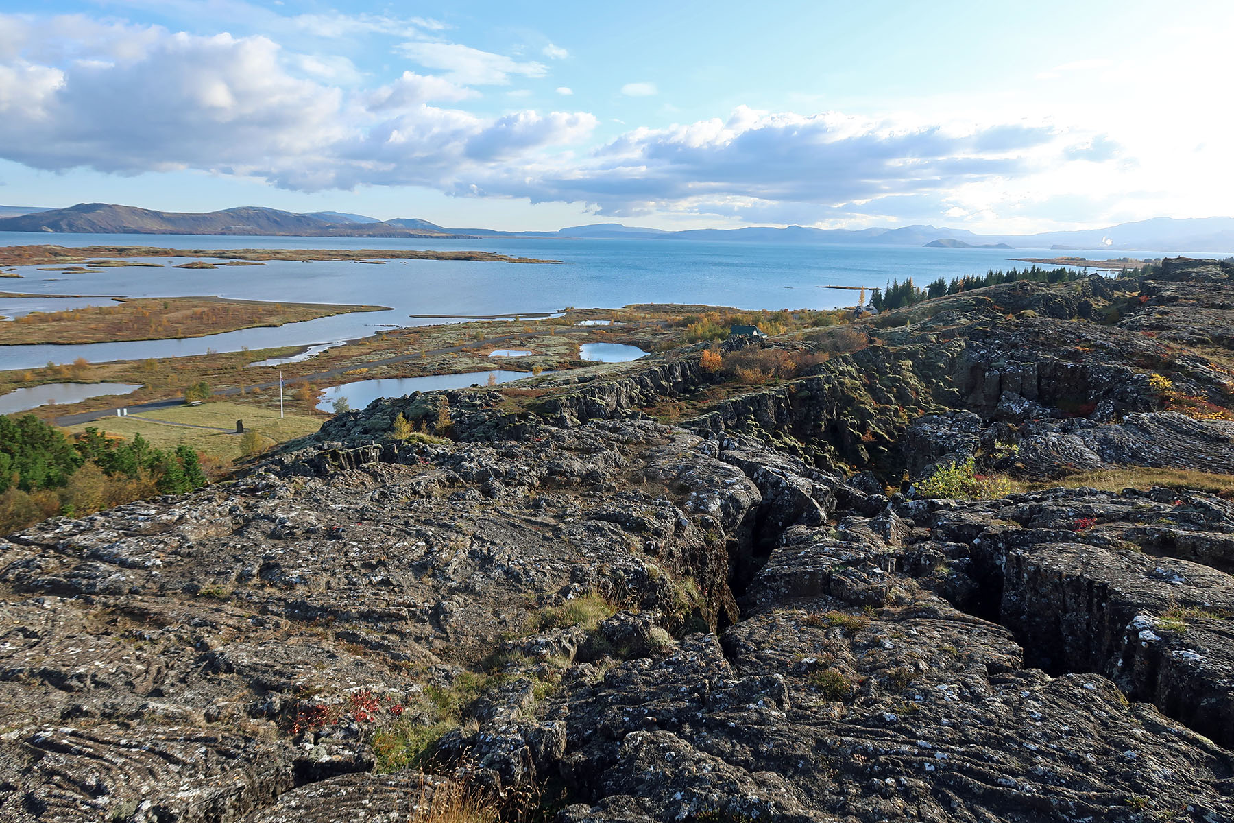シンクヴェトリルの西端に位置する長ぁE岩割れ目断層アルマンナギャゥEElmannagj?EE西の一帯は
