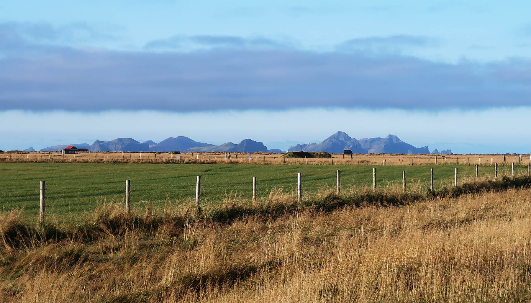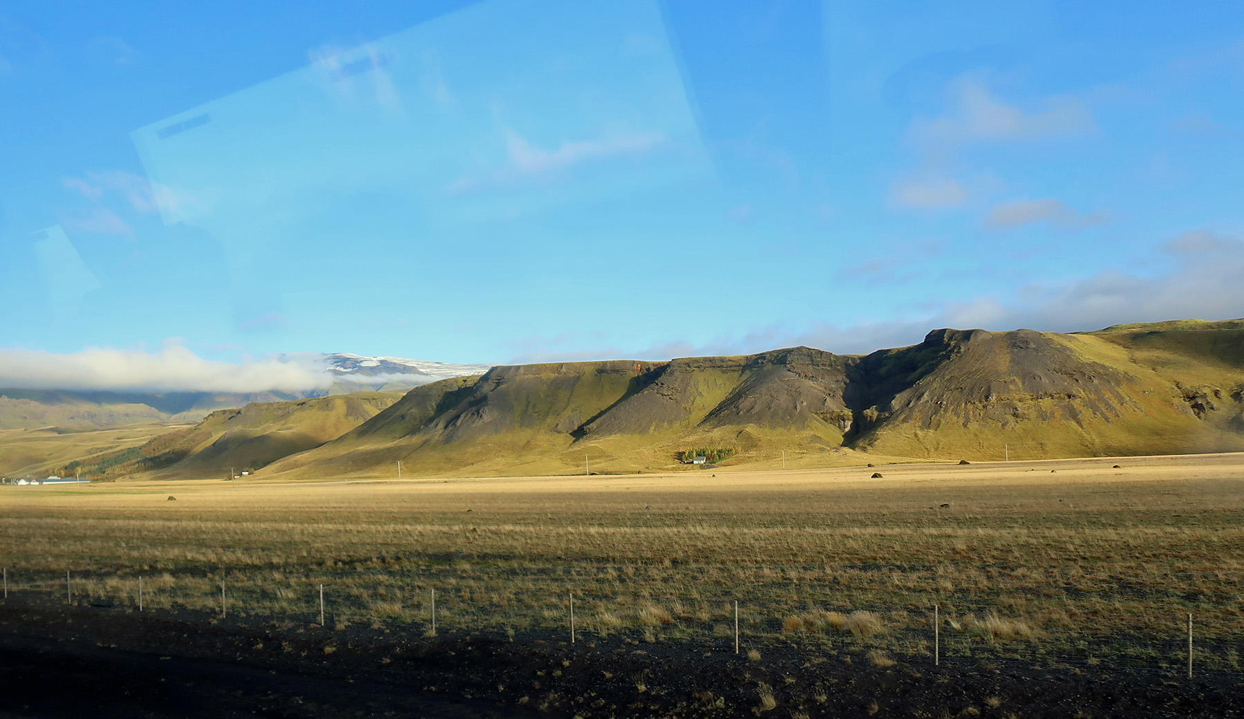 | 2010年の、この右奥のエイヤフィヤトラヨークトルの小さいな山で噴火がおき、