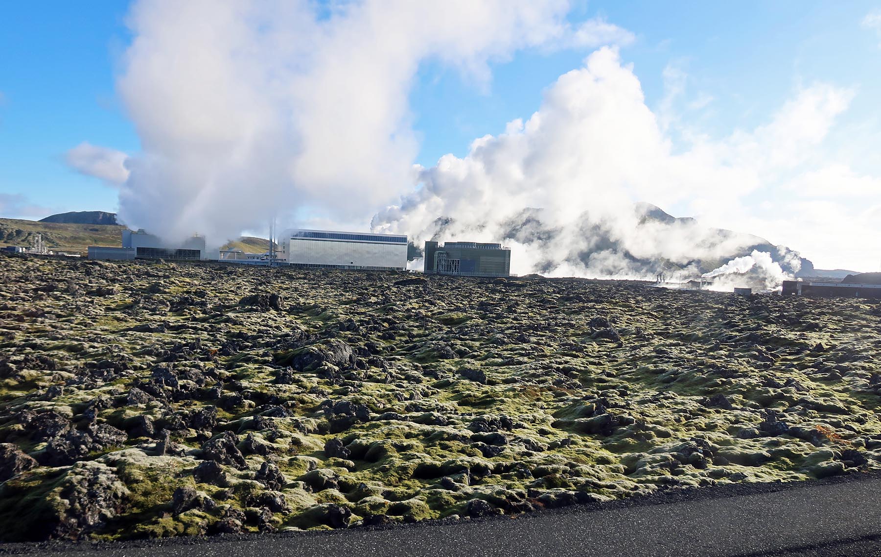 地熱発電所 周りはエルドフレイン(緑の苔むす溶岩原)