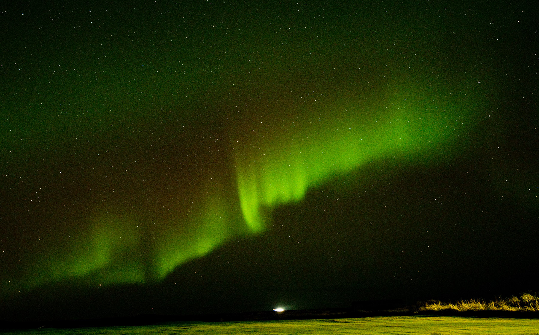 レイキャネス半島の先端の灯台まで行くも、あまり綺麗なオーロラには会えなかった。