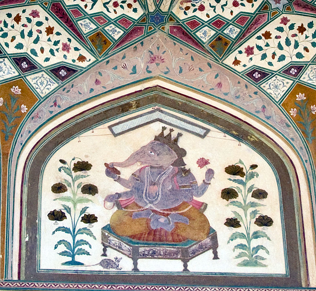 中央にヒンドゥー教の神ガネーシャ(象の神)