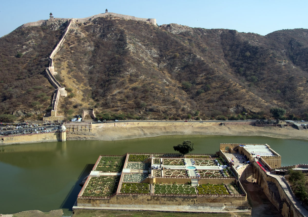 ジャル・マハル湖と水中宮殿 アンベール城からジャイプルへの途中