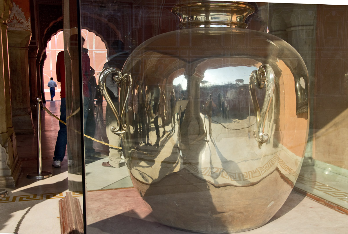 王子が船で渡英したときに、ガンジスの聖水を入れて運んだという、世界最大の銀製の壷.