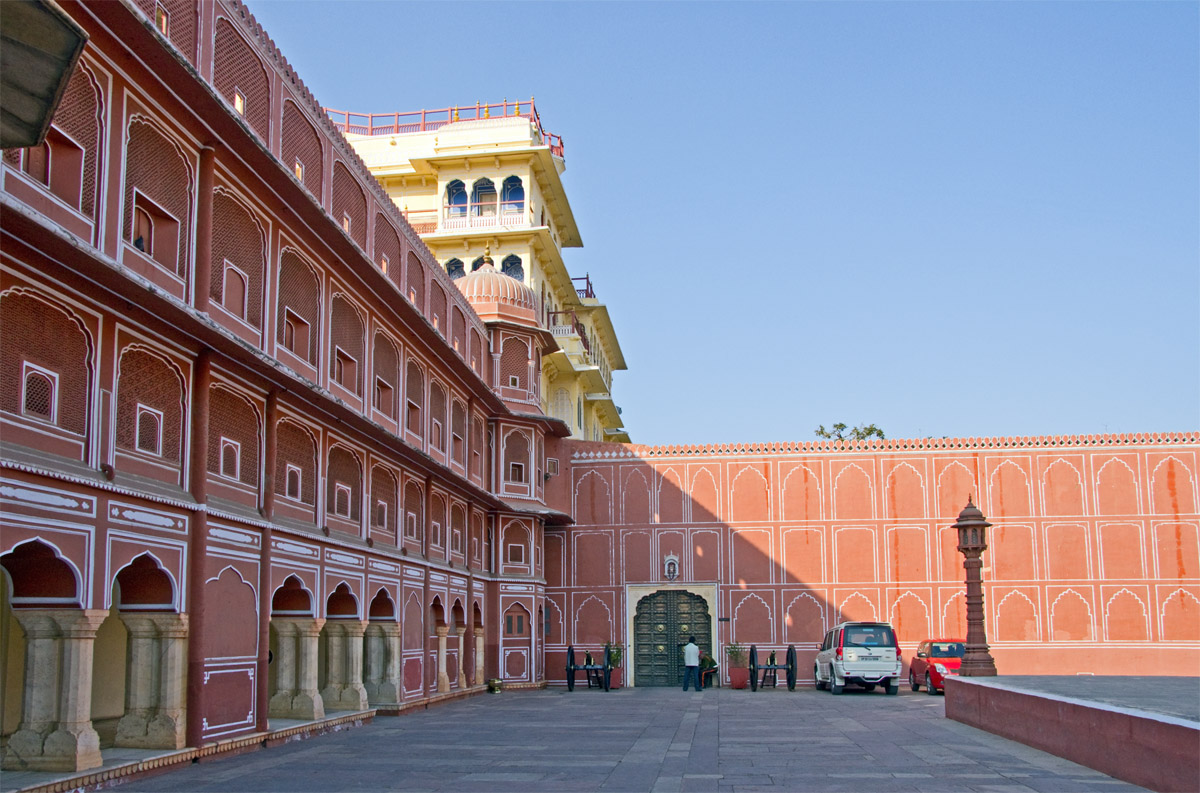 シティ・パレスはジャイプール旧市街の中心にあるヒンドゥーとイスラムの混交建築様式の宮殿.