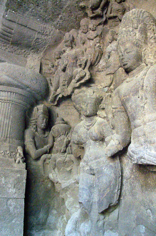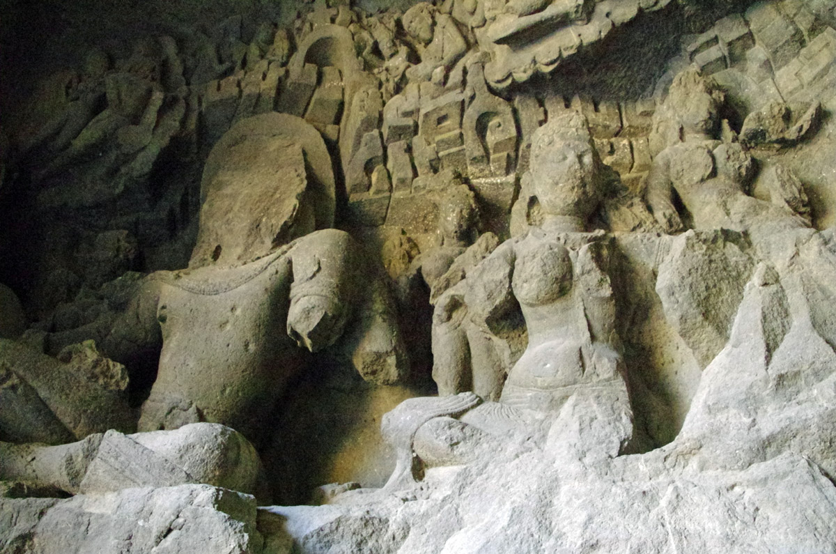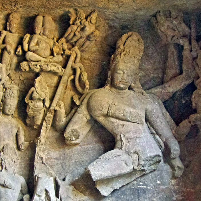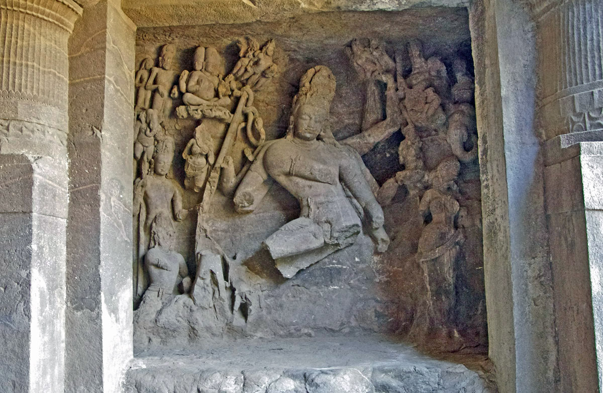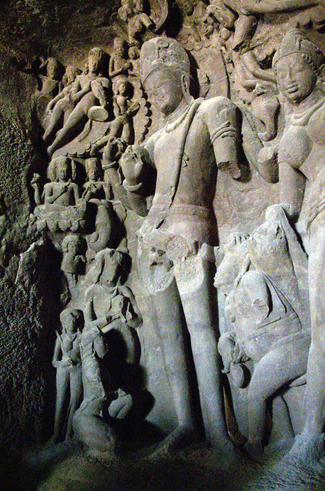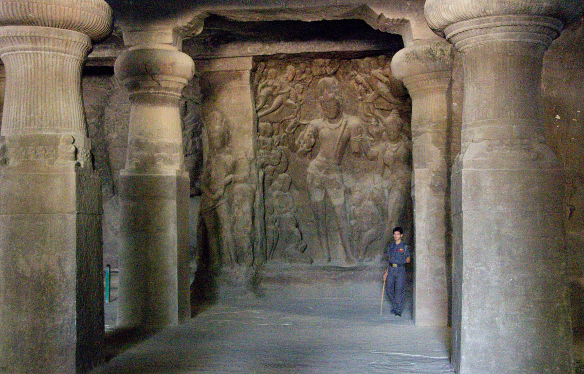 アラビア海の小島エレファンタ島に5〜8世紀に建設された7窟のヒンドゥー教の石窟寺院.