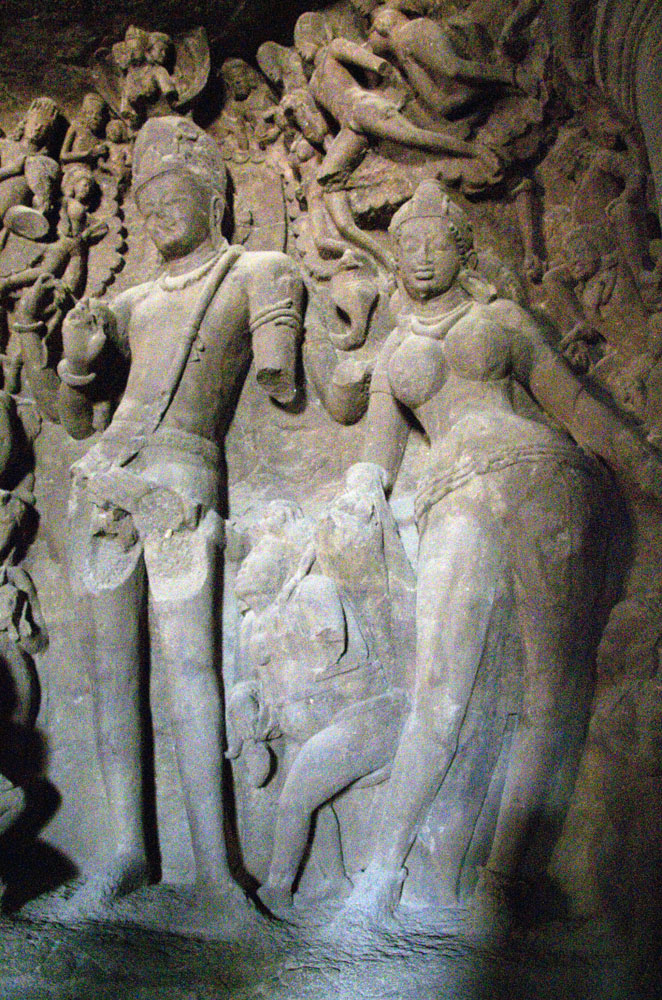 シヴァ神とその妻(右) 妻のきげんを取っている