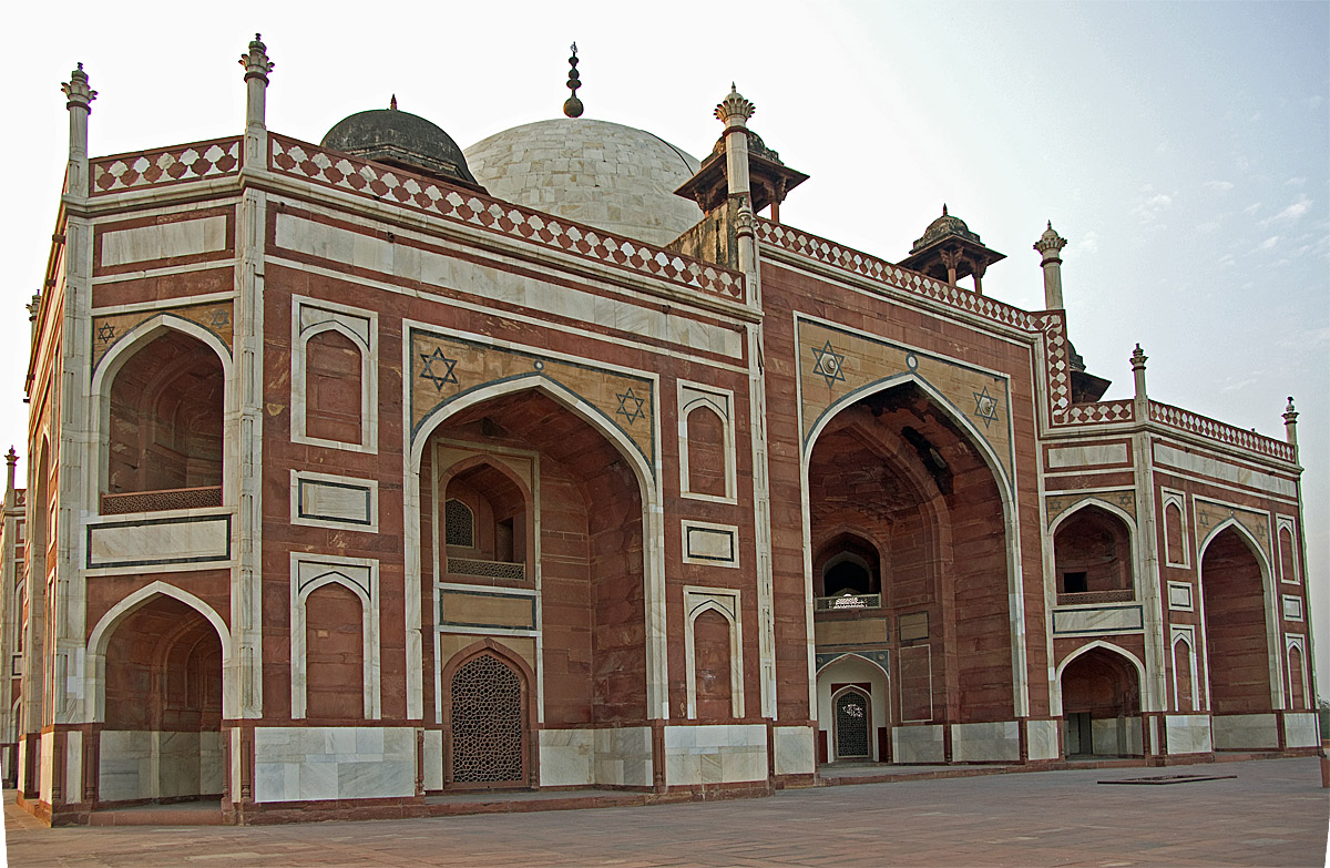 フマユーン帝はイスラム教徒だったが,壁面装飾にはユダヤ教やキリスト教などの多くの様式が施されている.イスラムのペルシャ文化とインド伝統の様式が融合されたこの霊廟から,ムガル建築という華麗な様式が生まれ,タージ・マハルに継承されて,その美は絶頂を極めた.廟の門などを飾る象嵌細工にはダビデの星*が見える.