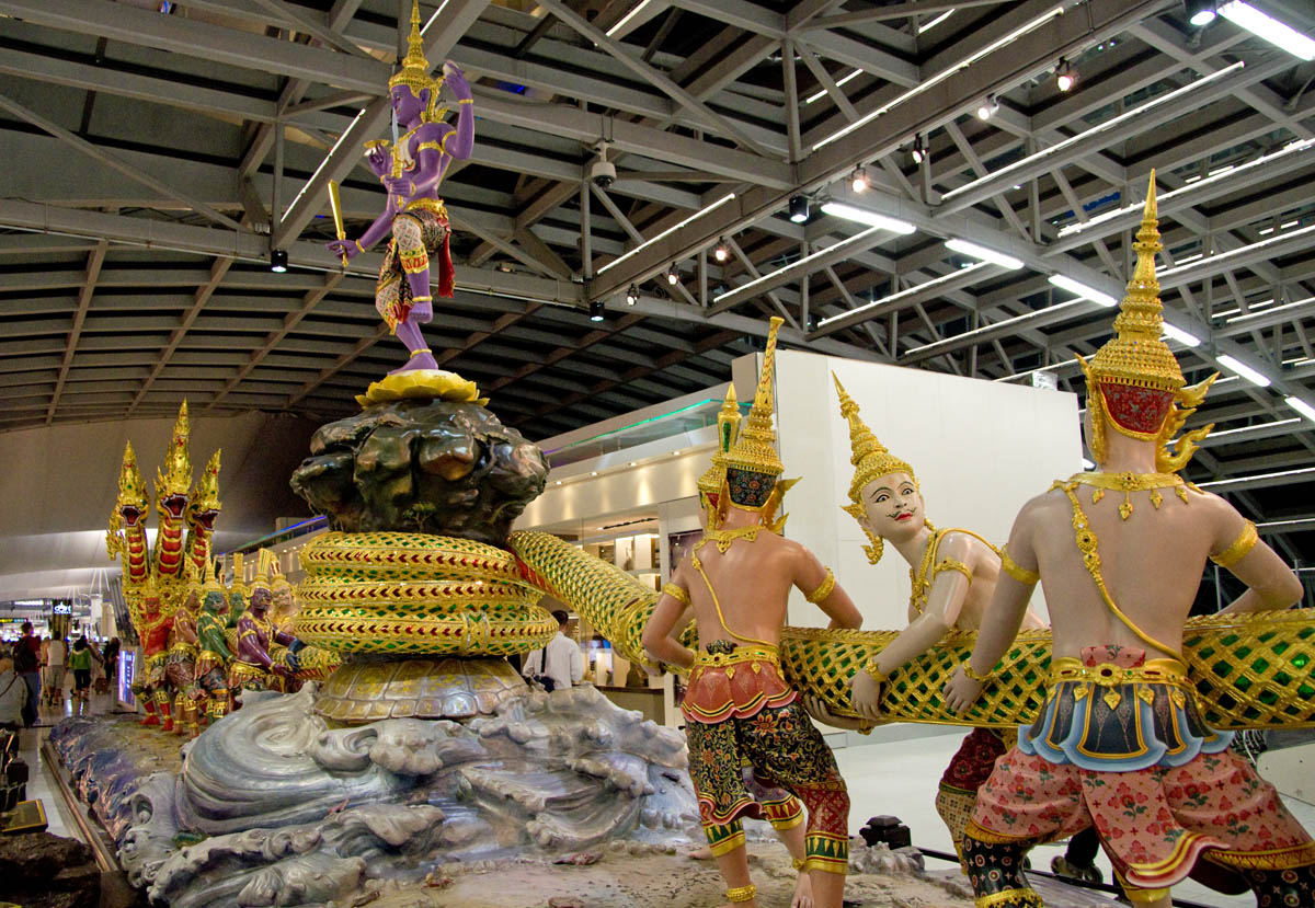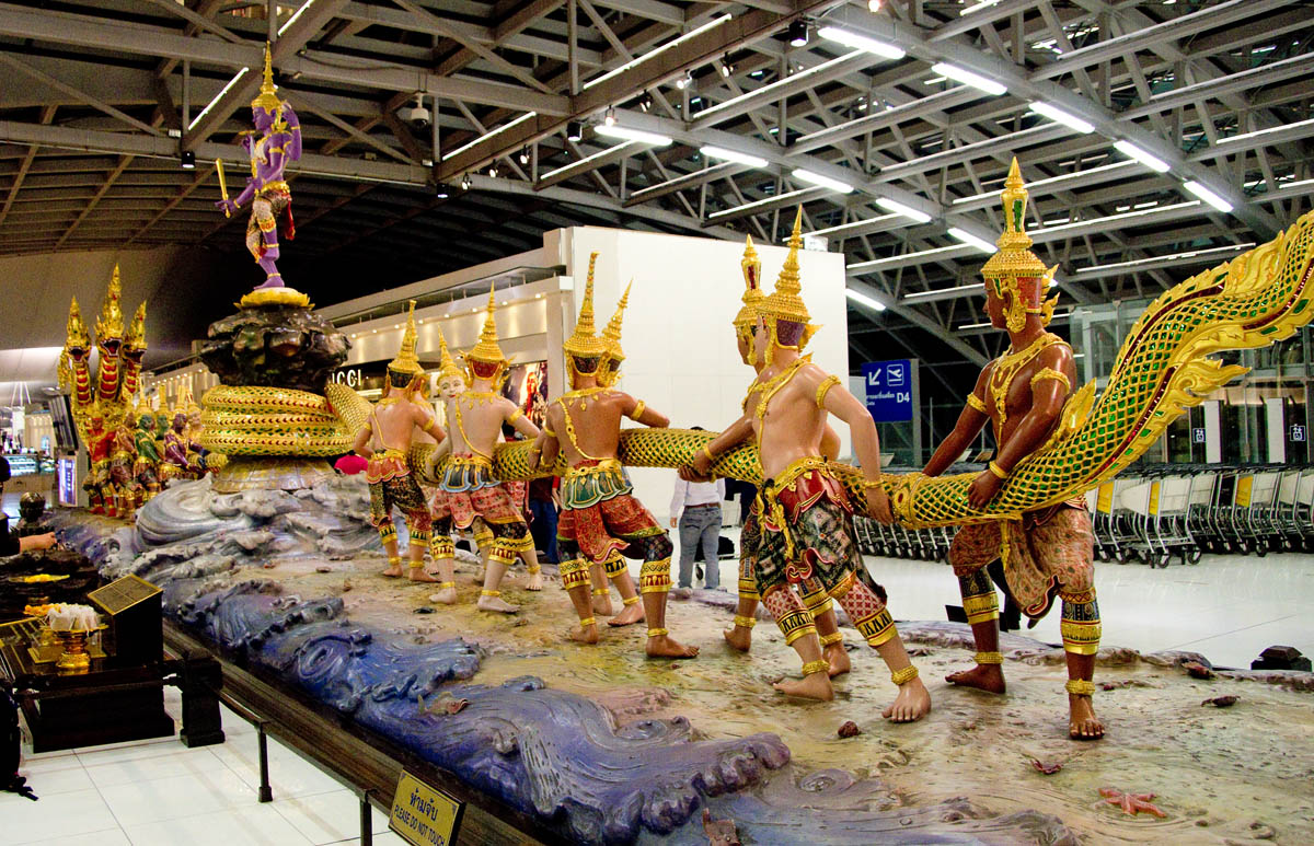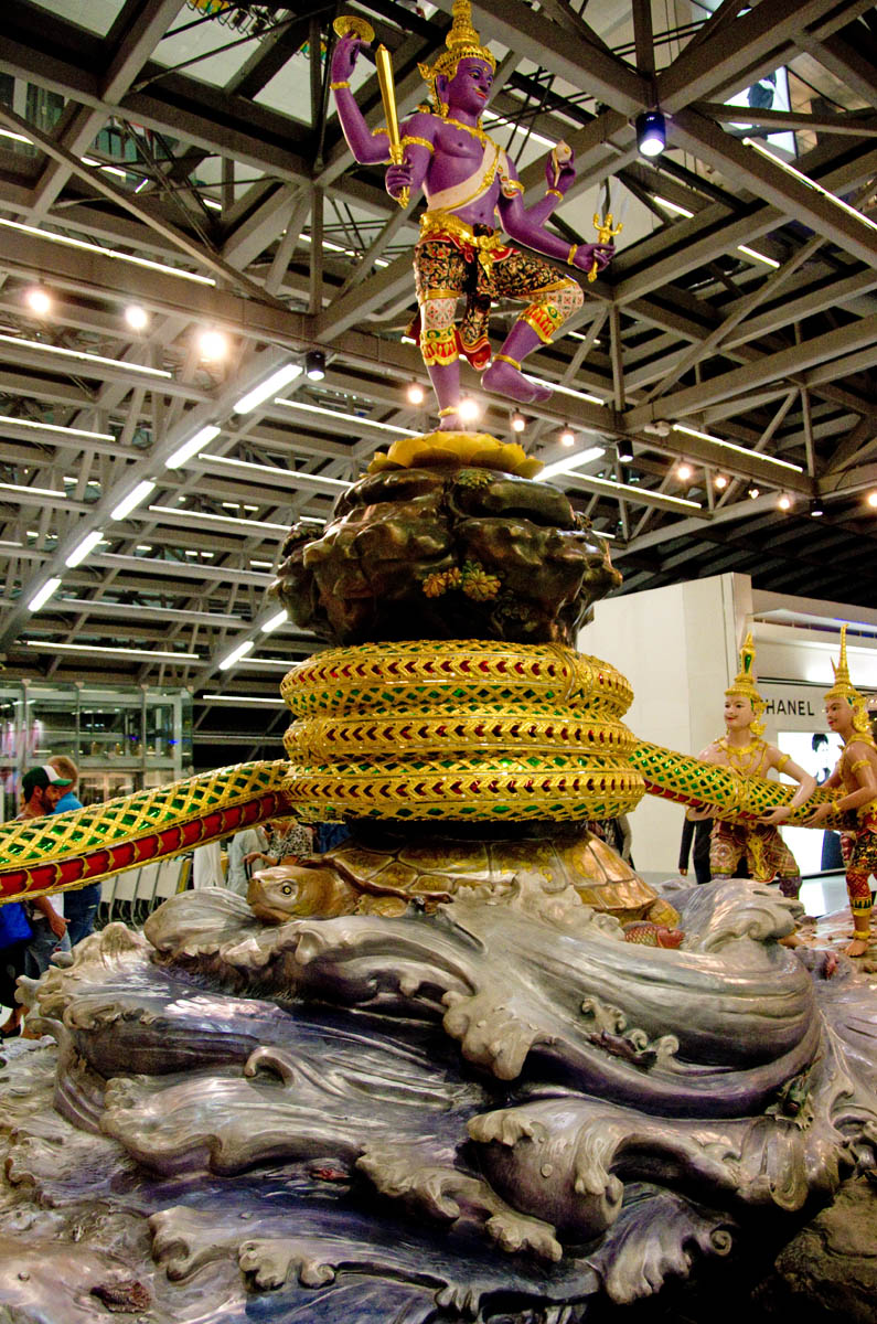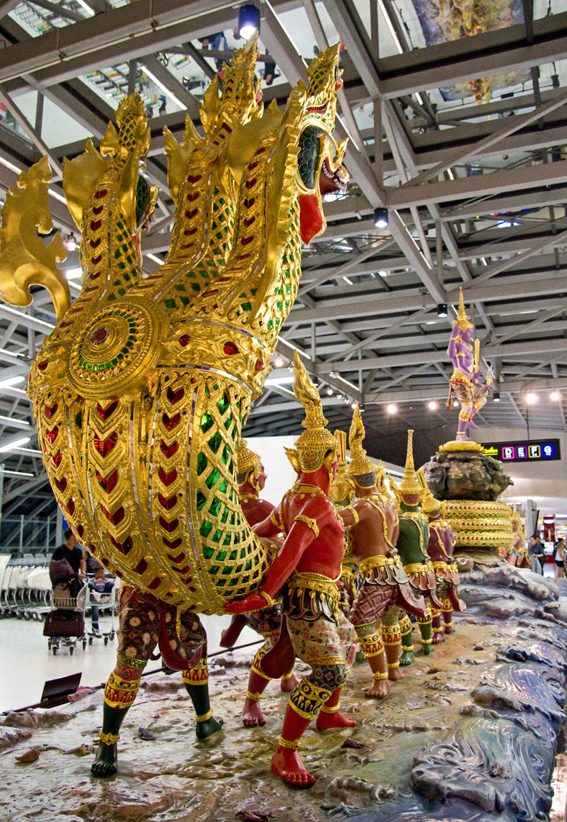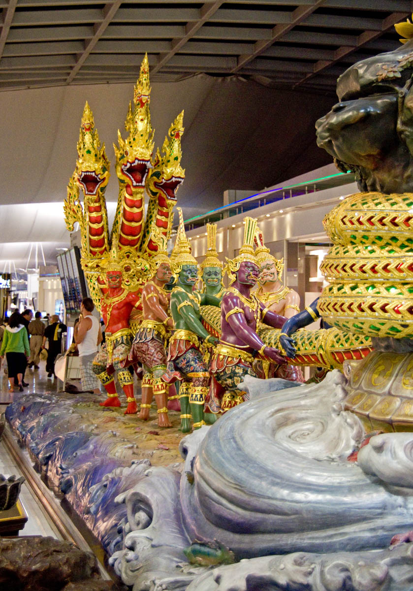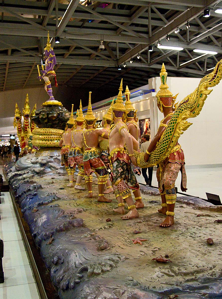 タイのスワンナプーム空港に乳海撹拌の天地創造の像があった。神話通りに再現されている。
