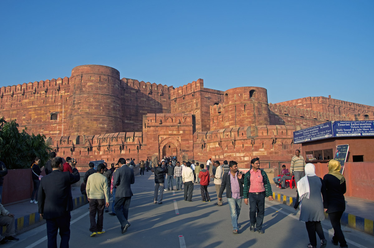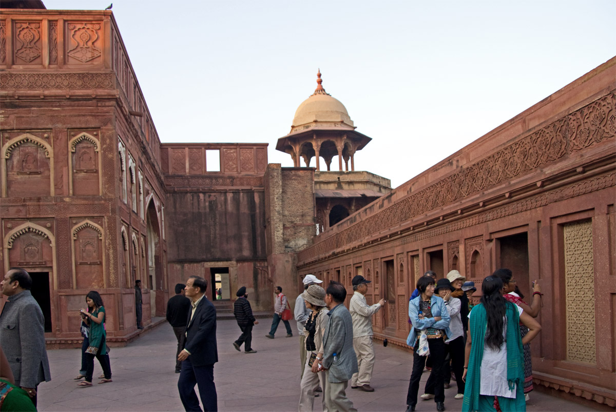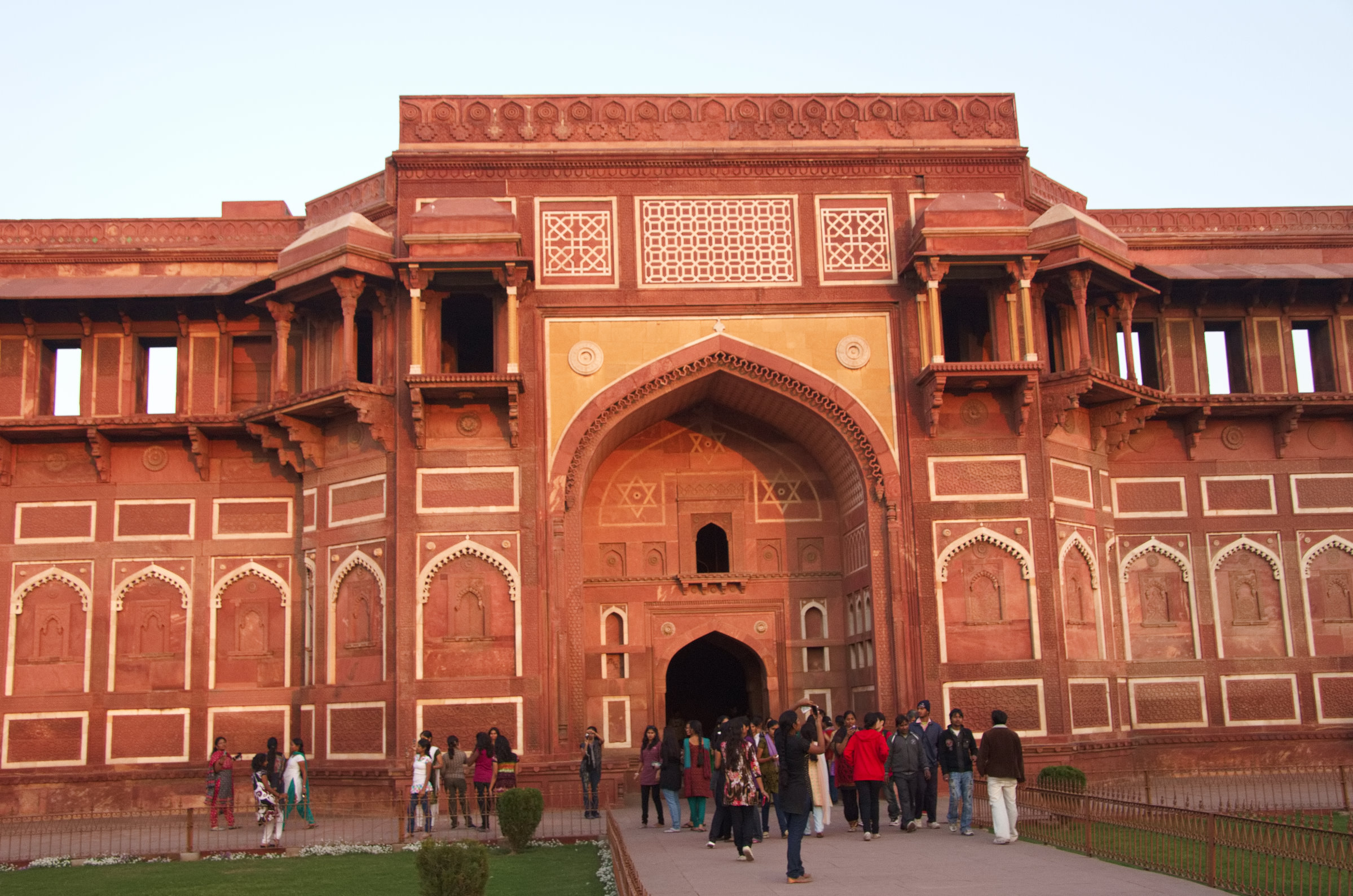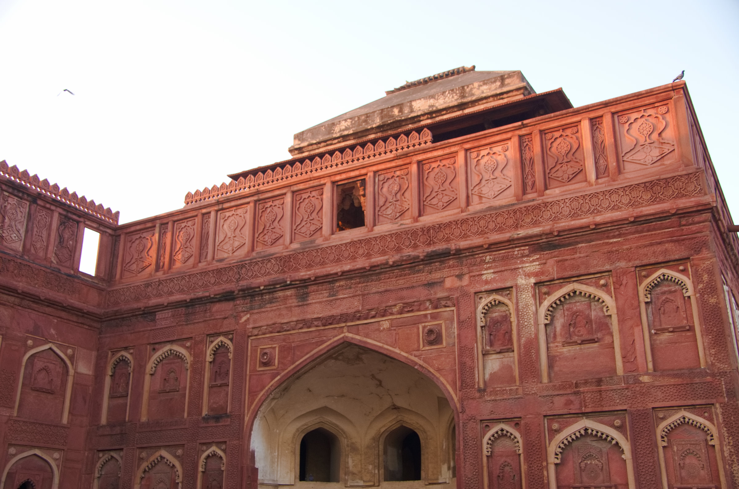 アーグラ城はヒンドゥーとイスラムの建築が融合したムガル帝国の代表的建物.