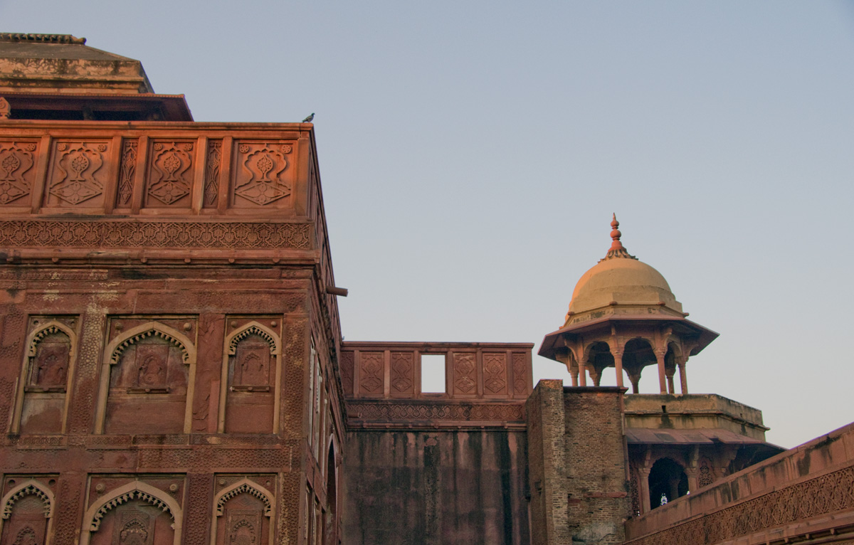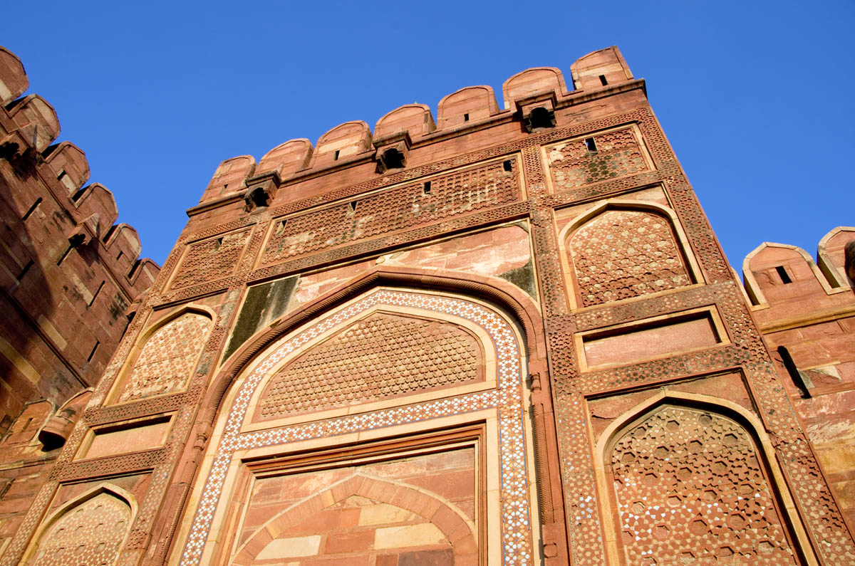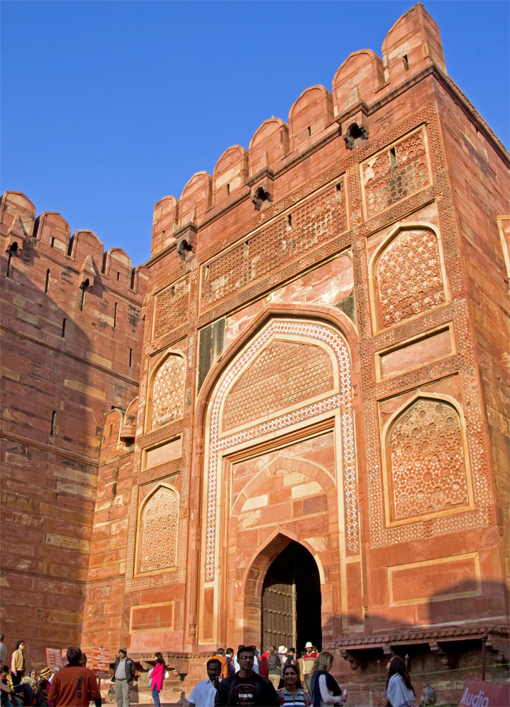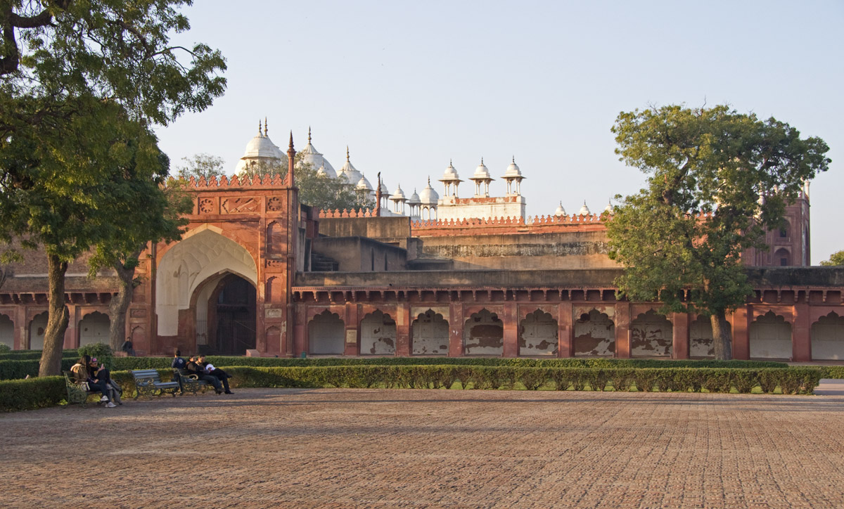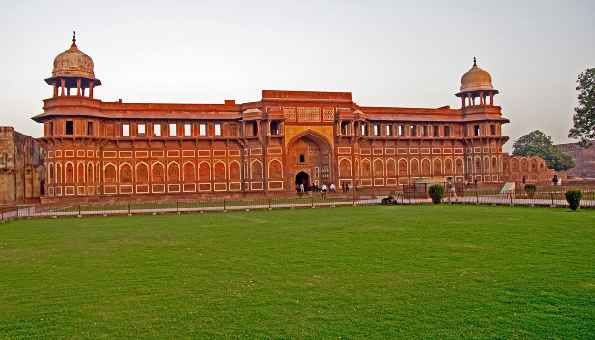 アーグラ城はヒンドゥーとイスラムの建築が融合したムガル帝国の代表的建物.