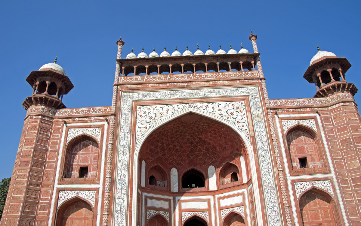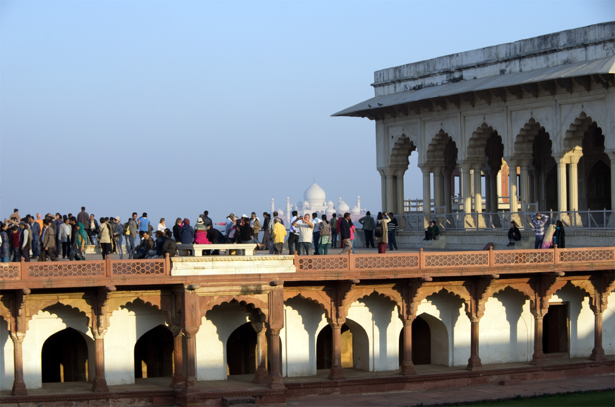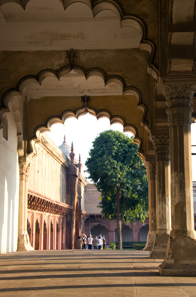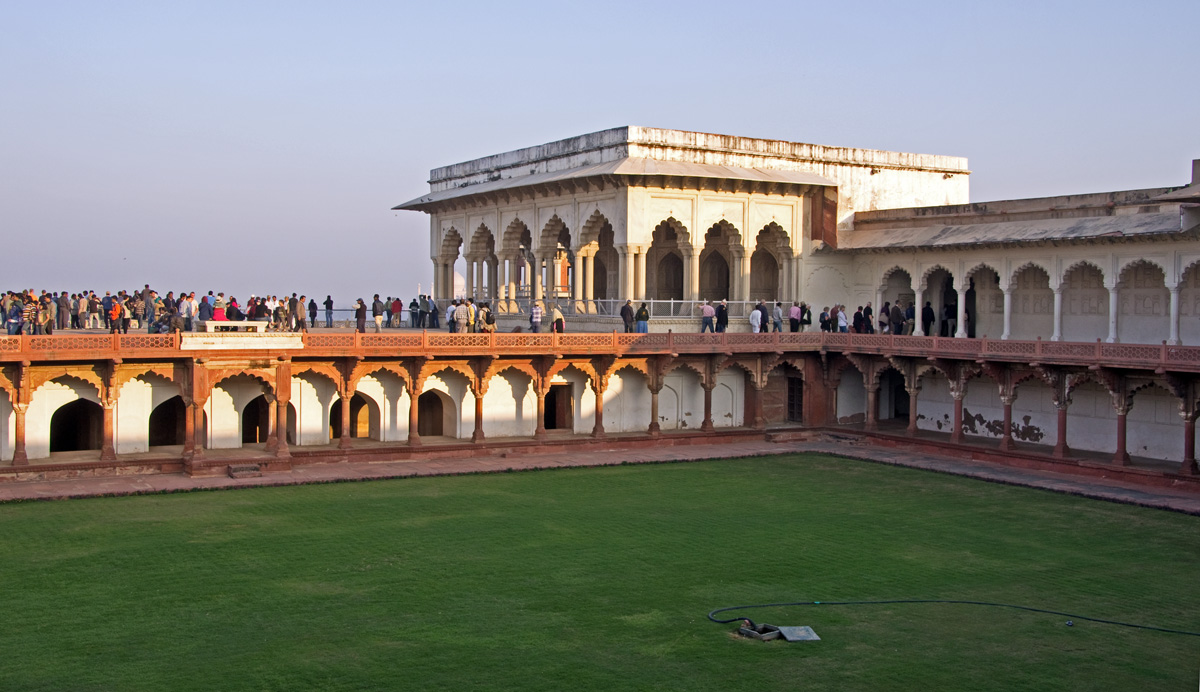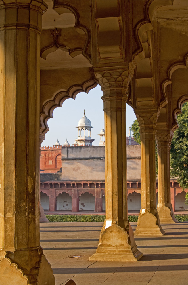 アーグラ城はヒンドゥーとイスラムの建築が融合したムガル帝国の代表的建物.