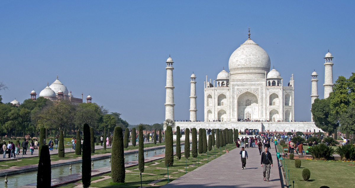 ムガル帝国第5代皇帝シャー・ジャハーンが1630年に亡くなった愛妃ムムターズ・マハルのために建設.