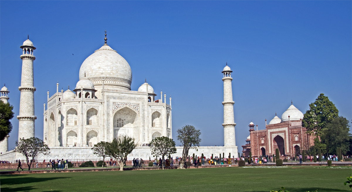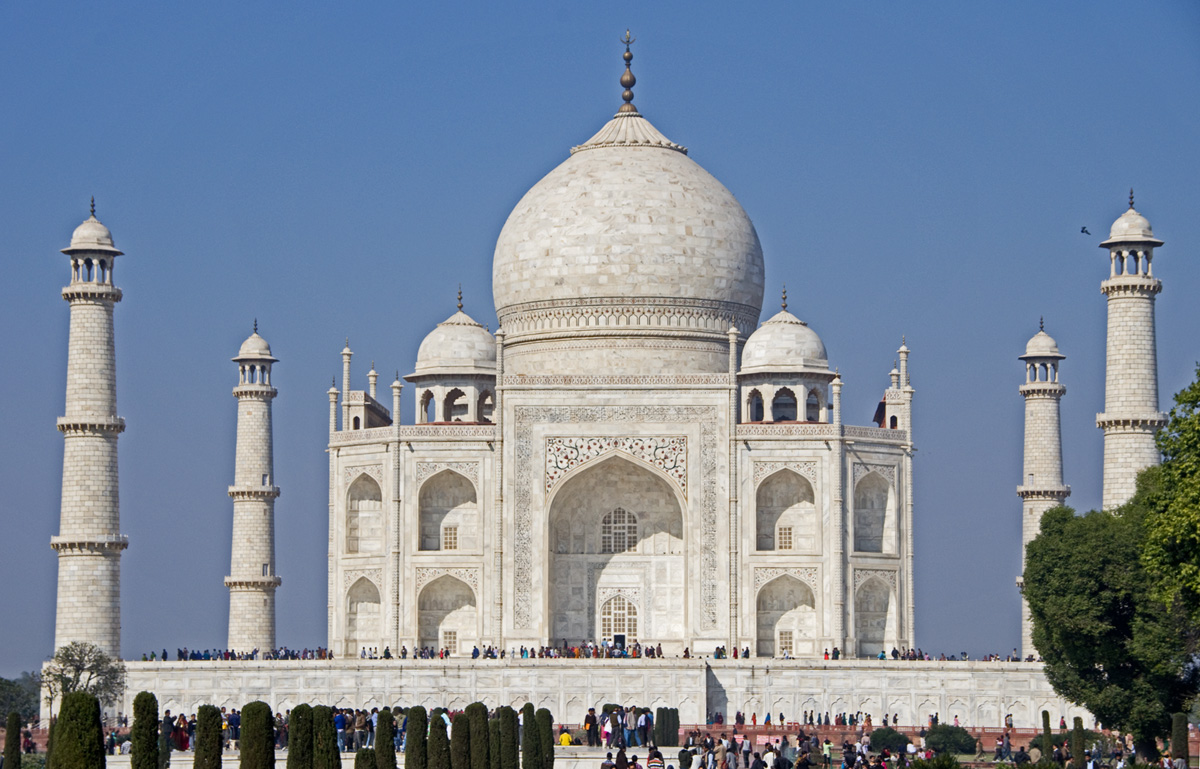 タージ・マハルは総大理石の墓廟で,インドのイスラーム文化の代表的建築である.