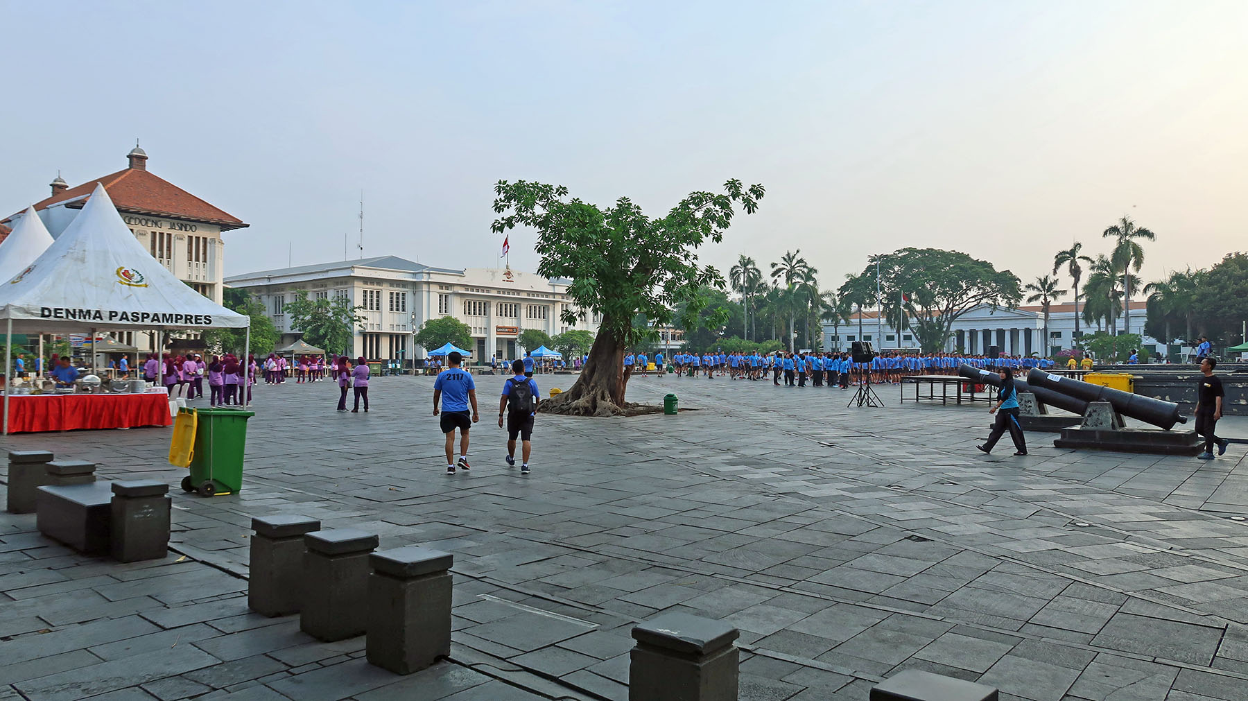 早朝のファタヒラ広場 右はジャカルタ歴史博物館