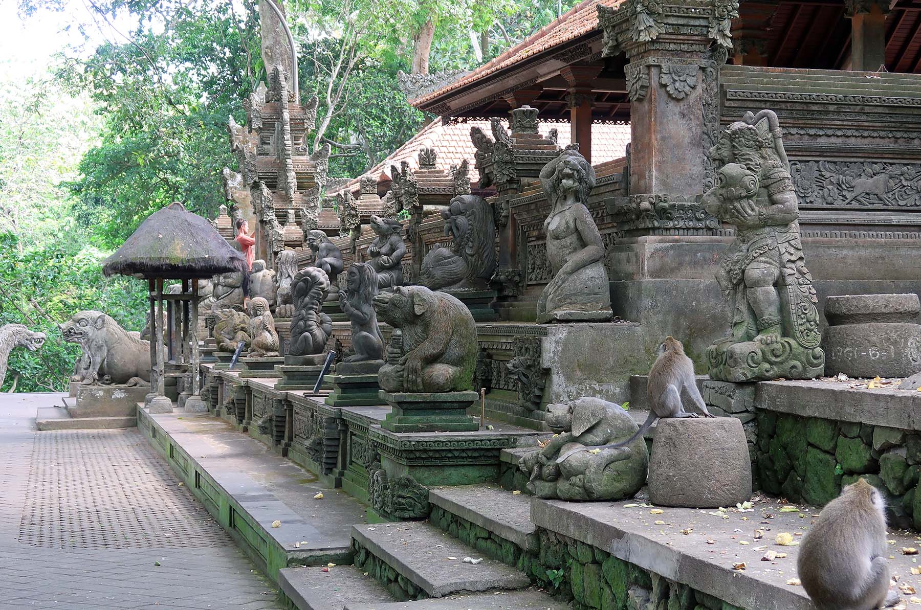 モンキーフォレストはバリ島ウブドの南、テガルパダン村内に位置する自然保護区の森の、12.5ヘクタールの敷地内にはおよそ700匹の猿が暮らしており、野生の猿たちを間近に見ることができます。また、中には14世紀半ばごろに建てられた3つのヒンズー教寺院があって、地元の人たちが参拝に来る神聖な場所でもあります。