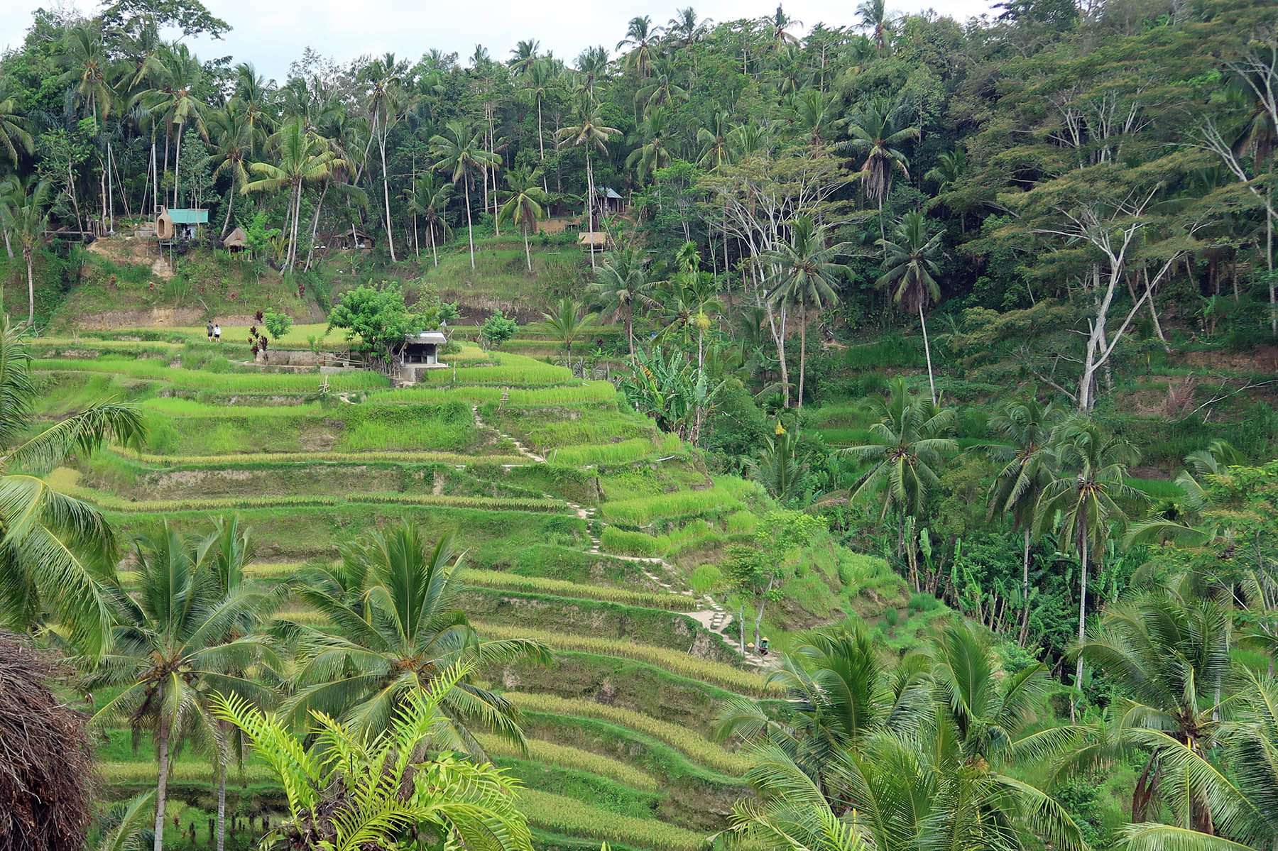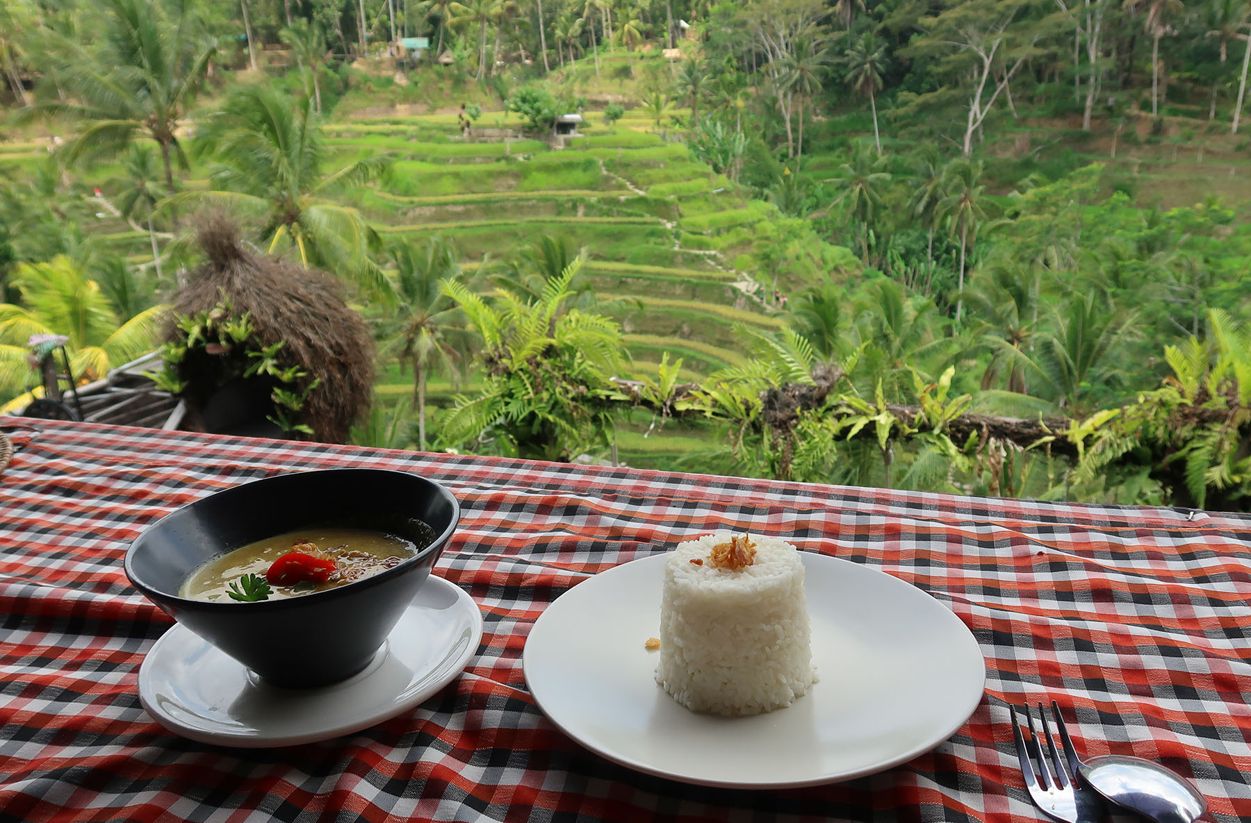 テガララン村(Desa Tegallalang)は、ウブドの北、8Kmくらいにある小さな村である。 ライステラス(棚田)はスバックと呼ばれる9世紀以来のバリの水利組織によってできている。これはバトール火山の火山岩によりできた地下水通路が山麓に多くの湧き水をもたらし、ライテラスが作られた。これは2012年に世界遺産に登録されている。 ライステラスを望む道路沿いには何軒ものカフェやレストランが営業しており、どのカフェもオープンエアーの作りで、美しい棚田を渡る風を感じながら、ランチやティータイムを楽しむことができる。