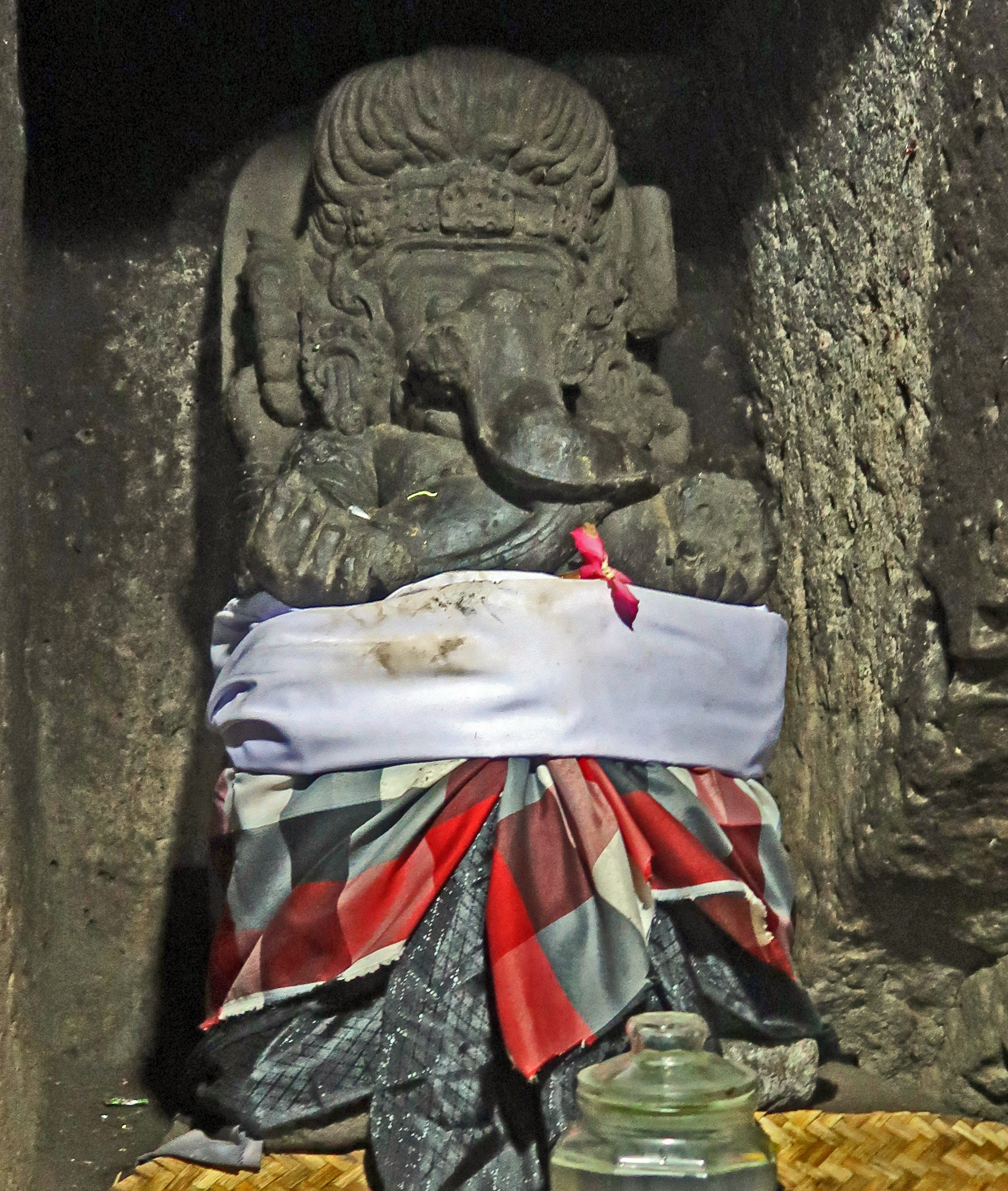 遺跡の名前ゴアガジャ(Goa Gajah)とは、「ゴア(Goa)=洞窟」「ガジャ(Gajah)=象」で「象の洞窟」と言う意味。