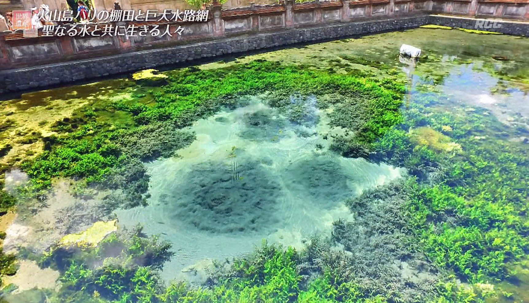 寺は聖なる湧き水の場所に建てられた 湧き水は沐浴に使われ、ライテラスに供給される。(TV放送から)
