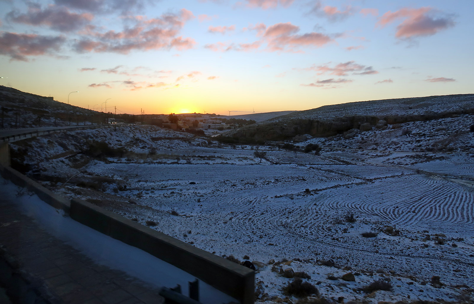 ペロラから死海に戻る高地は雪化粧