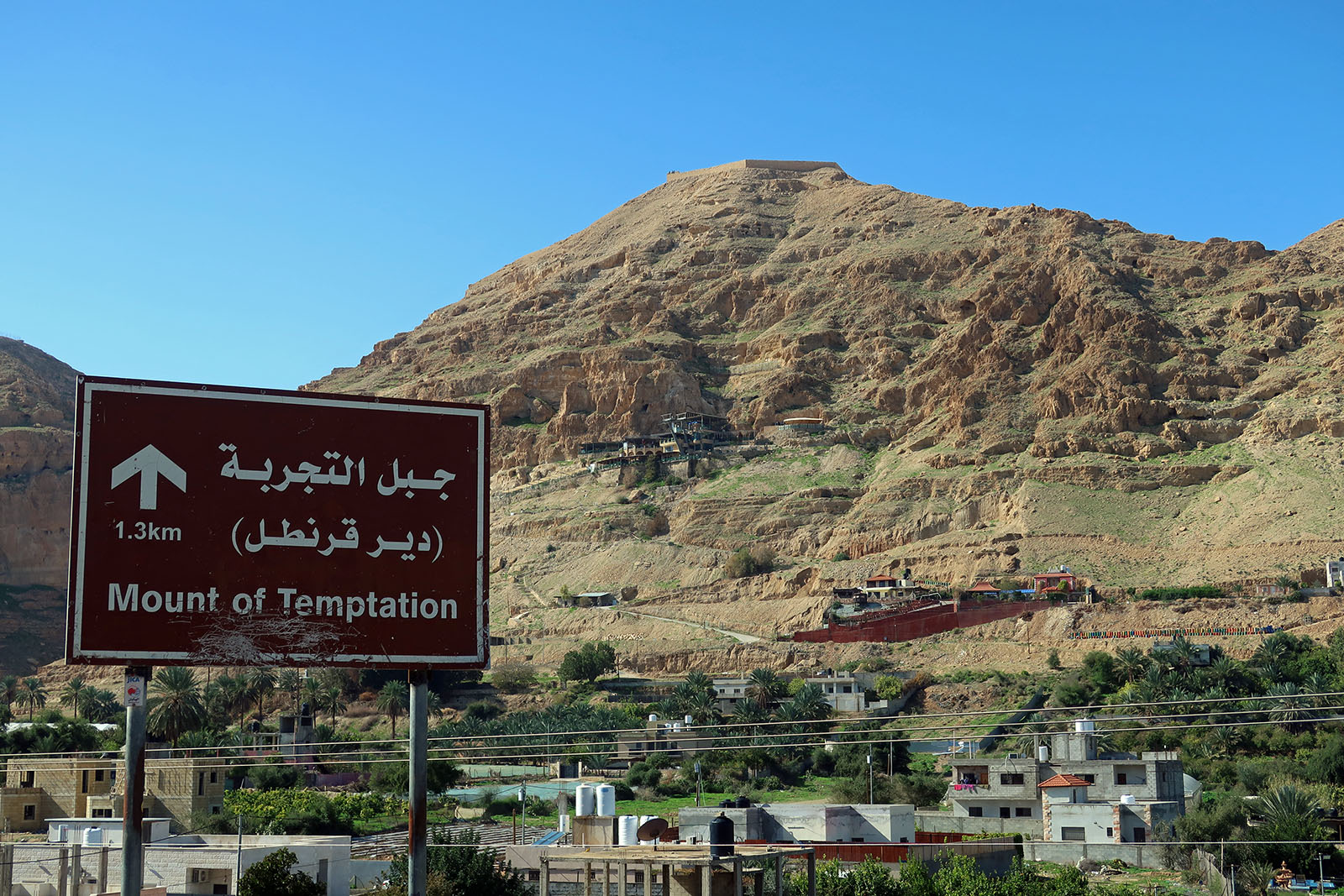 国境を越えイスラエルのエリコ 誘惑の山