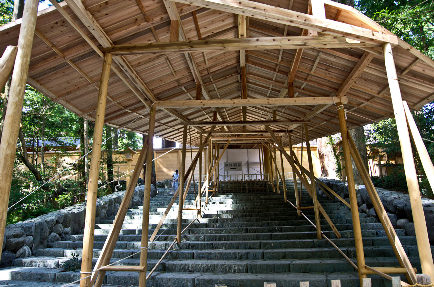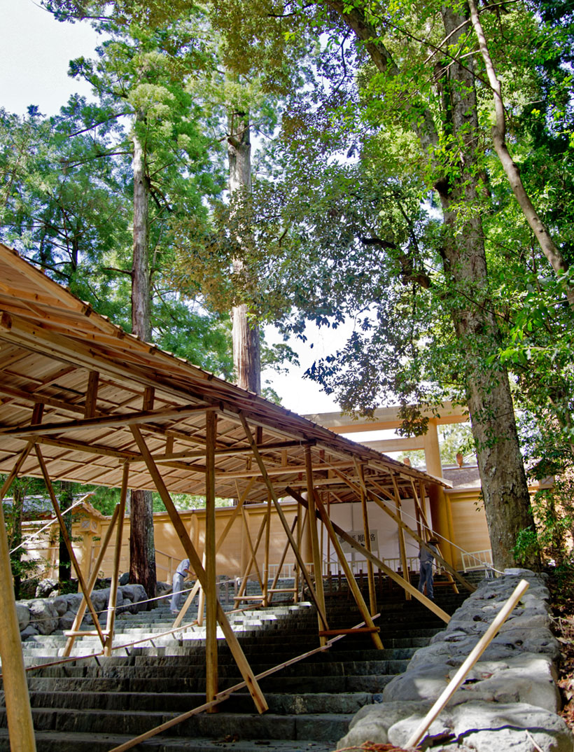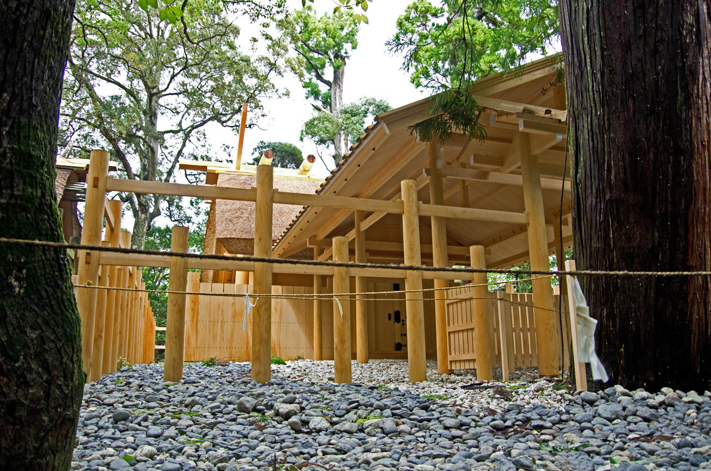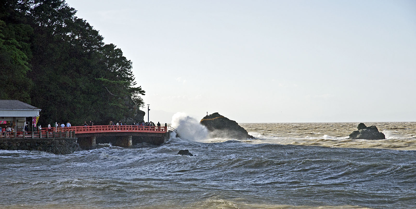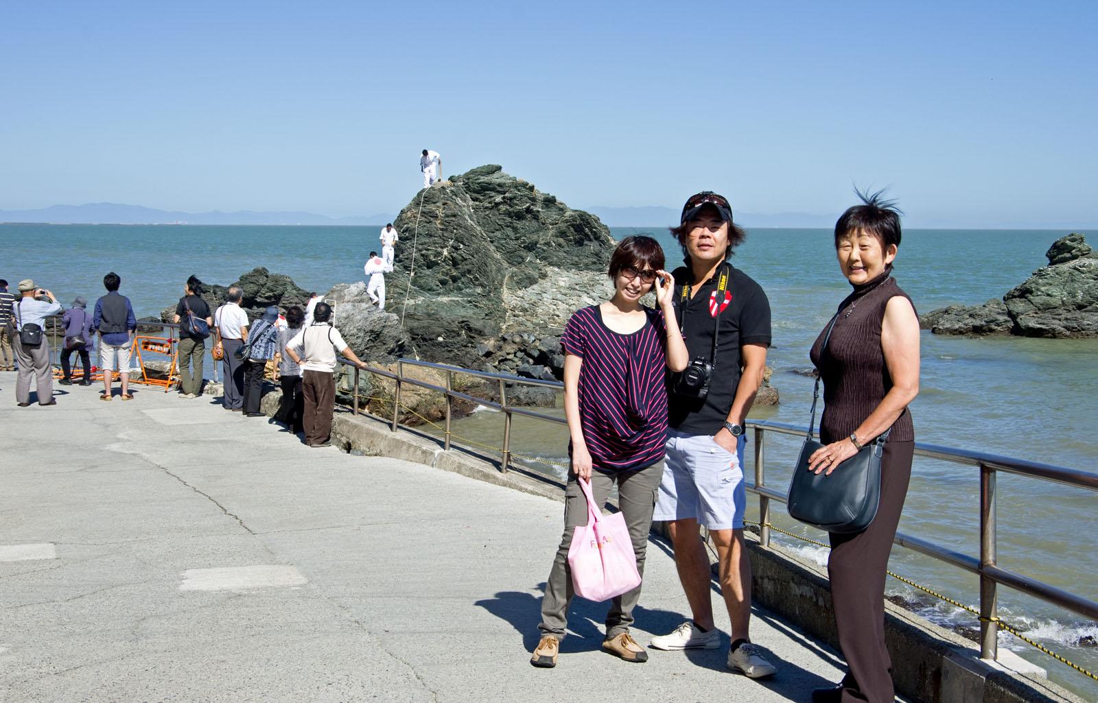 前日の台風の荒波で夫婦岩の縄が切れていた