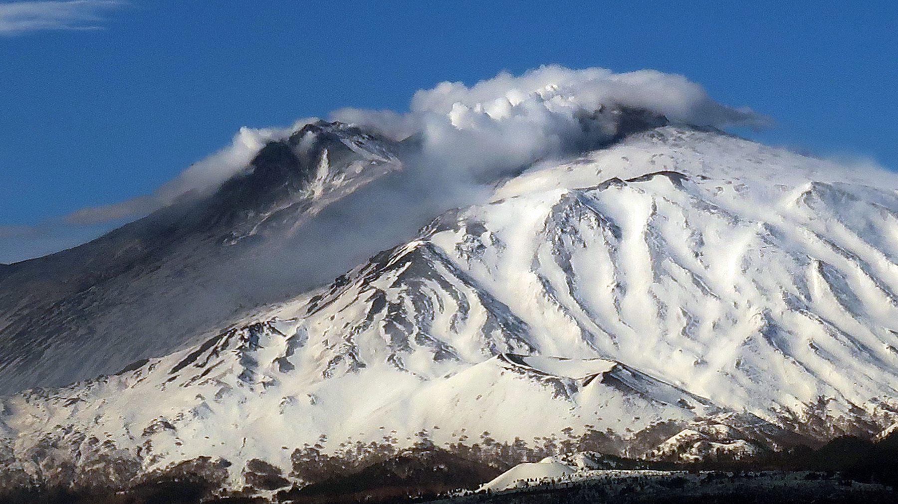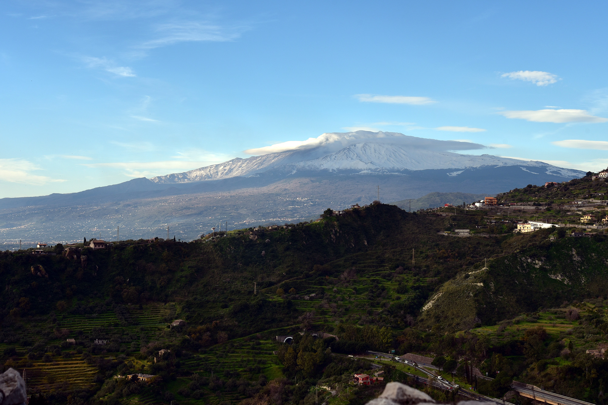 「エトナ山」は標高3323mのヨーロッパ最大の活火山。常に噴煙を上げており、2,3年に一度大きな噴火を起こしている。世界自然遺産(2013年に登録)