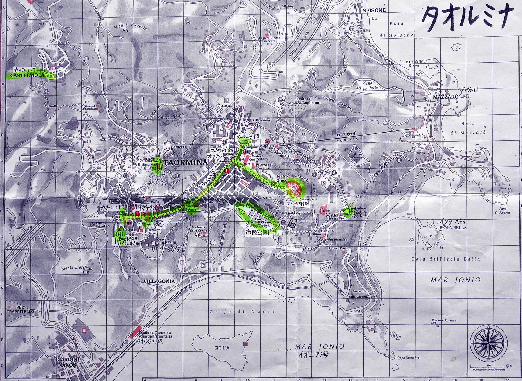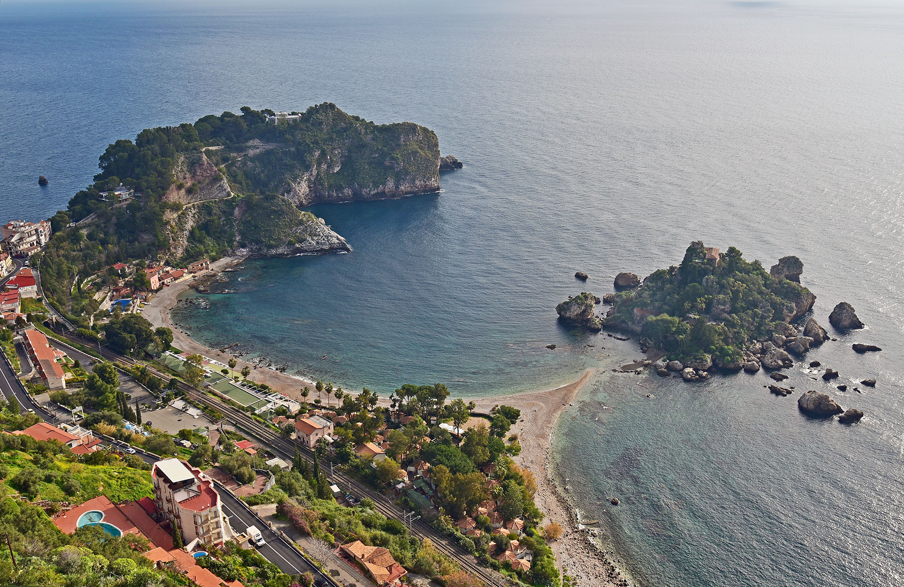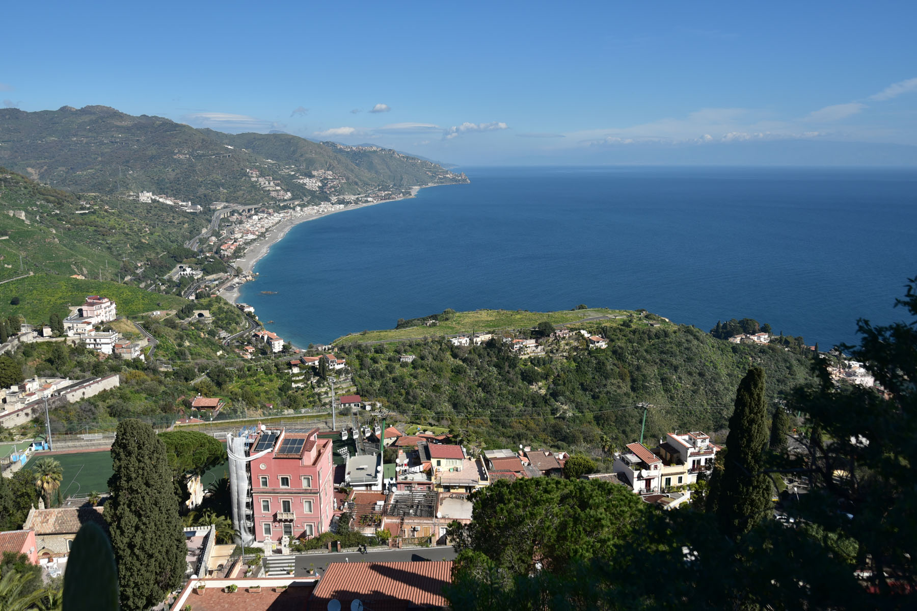 「タオルミナ」はBC5世紀にギリシャ人によりタロウ山の高台に建設され、シチリアの交易拠点として栄えた。現在は人気の観光・リゾート地であり、映画「グランブルー」のロケ地としても知られる。