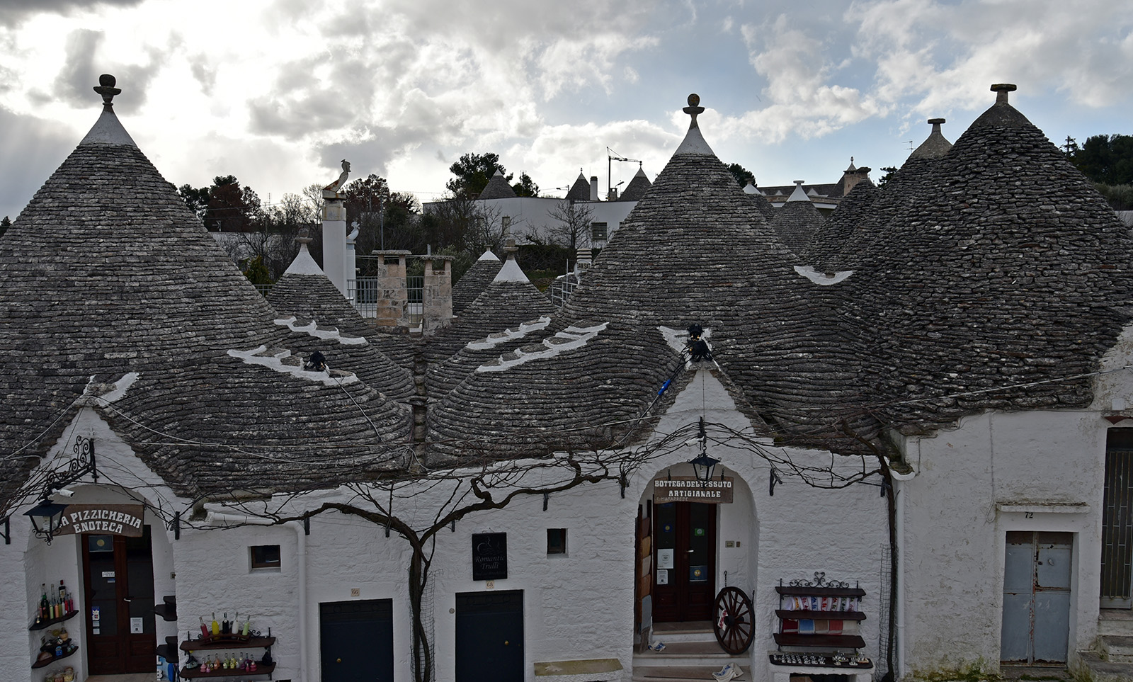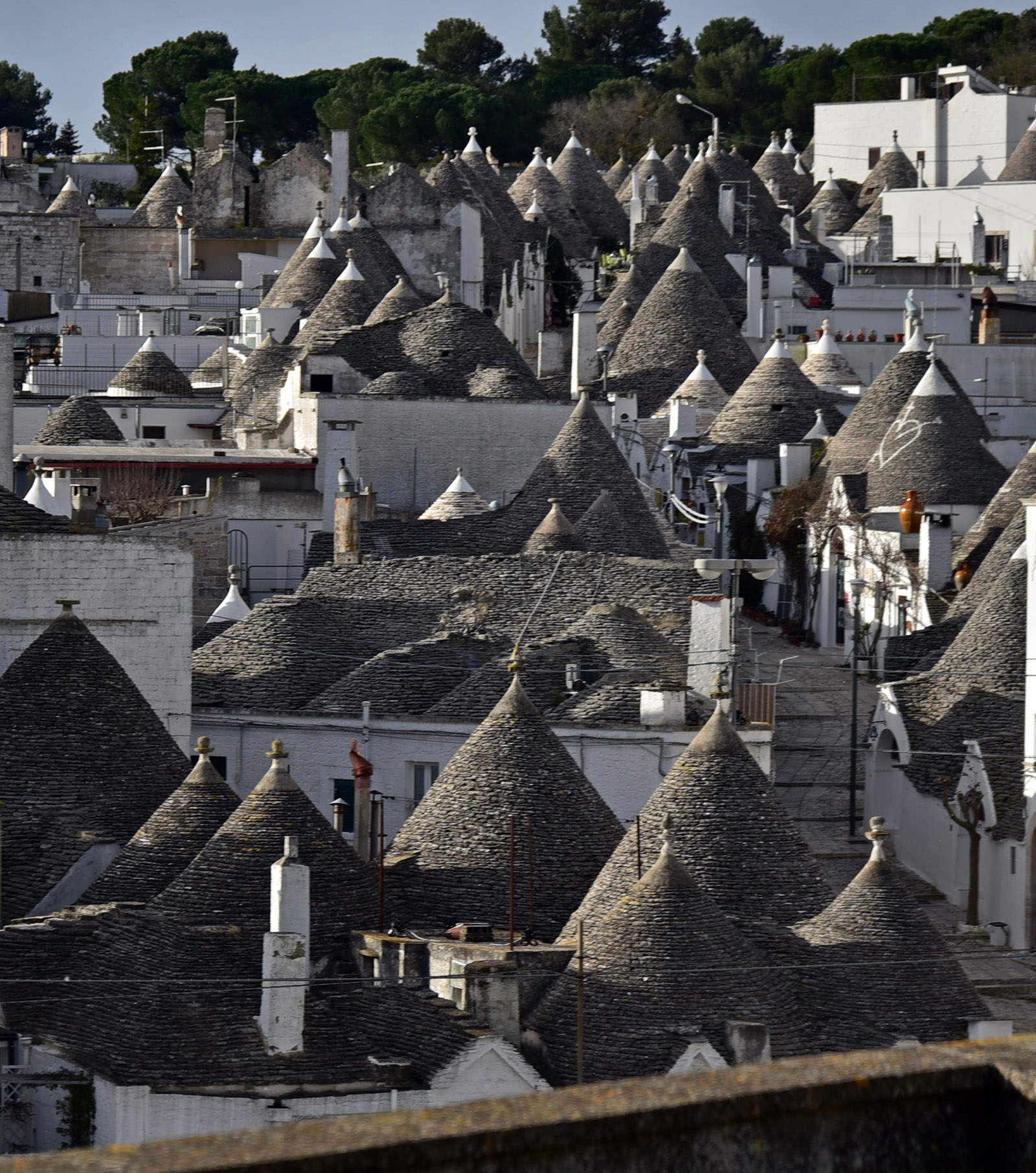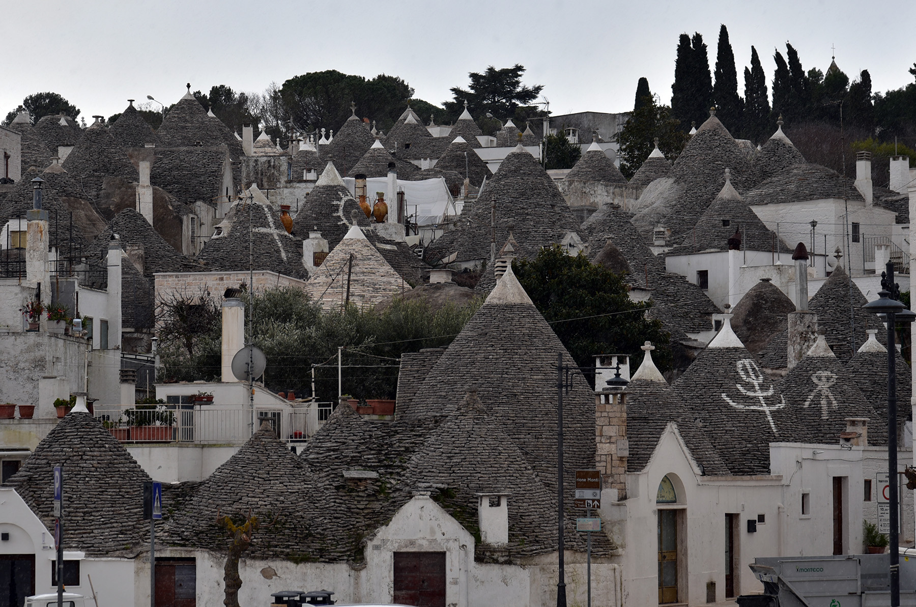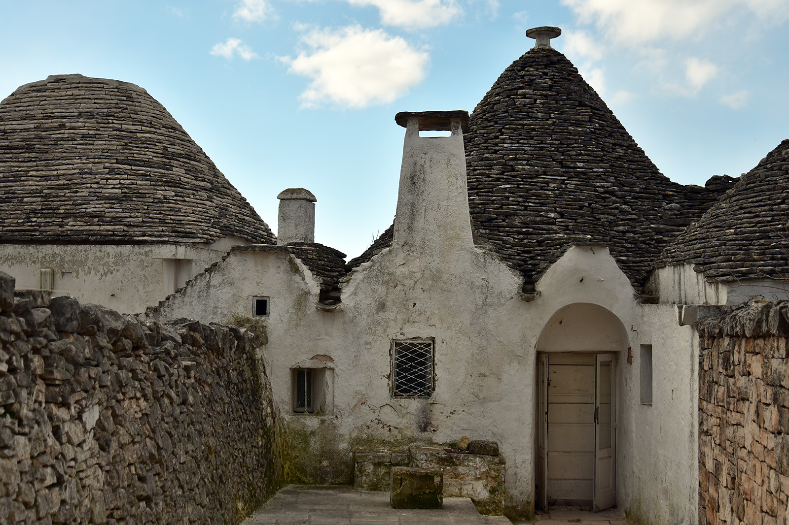 アルベロベッロは17世紀ごろから建築の始まった円錐形の石の屋根と白い石の壁が特長的なトゥルッリの街並みで有名。モンティ地区は商業地区で、ショップ、レストランがある。 アイア・ピッコラ地区は住宅がある。1996年に世界遺産登録。