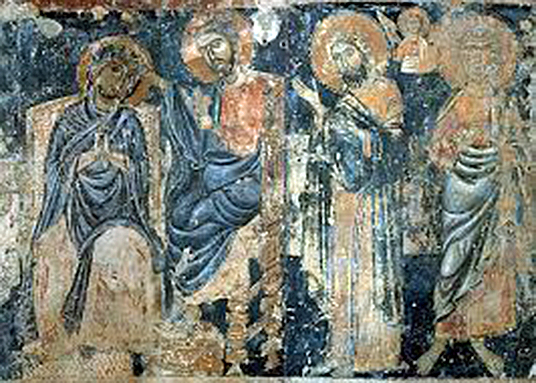 教会の説明 と 内部の図面(フレスコ画の配置)