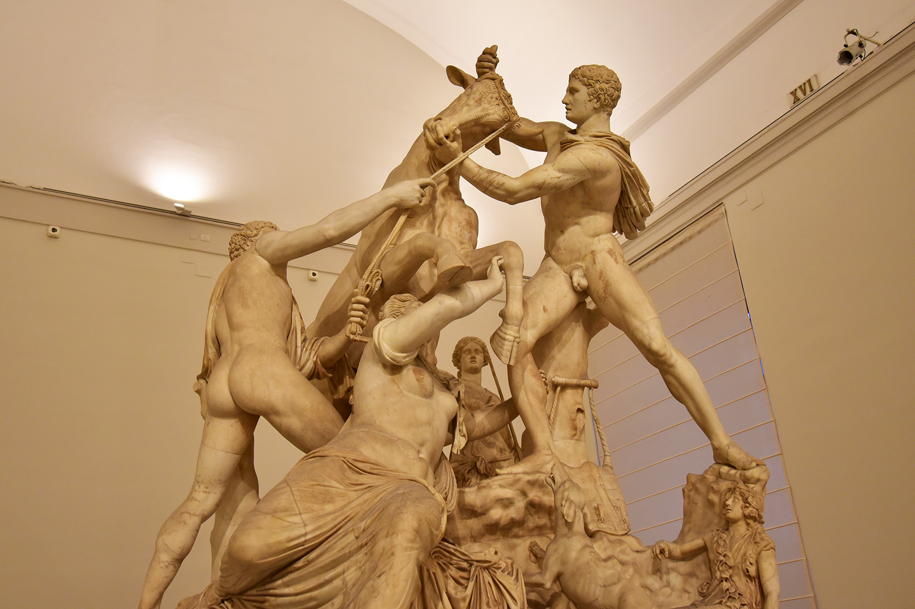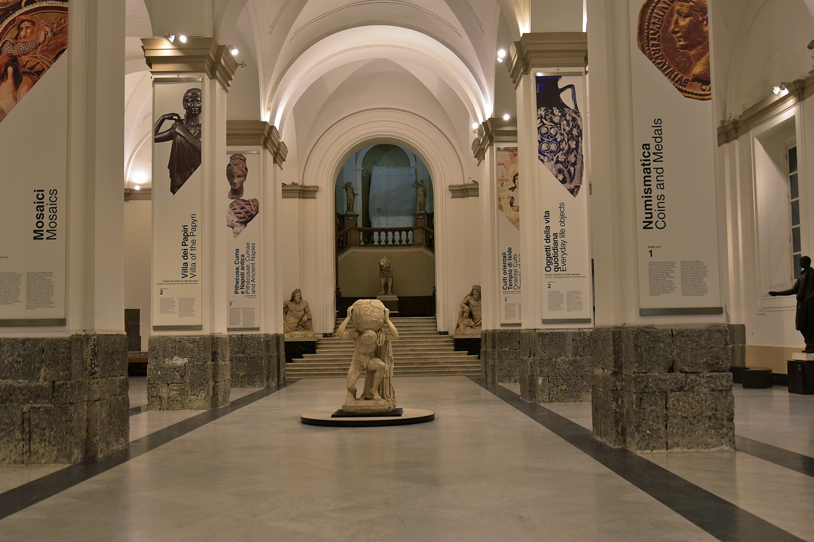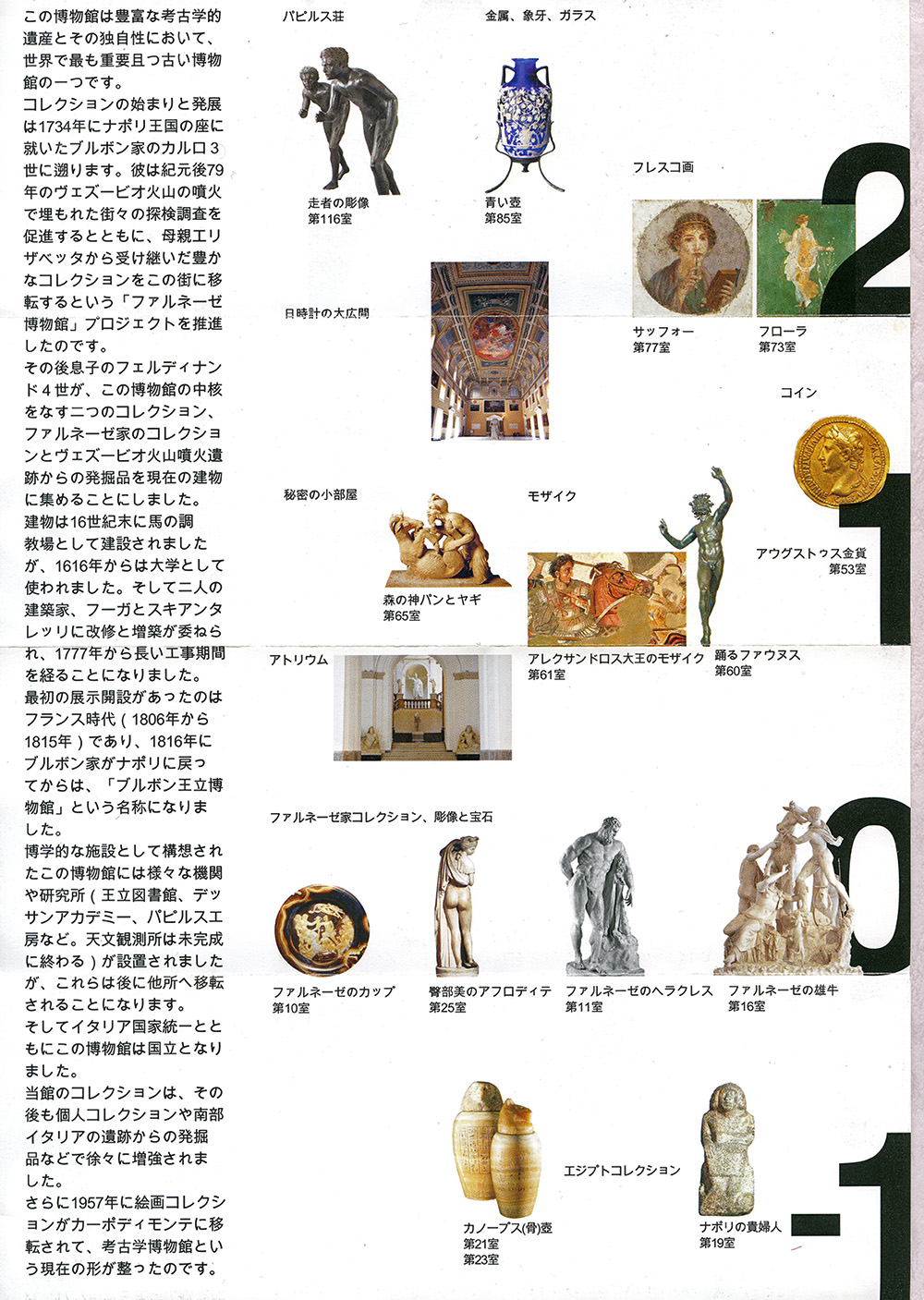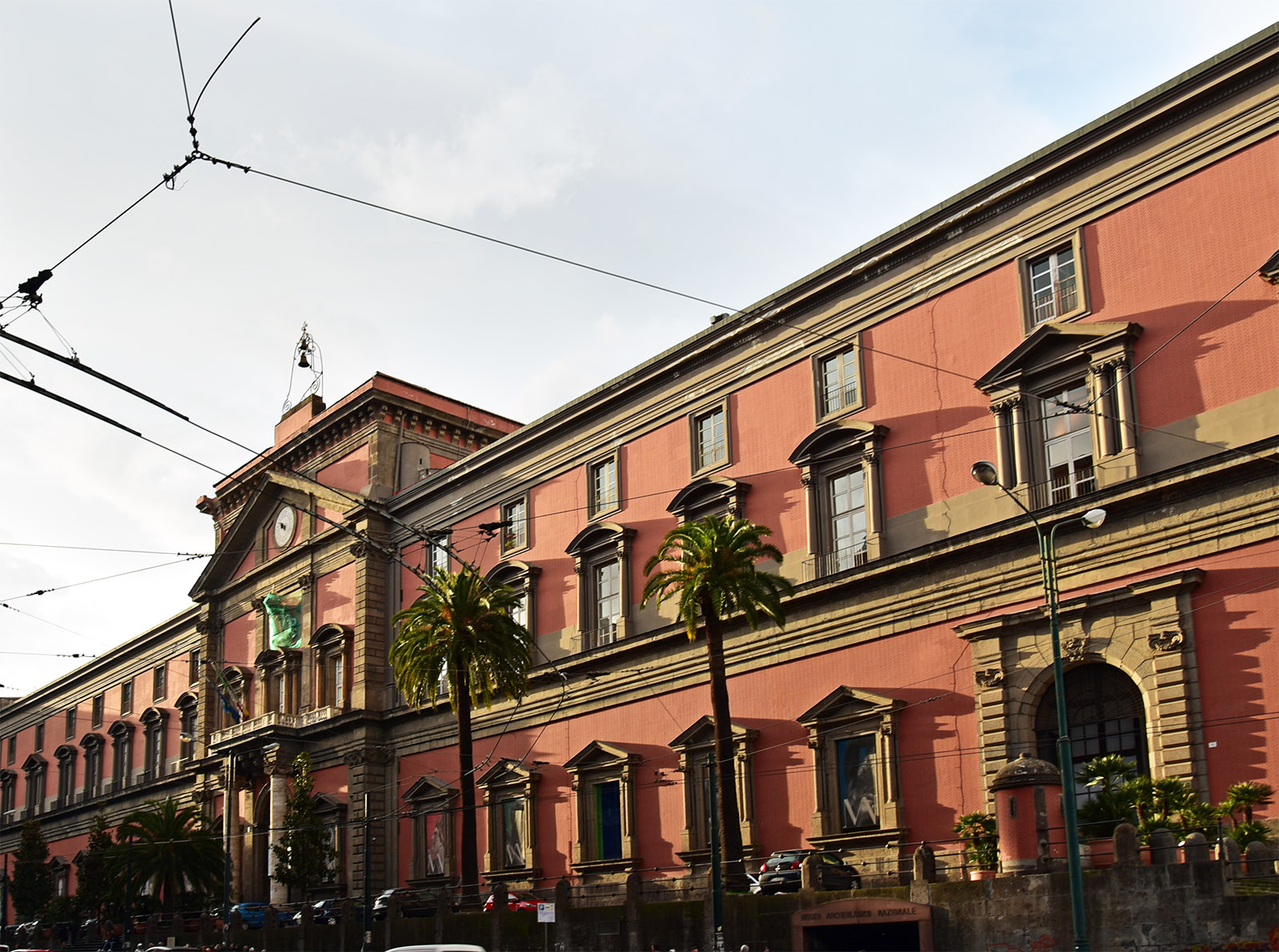 歴史; 1759年、ナポリ王フェルディナンド4世は、受け継いだ膨大な数の美術品、出土品を、保存、展示する博物館を実現するために、16世紀に騎兵兵舎として建てられたストゥディ館の改装に着手しました。フランス革命やナポレオンの支配などにより、改装は何度も中断をされたが、1816年に「ナポリ王立ブルボン家博物館」として完成しました。その後、1861年のイタリア王国成立に伴い、「ナポリ国立考古学博物館」と名前を変え、現在に至っている。 |