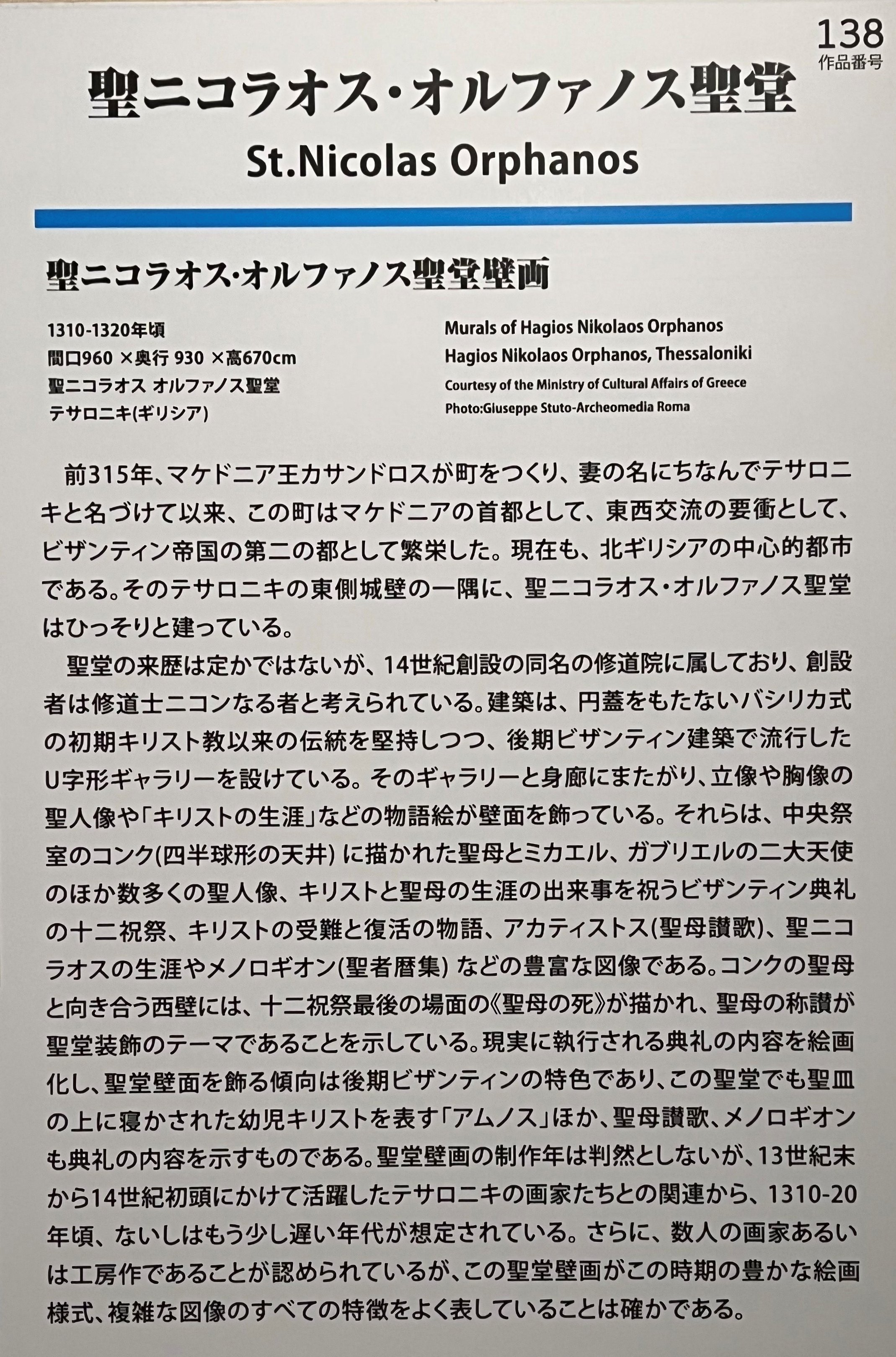 聖ニコラオス・オルファノフ聖堂 ギリシャ テサロニキ 1310ー1320年