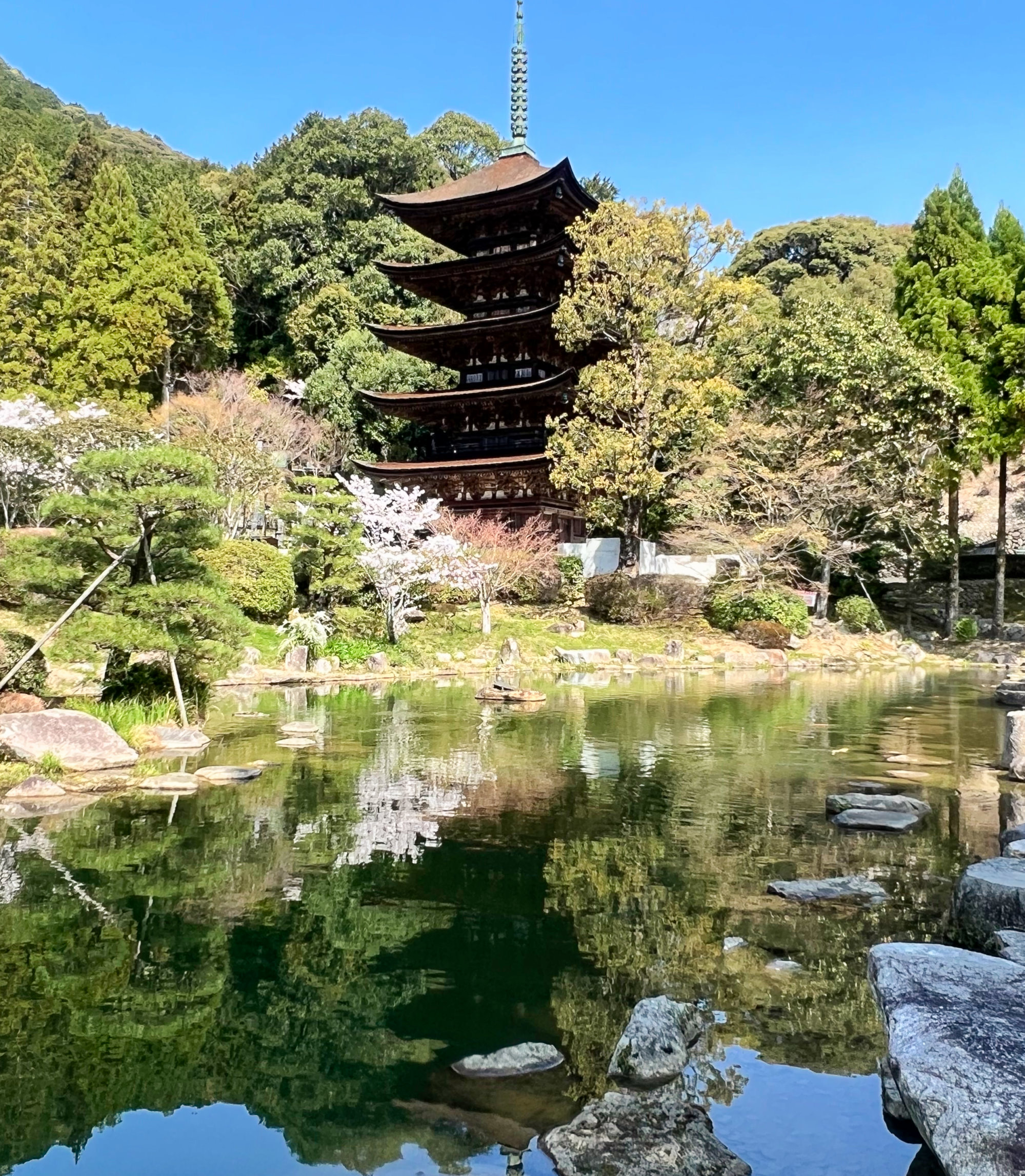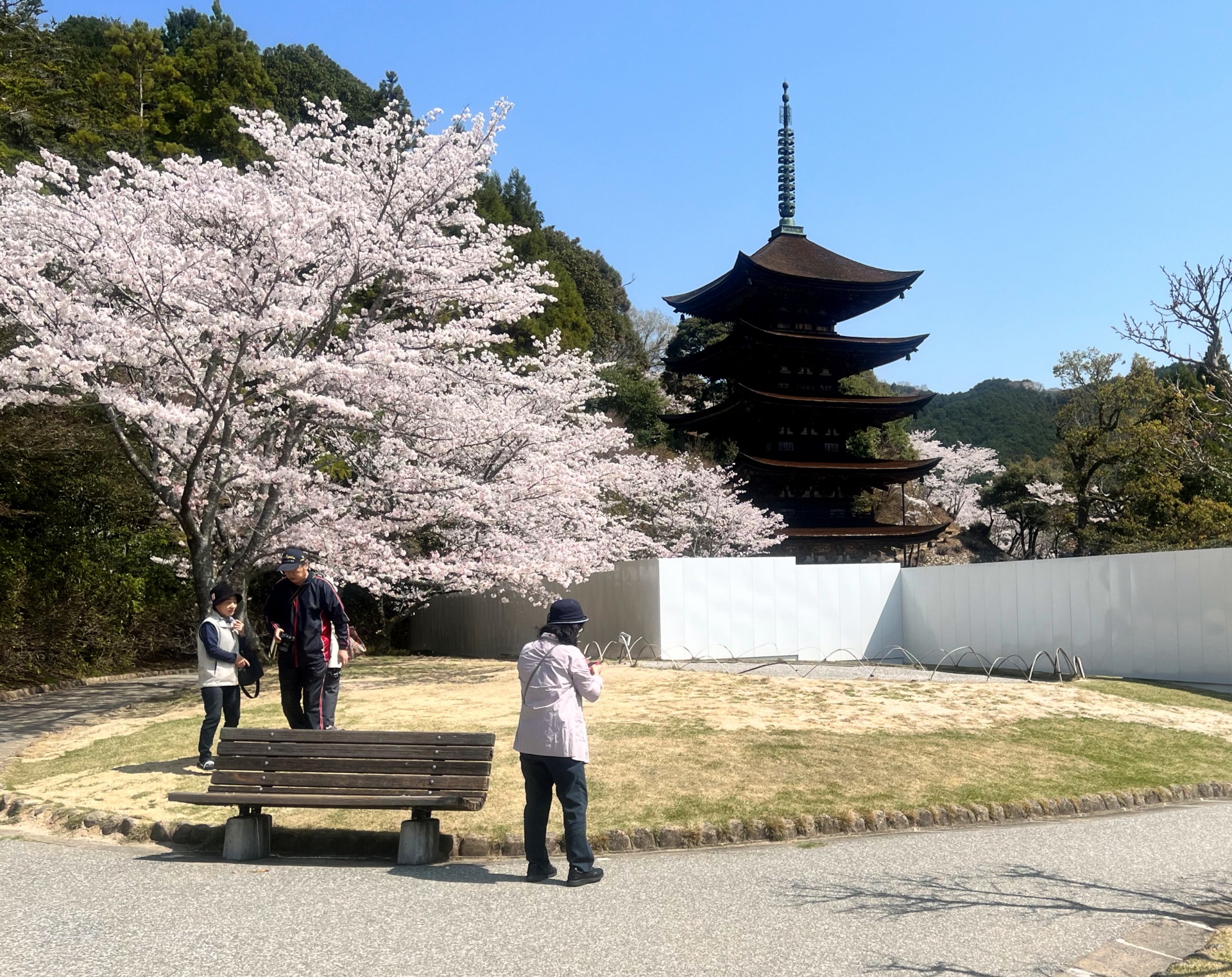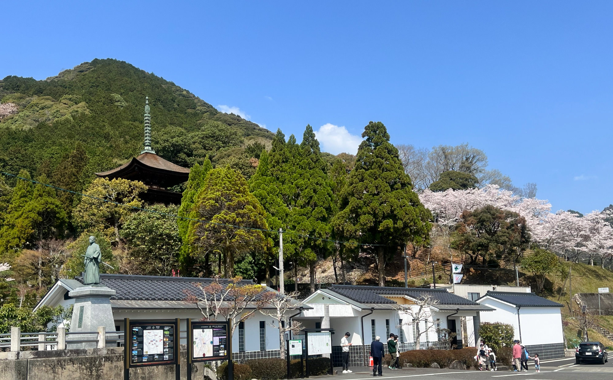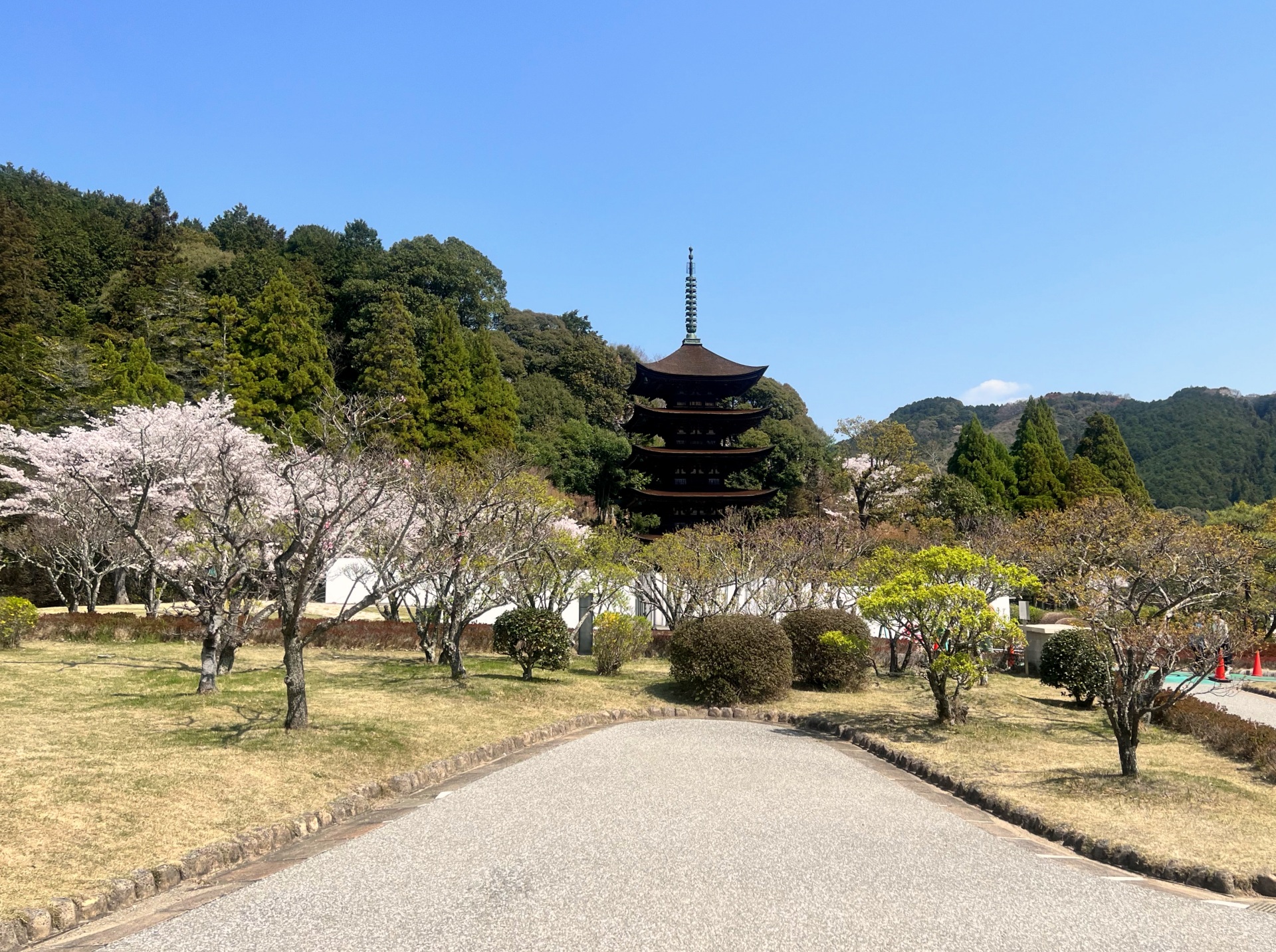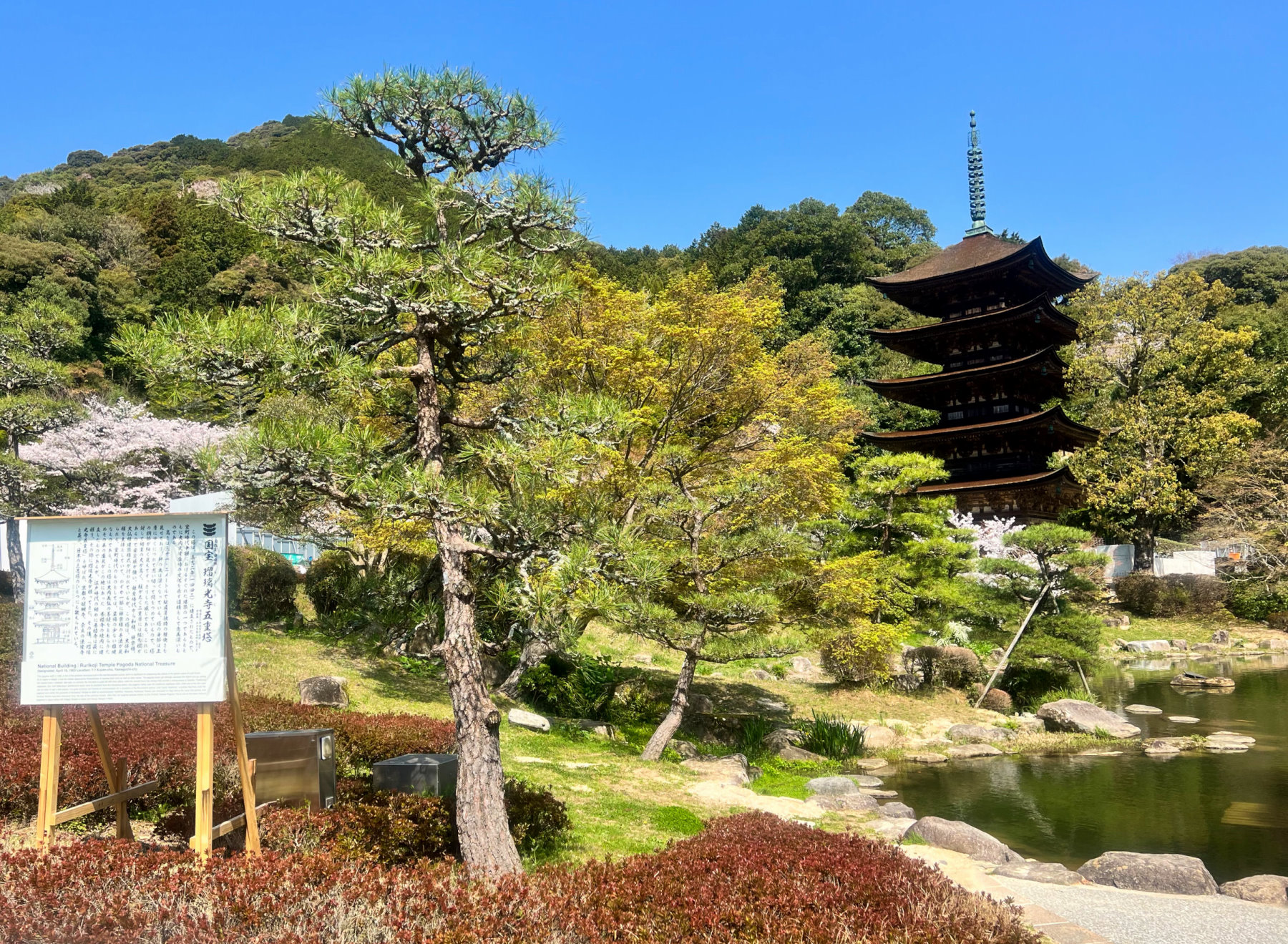 東入口から常盤湖と桜